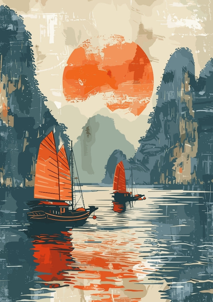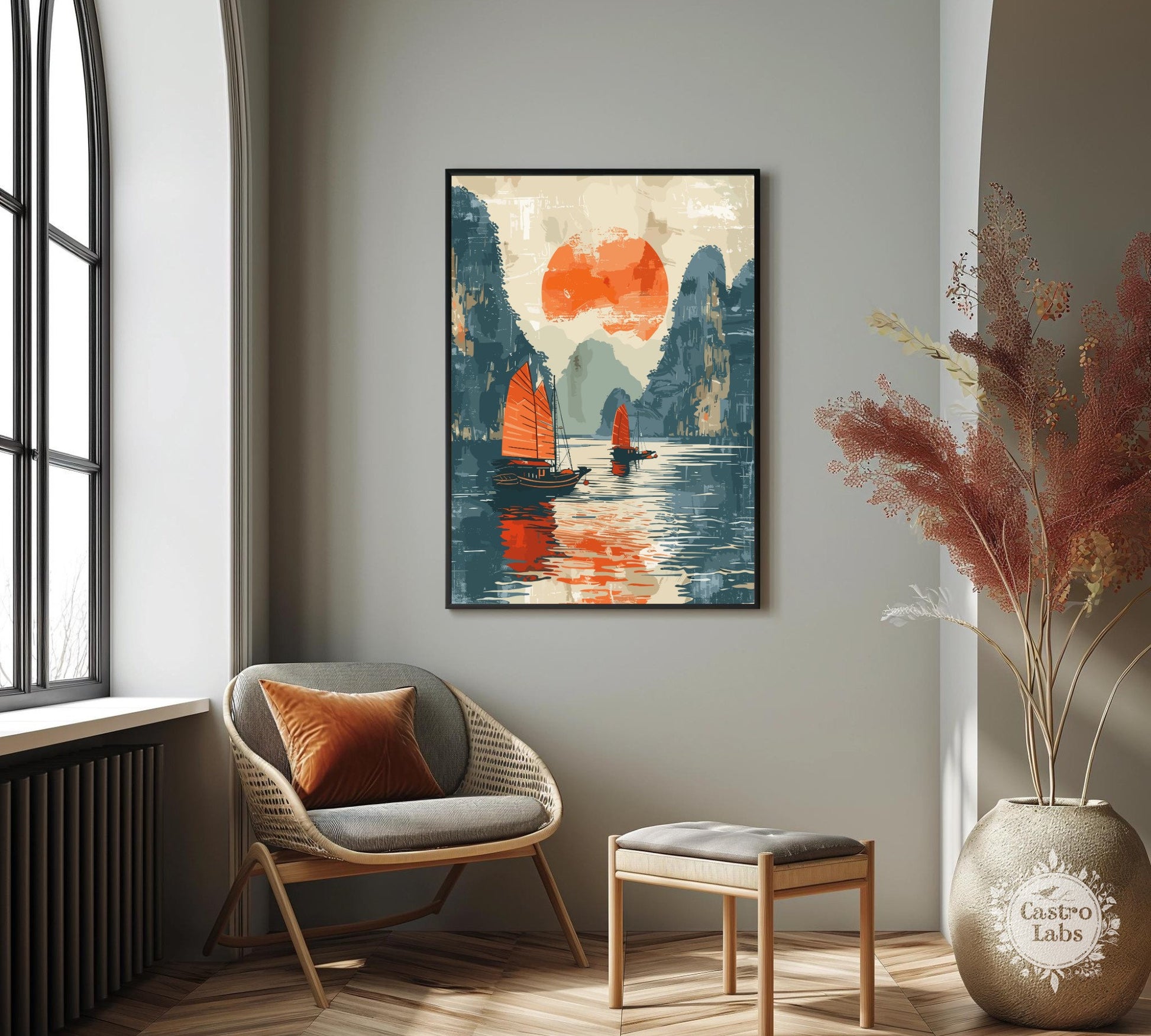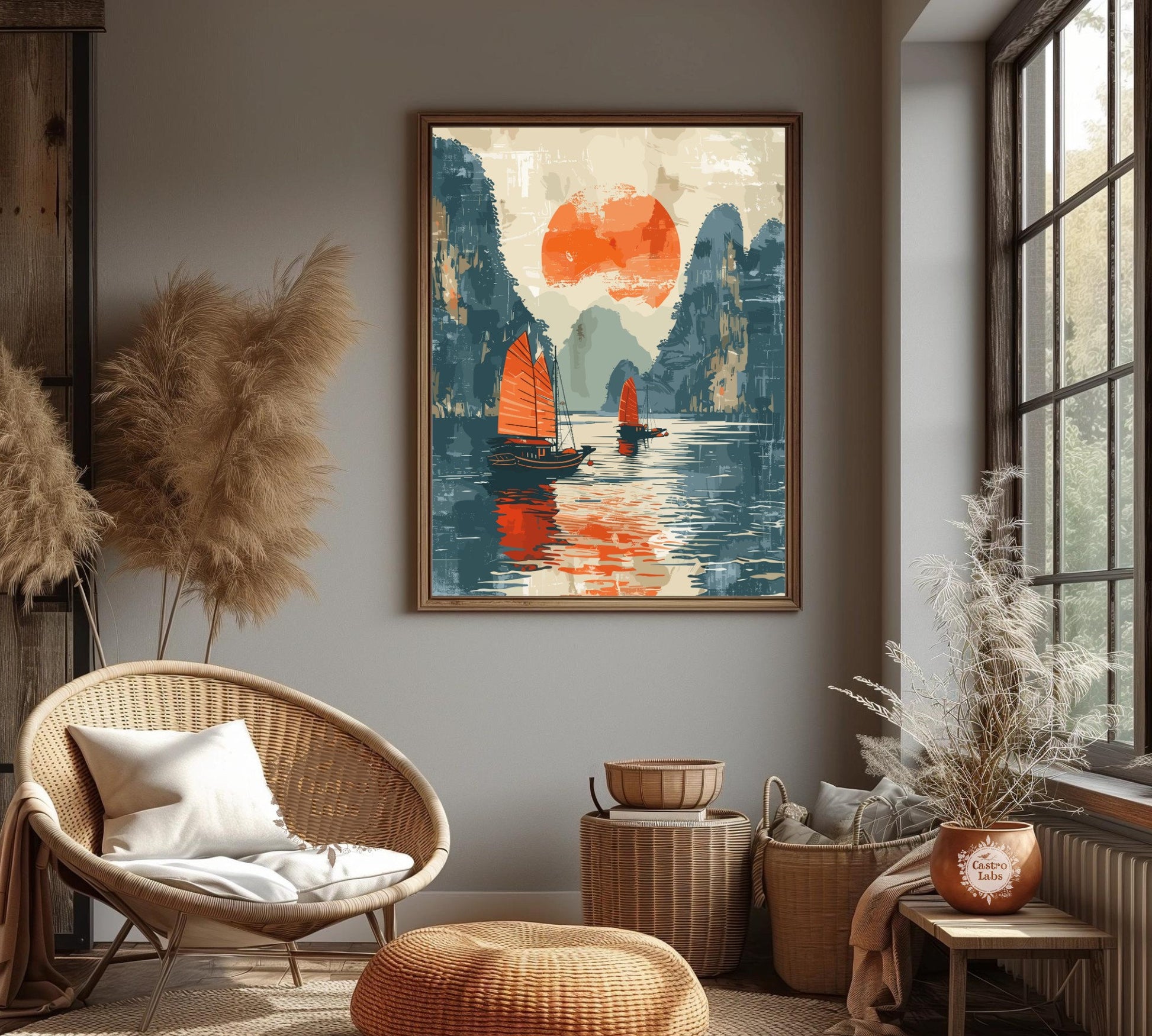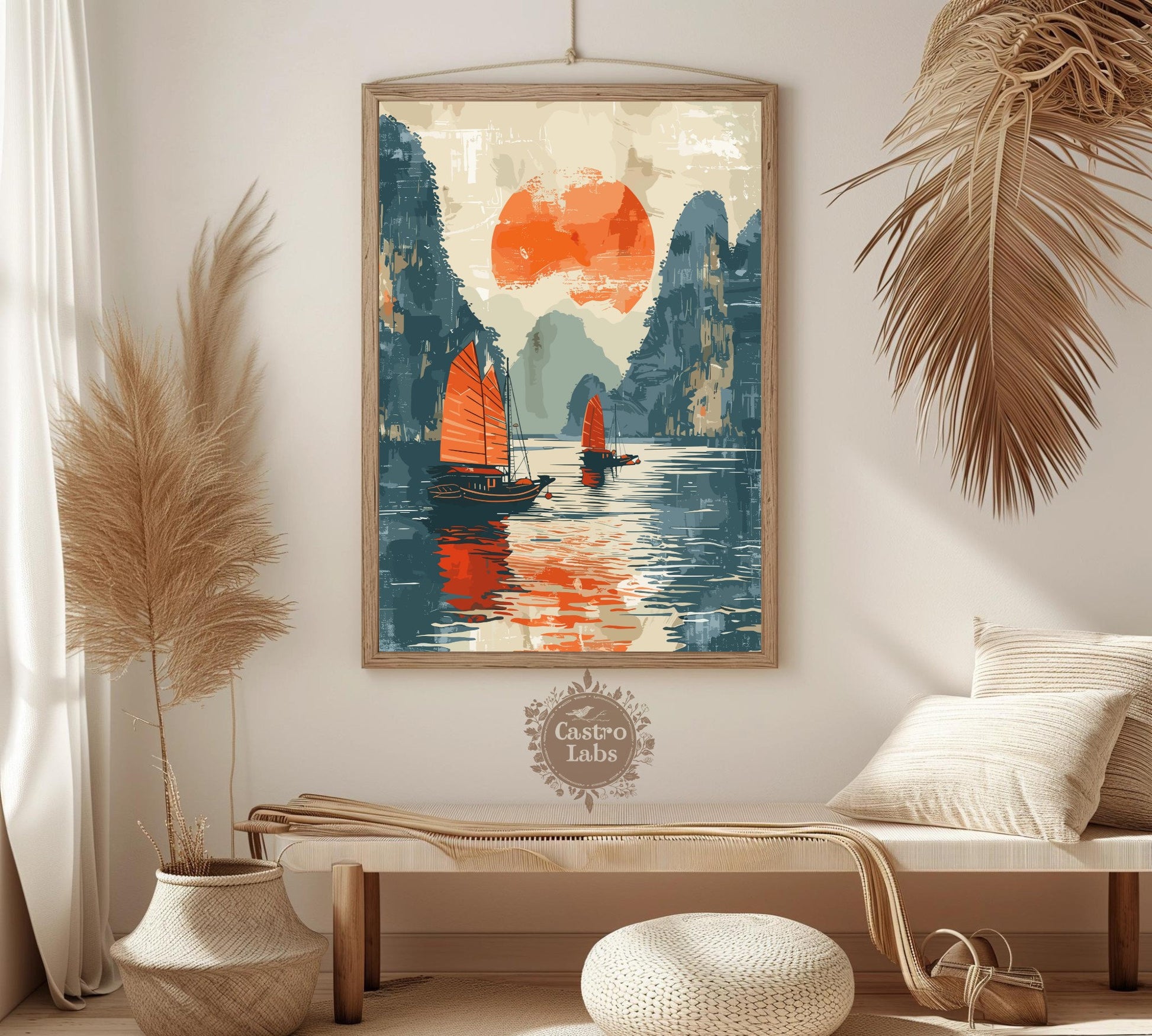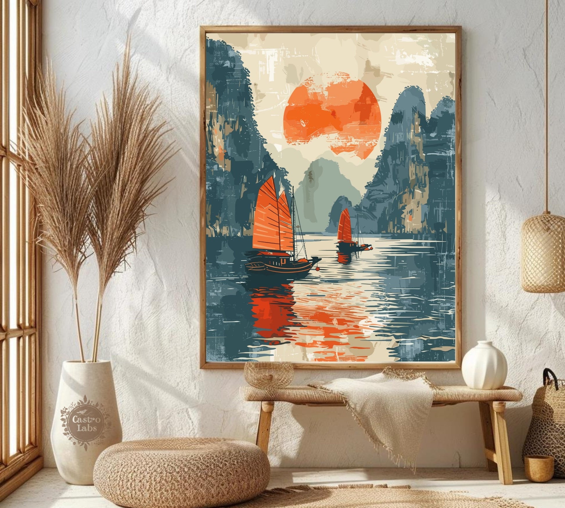 Transformez votre intérieur en un havre de paix et d'énergie grâce à cette œuvre captivante. Idéale pour les salons, les maisons de plage ou les espaces inspirés du voyage, elle s'associe à merveille avec d'autres œuvres d'art rétro. Plus qu'un simple objet de décoration, cette œuvre d'art rétro vous plonge dans le charme légendaire de la baie d'Halong.
