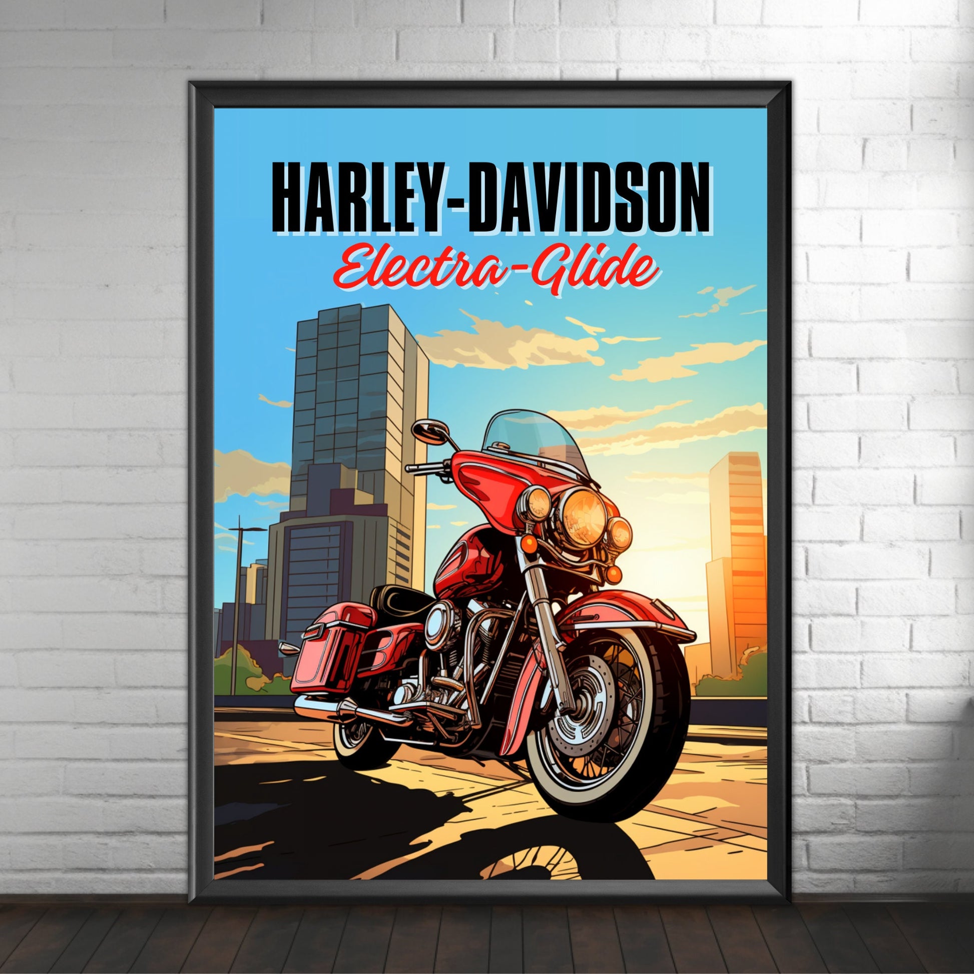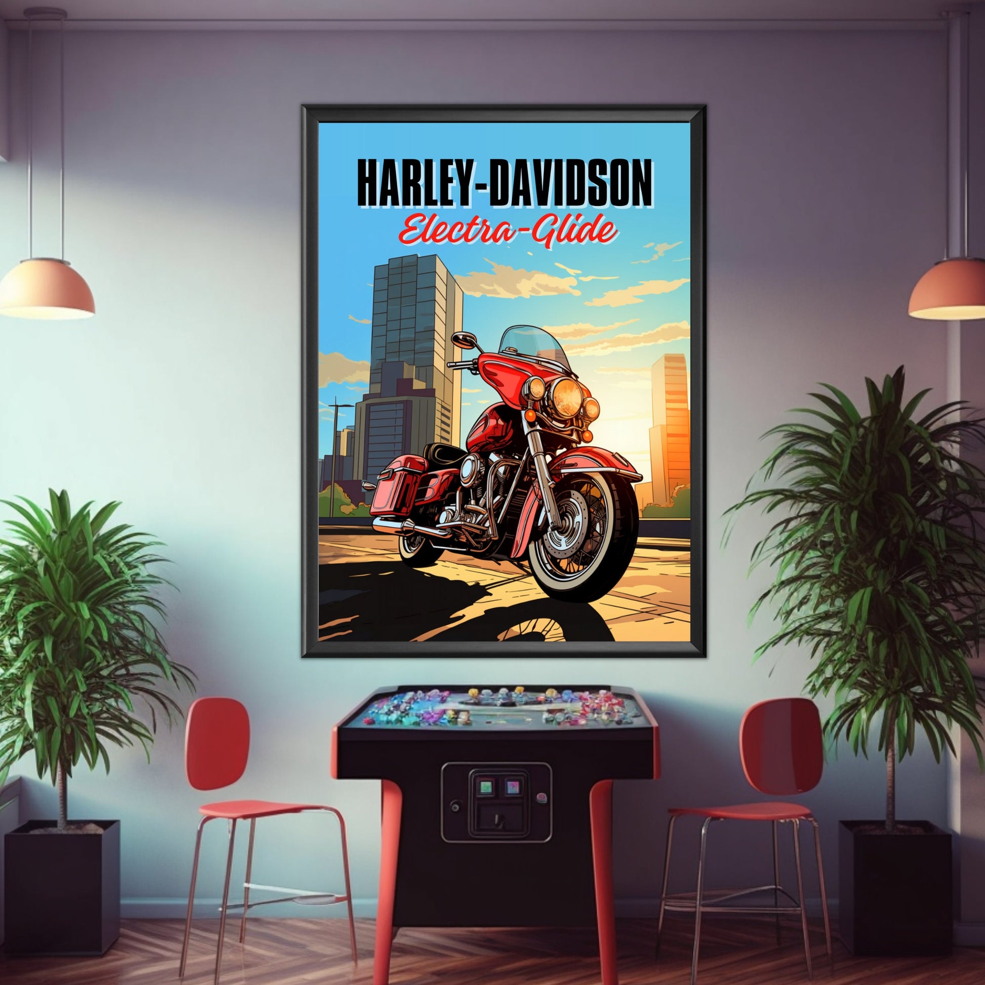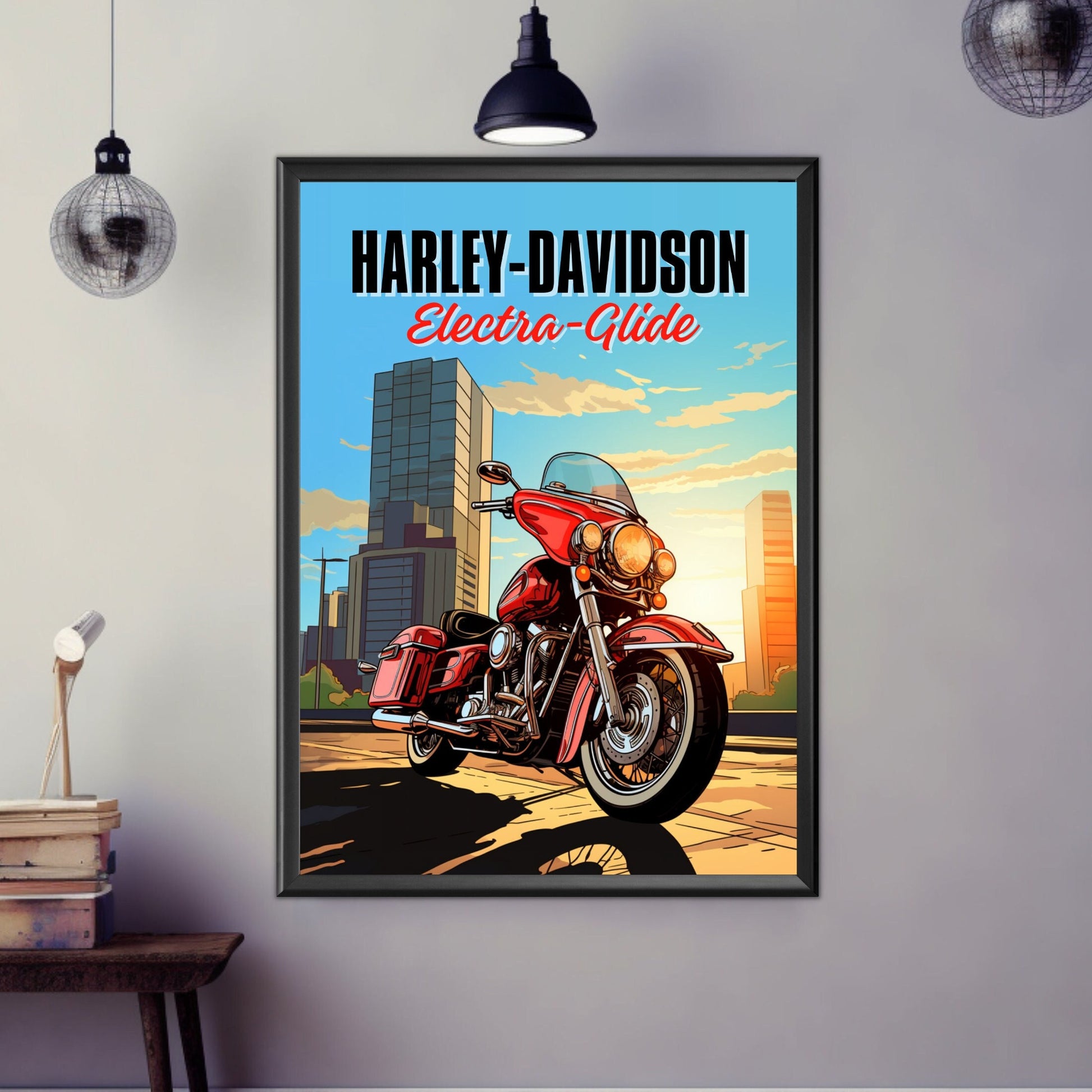 Affiche Harley-Davidson Electra Glide – Décoration murale de moto de tourisme classique