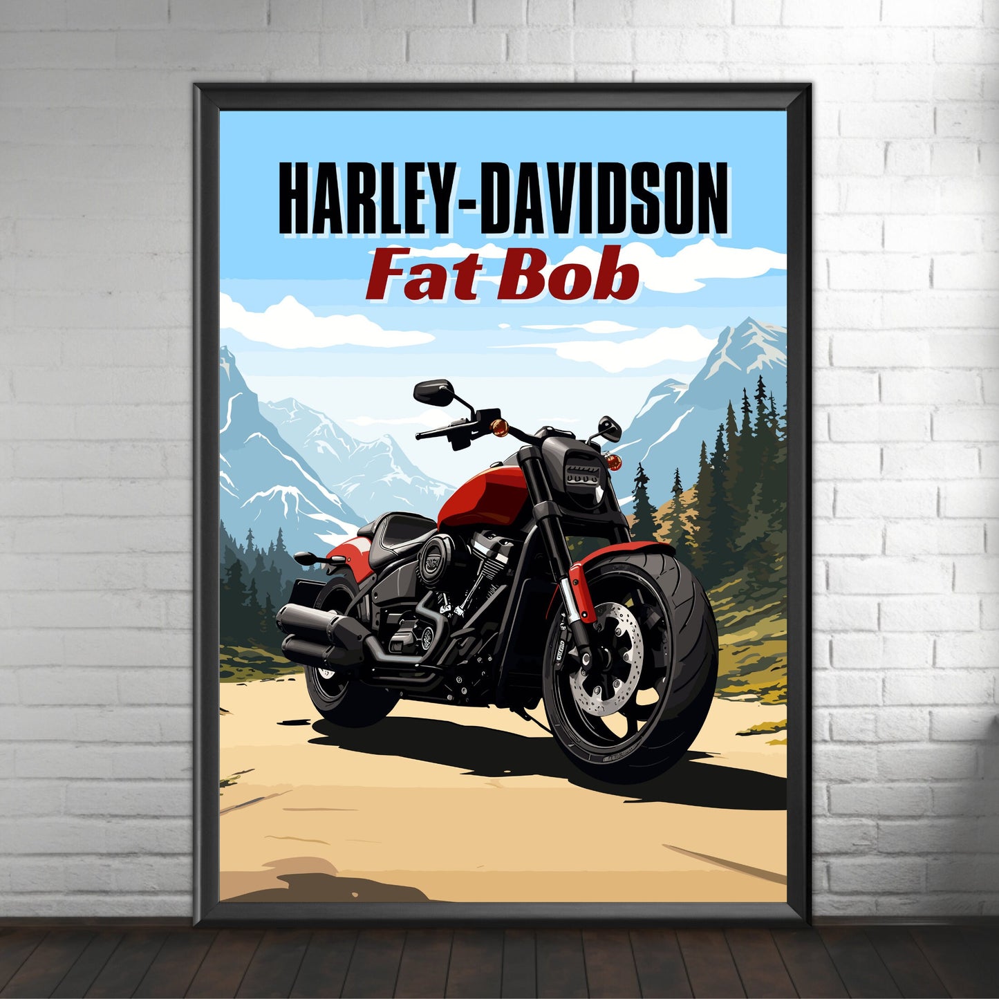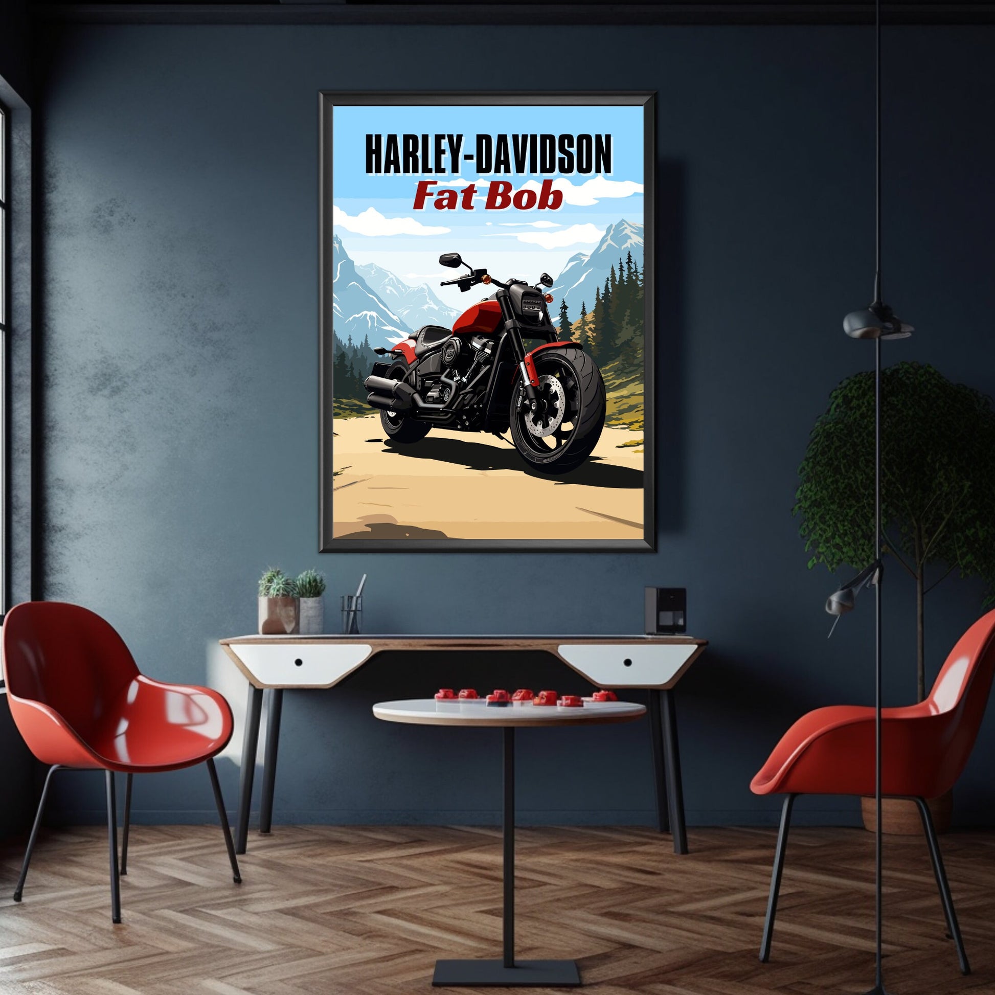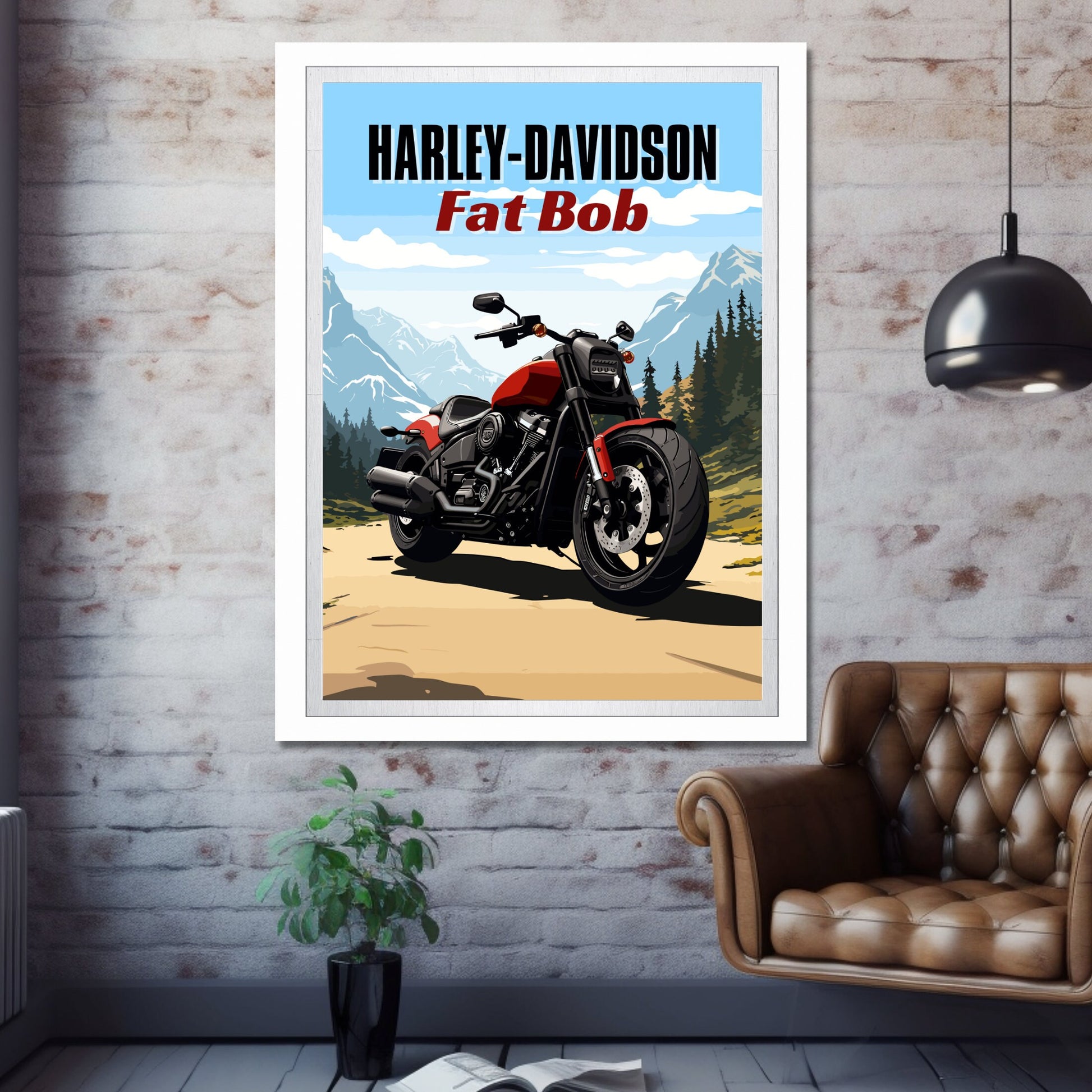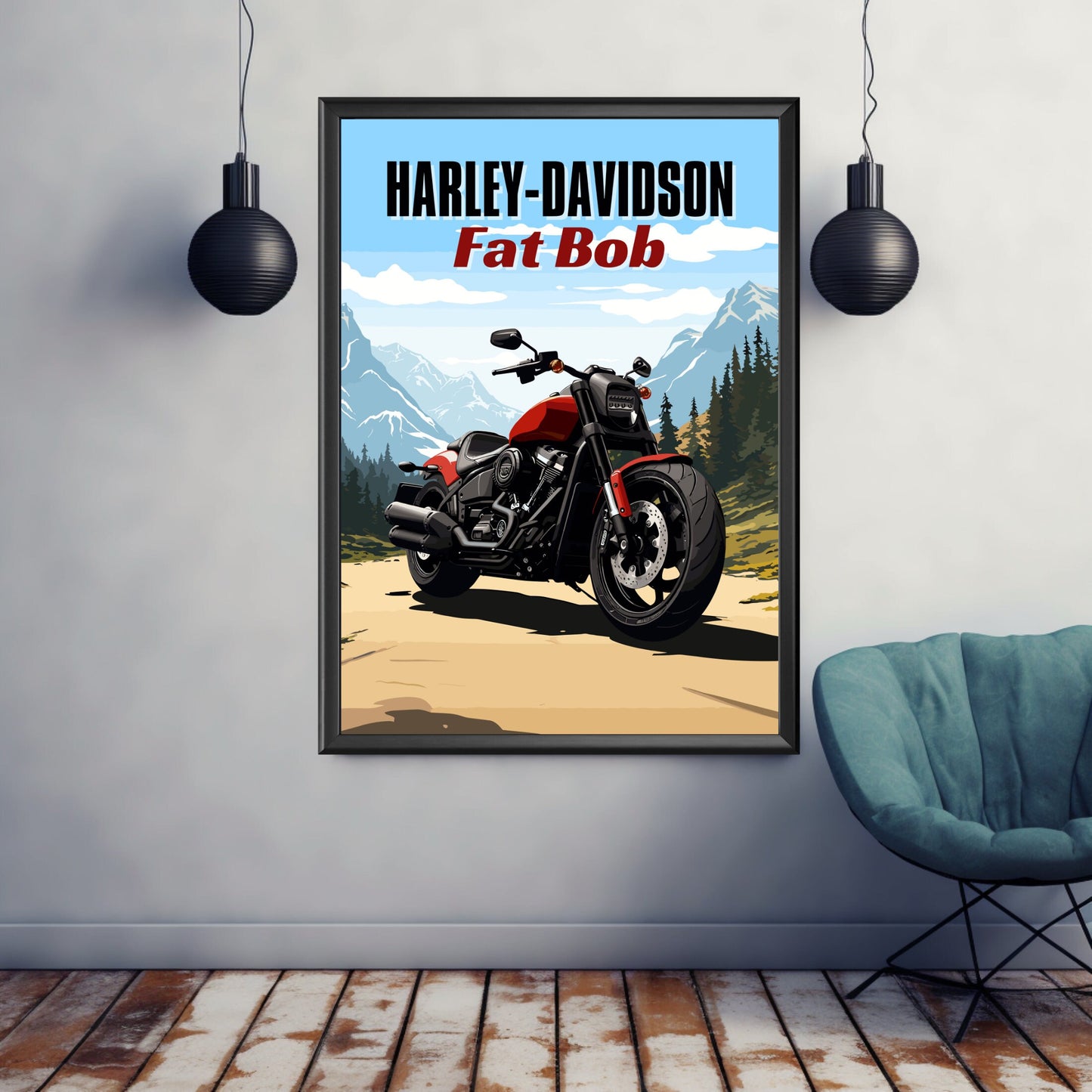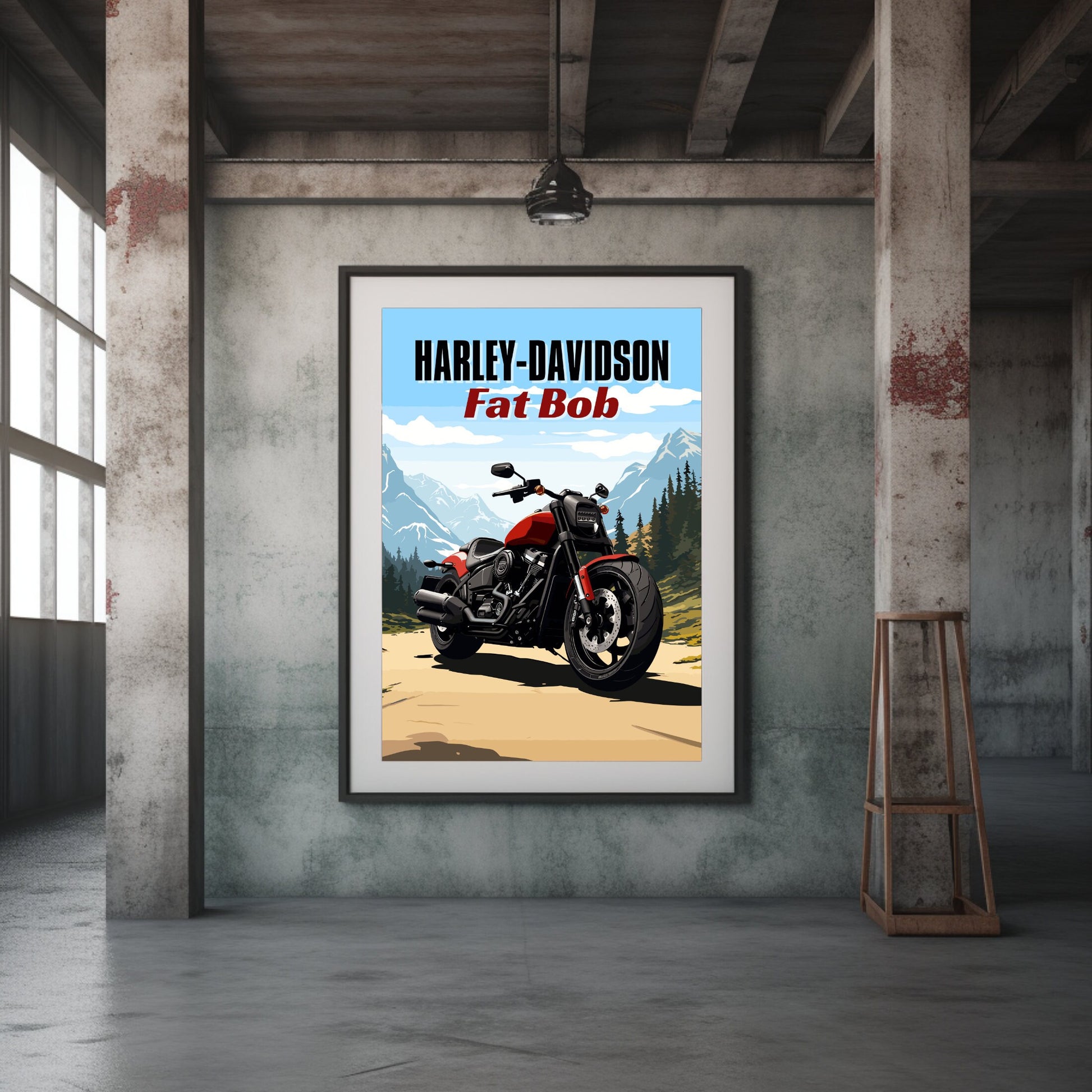 Affiche Harley-Davidson Fat Bob – Décoration murale de moto américaine