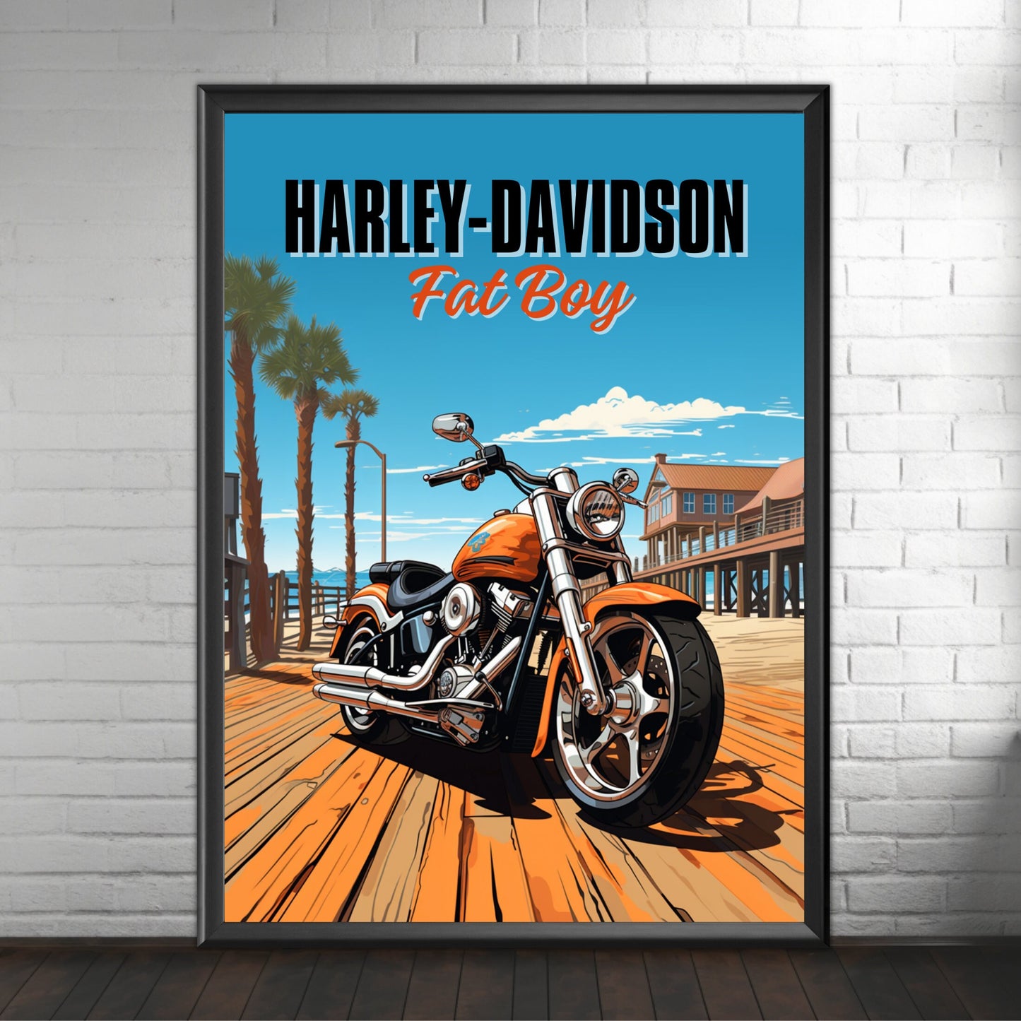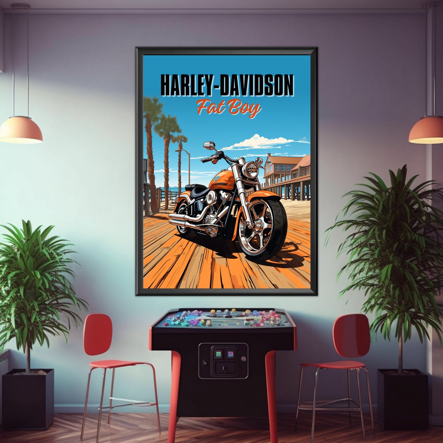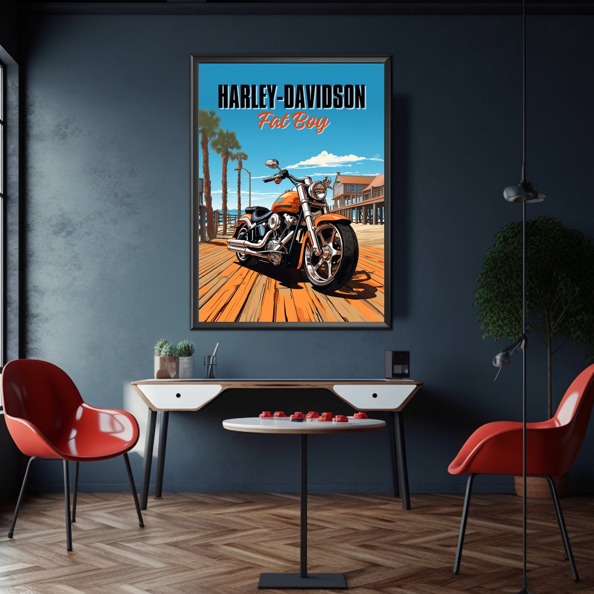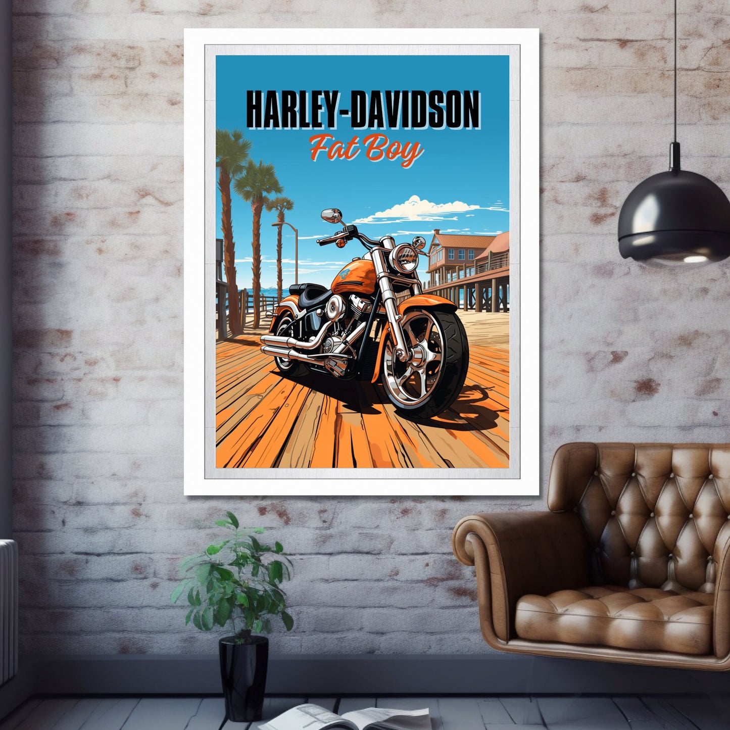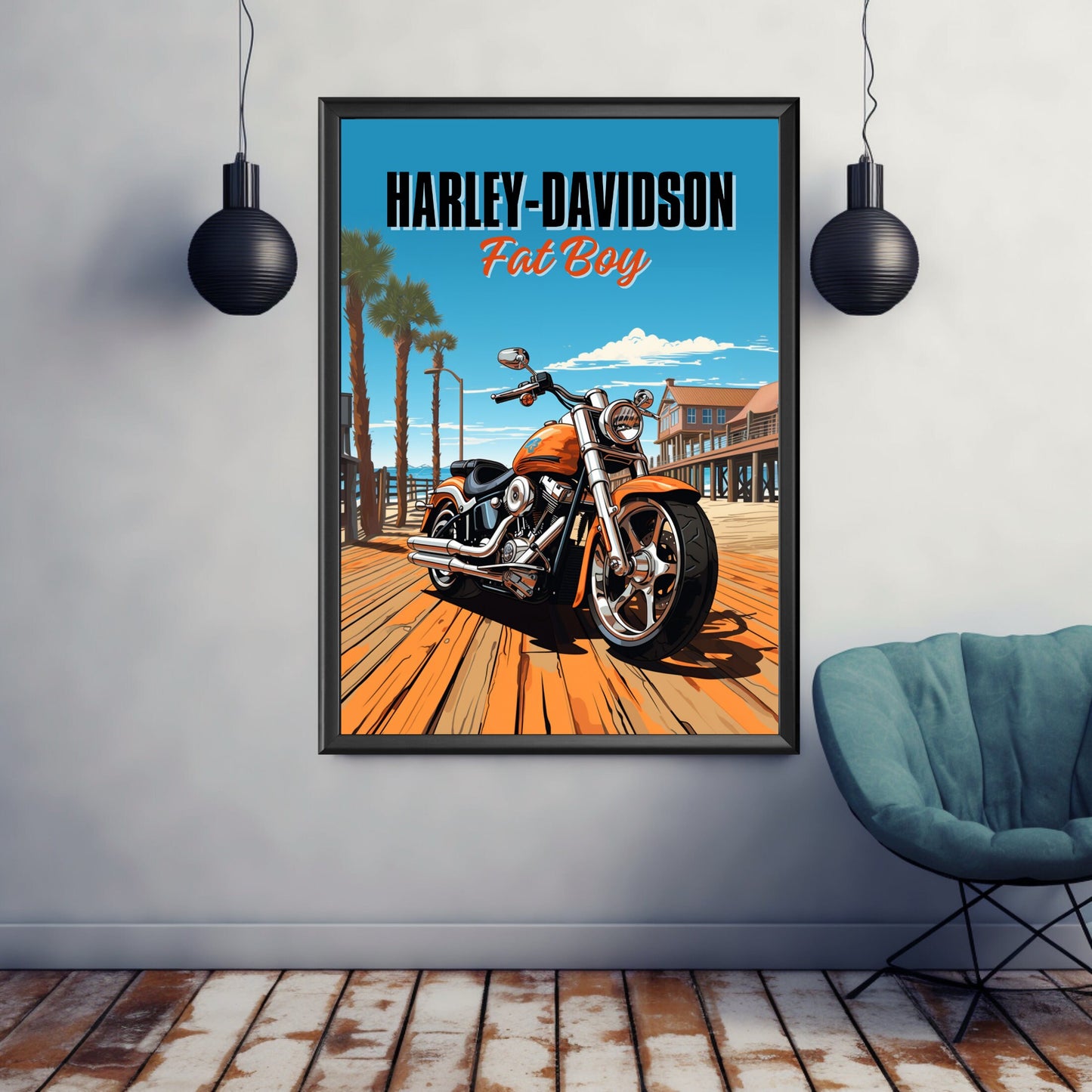 Affiche Harley-Davidson Fat Boy – Décoration murale emblématique de la moto Cruiser