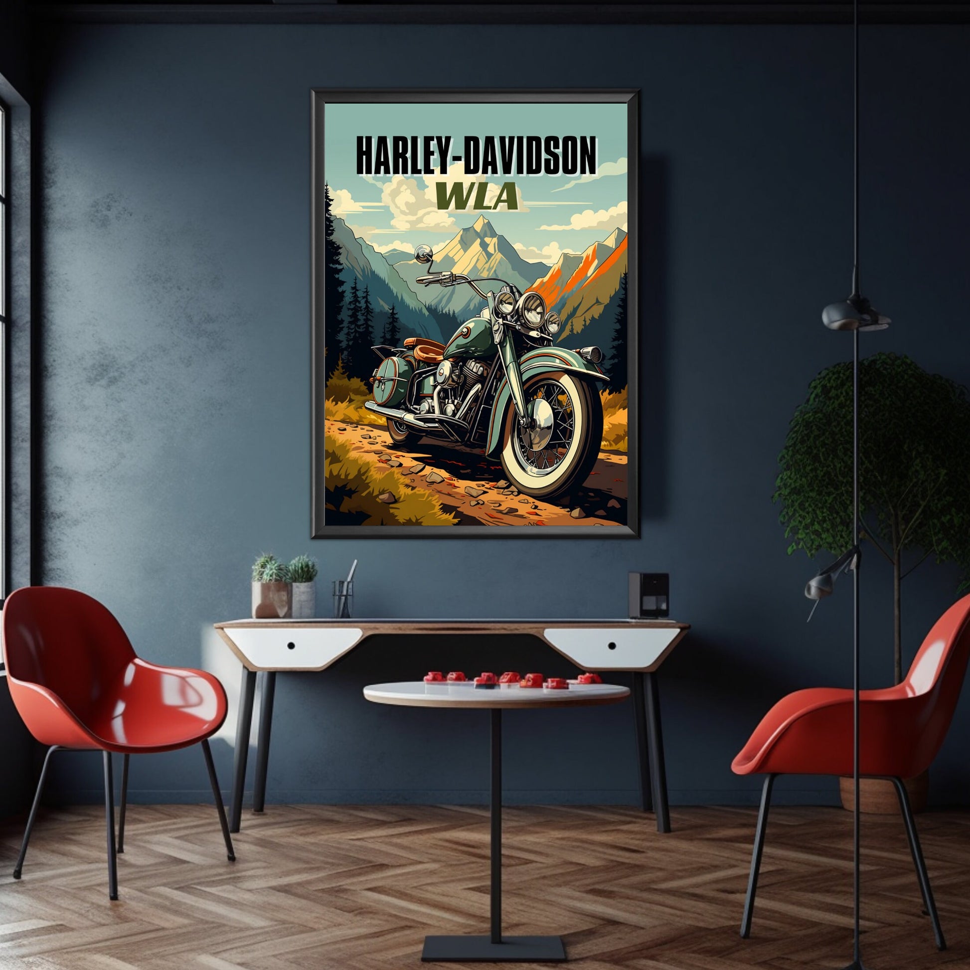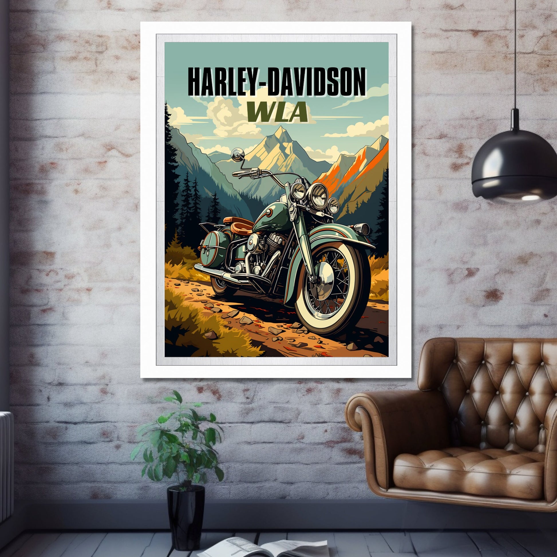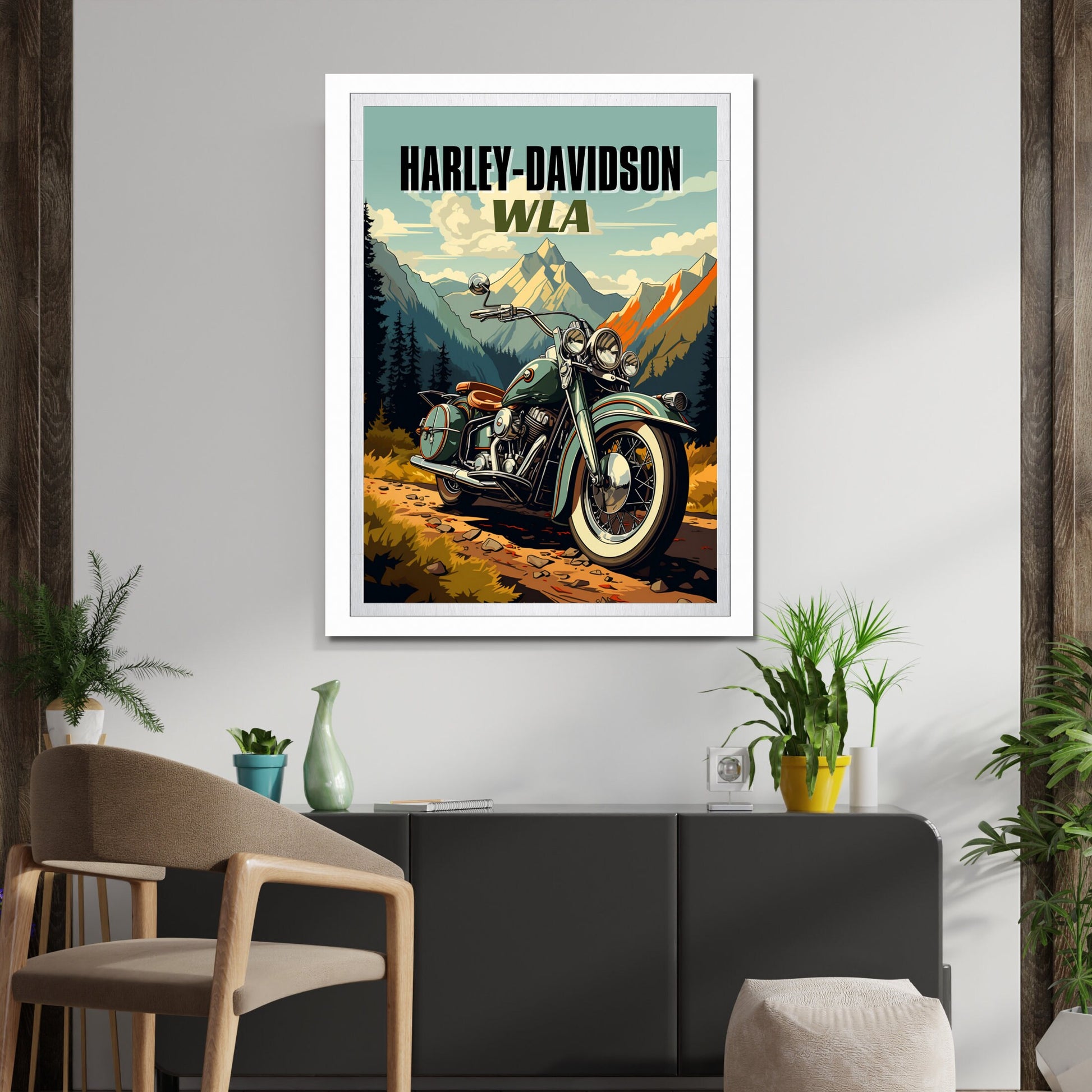 Affiche Harley-Davidson WLA – Décoration murale de moto militaire de la Seconde Guerre mondiale