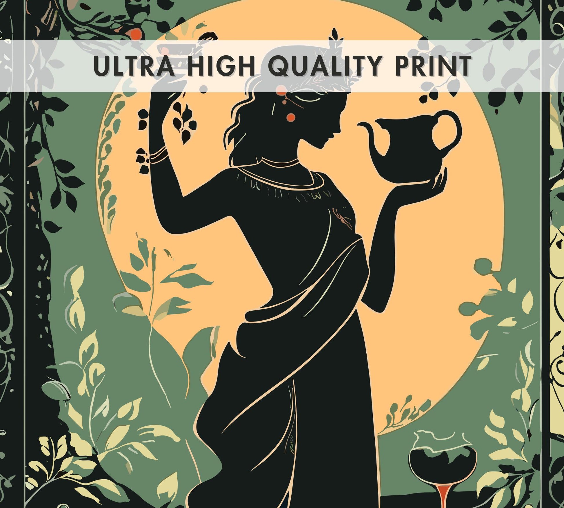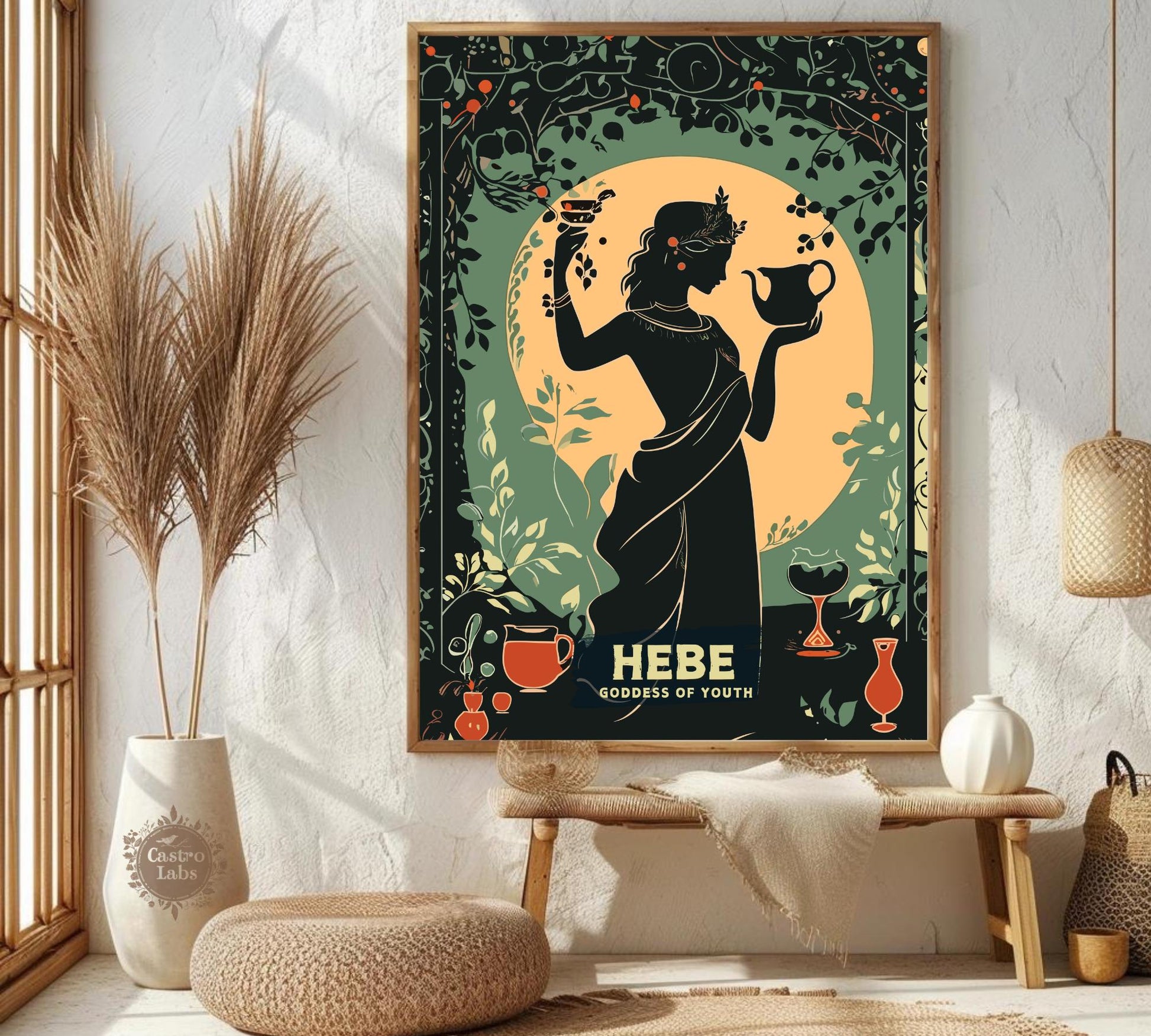 Notre affiche de la déesse Hébé, œuvre d'art mythologique grecque, insufflera à votre intérieur une vitalité juvénile grâce à son design charmant. Parfaite pour les passionnés de mythologie et les admirateurs de grâce, elle représente Hébé, la déesse grecque de la jeunesse, servant le nectar avec une élégance radieuse. Que vous vénériez son mythe ou que vous aimiez l'art intemporel, cette affiche mythologique d'Hébé sera un ajout charmant à votre décoration.