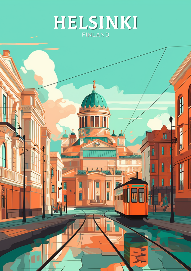 Découvrez le charme nordique de la capitale finlandaise avec notre affiche de voyage d'Helsinki , une œuvre captivante mettant en valeur les monuments emblématiques de la ville, ses vues sur le front de mer et son architecture intemporelle. De la majestueuse cathédrale d'Helsinki au port pittoresque en passant par les rues animées, cette œuvre célèbre le mélange unique de tradition et de modernité qui caractérise Helsinki . Idéale pour les amateurs d' esthétique scandinave , d'imprimés urbains et d'art de voyage européen.