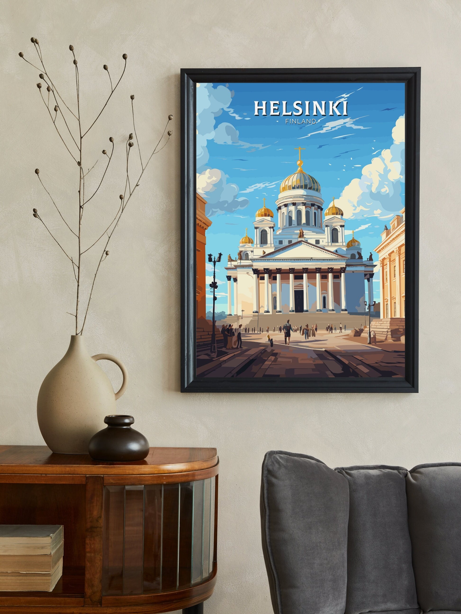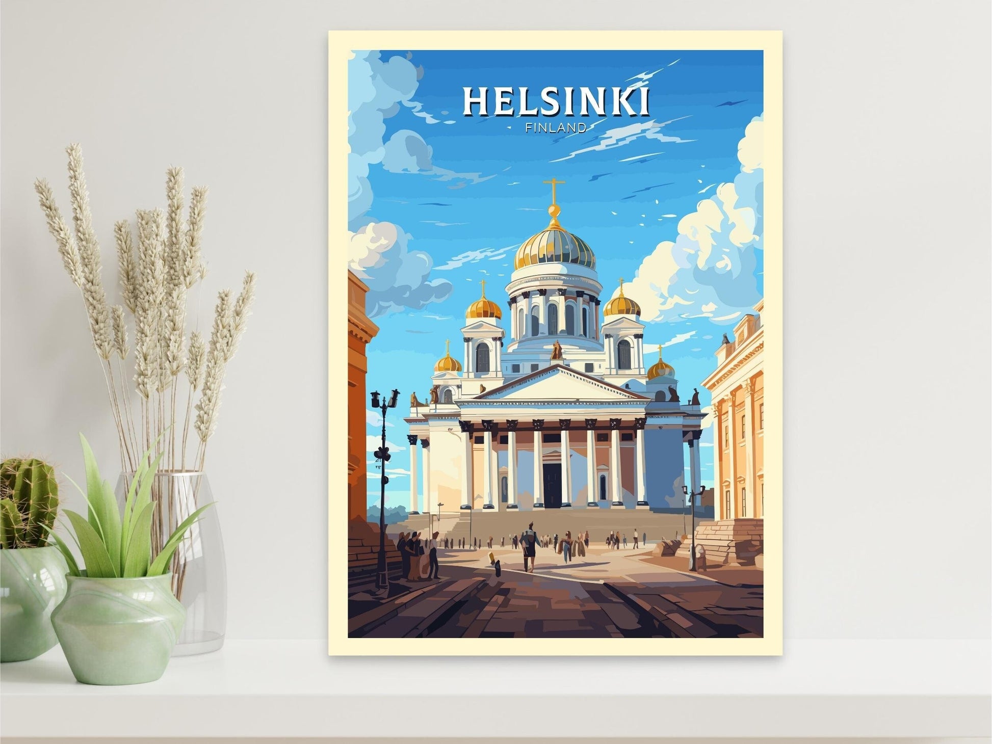 Que vous ayez visité cette capitale balnéaire ou rêviez de découvrir son charme, l' affiche de voyage Helsinki fait entrer l'esprit finlandais chez vous ou au bureau. Imprimée sur du papier de qualité supérieure avec des encres riches et résistantes à la décoloration, elle apporte une touche de sophistication nordique à tous vos murs — un hommage élégant à l'une des plus belles villes d'Europe.