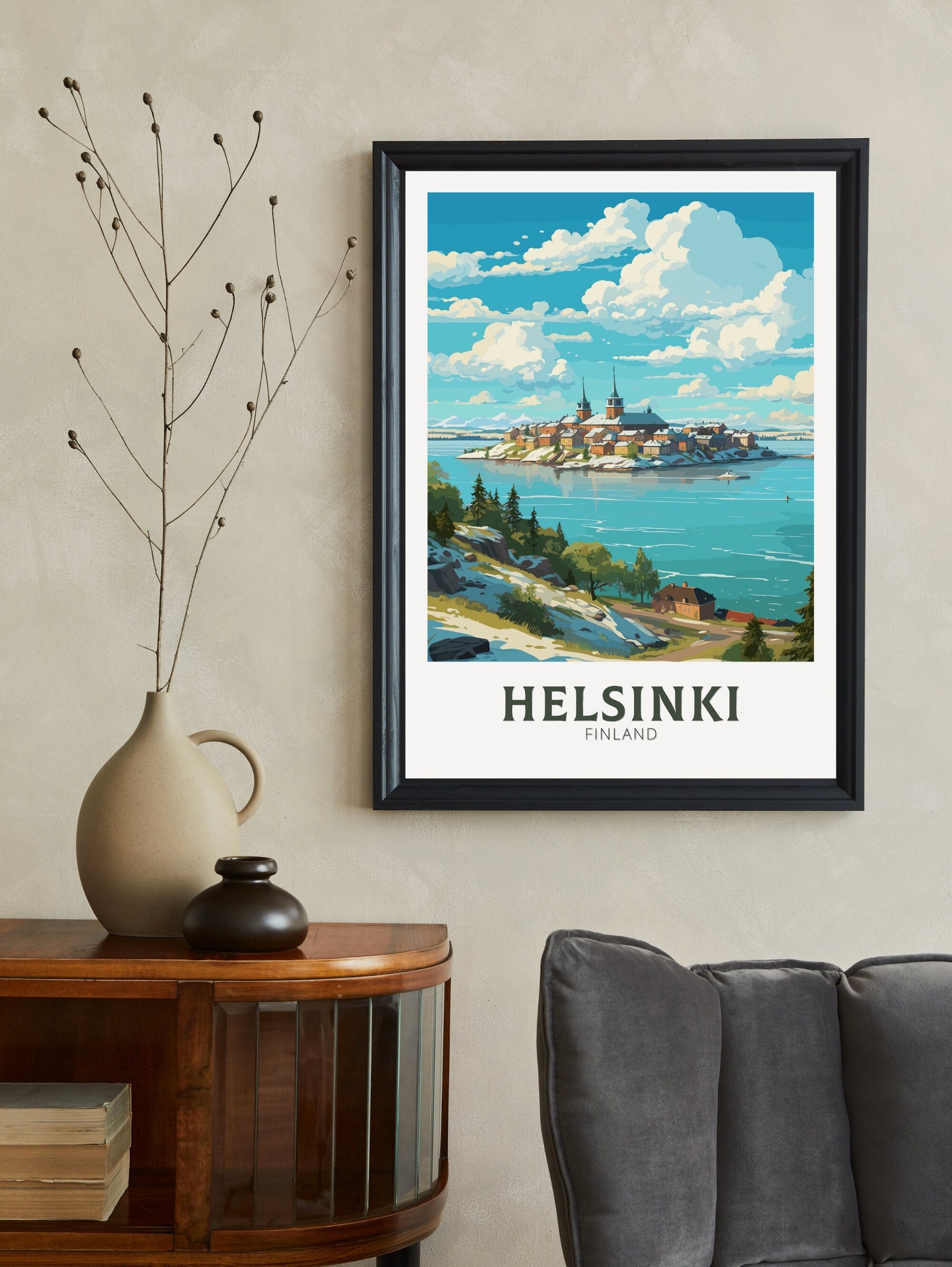 Que vous ayez exploré ses charmantes rues ou rêvé d'une aventure nordique, la décoration murale « Helsinki Travel » insuffle l'esprit finlandais à votre intérieur. Imprimée sur du papier de qualité supérieure avec des encres résistantes à la décoloration, cette affiche apportera une touche d'élégance à votre salon, bureau ou mur d'images — un hommage raffiné au cœur de la Scandinavie .