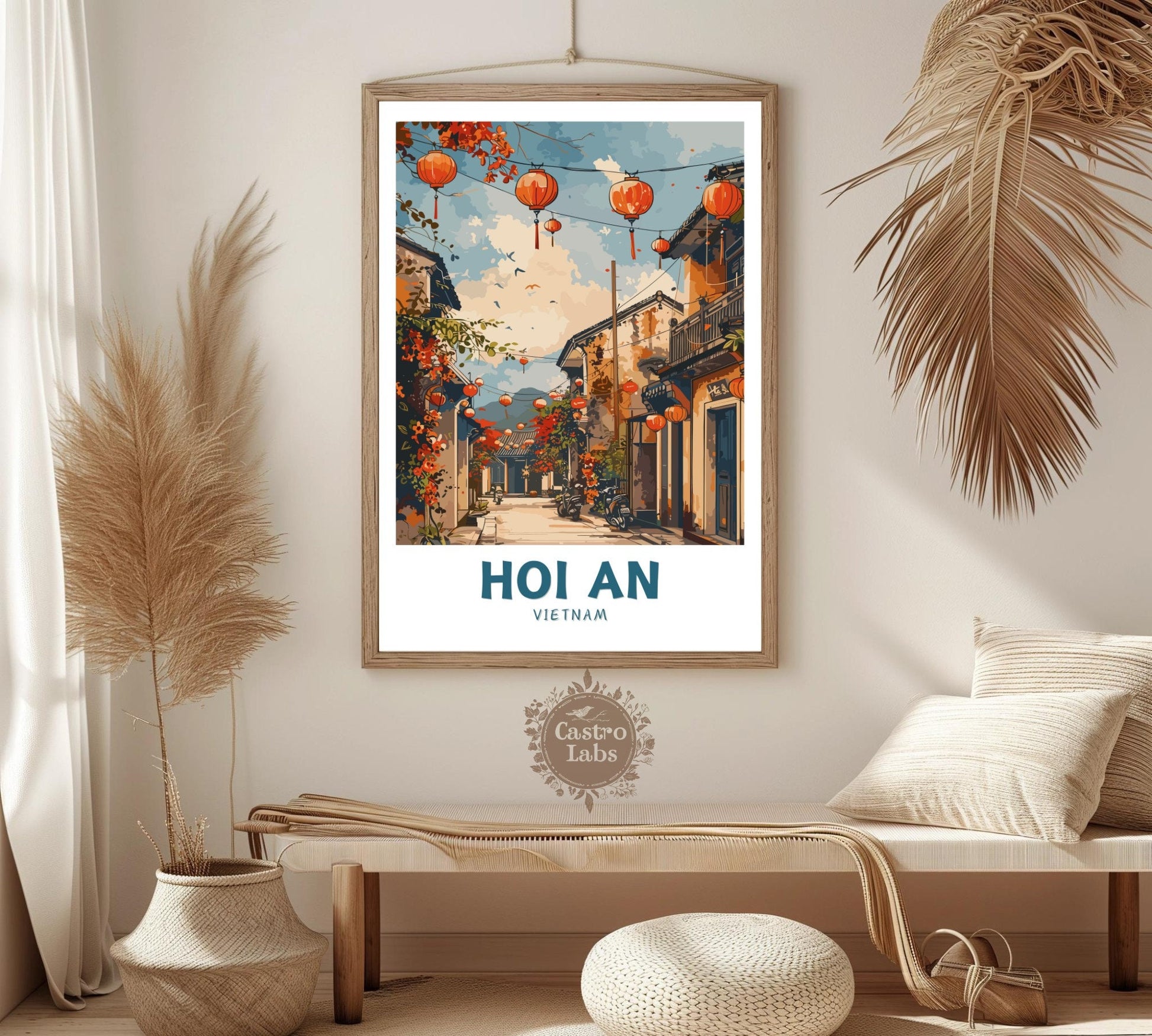 Cette œuvre mêle des jaunes chauds et des bleus doux à l'essence pittoresque de Hoi An, évoquant une ambiance de voyage vintage avec une touche de modernité. Imprimée sur un papier de qualité supérieure, elle offre un éclat durable et une finition lisse, ce qui en fait un cadeau idéal pour les aventuriers ou les collectionneurs d'art. Cette affiche Hoi An apporte une touche de charme d'antan à n'importe quel mur.