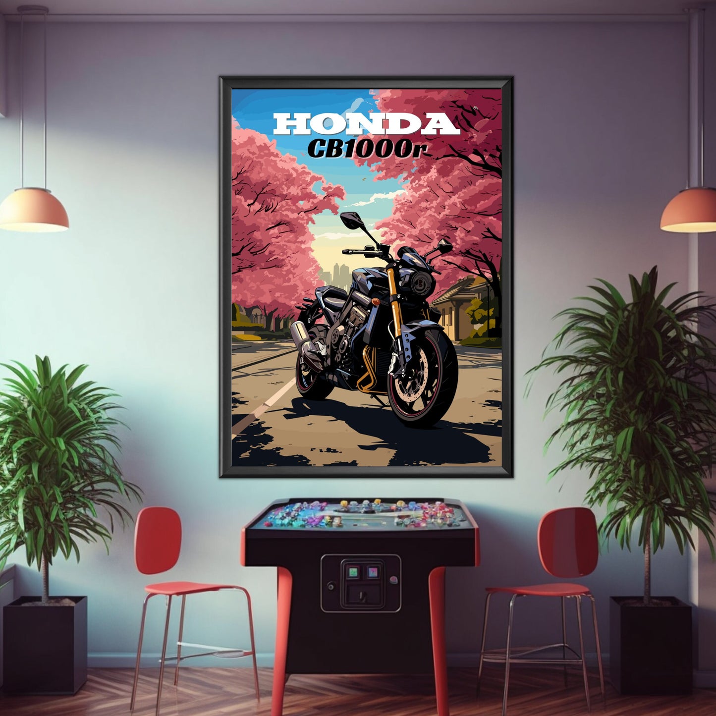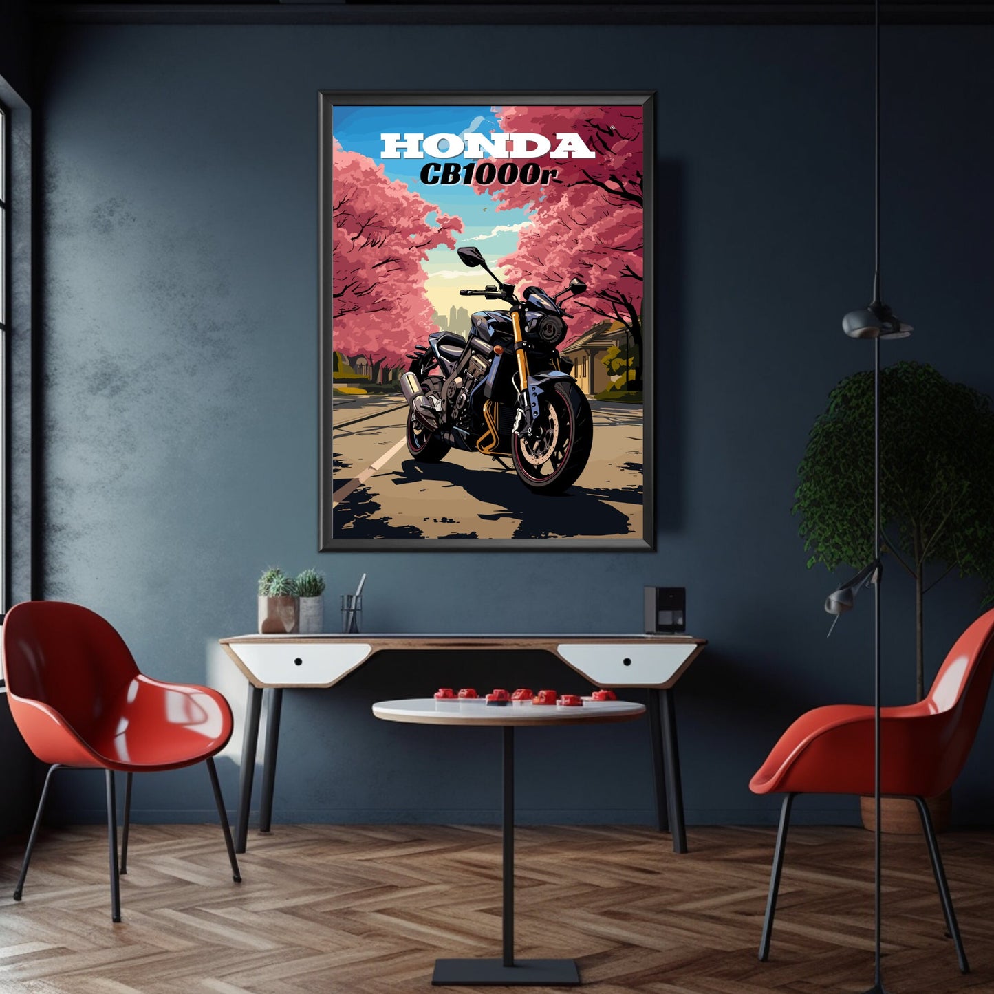 Imprimée sur des matériaux de haute qualité, la décoration murale Honda CB1000R garantit des couleurs éclatantes et une longue durée de vie, ce qui en fait un ajout remarquable à toute collection de motos. Idéale pour les posters Neo Sports Café , les impressions Honda CB1000R et les décorations murales moto modernes haut de gamme , cette œuvre célèbre la CB1000R comme symbole de performance, de style et d'innovation.