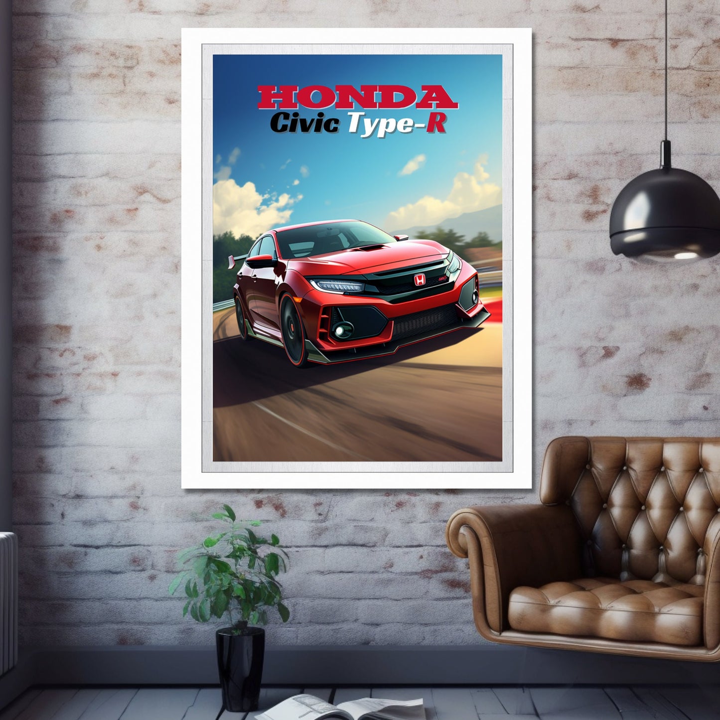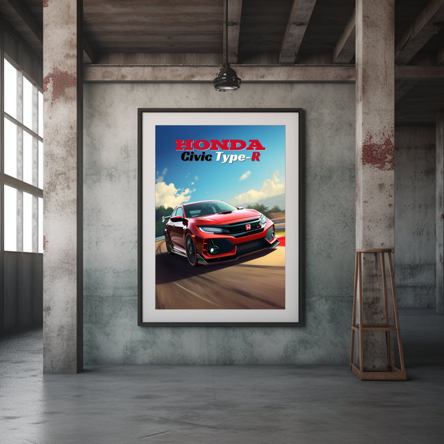 Affiche Honda Civic Type-R – Décoration murale représentant une voiture de sport japonaise haute performance
