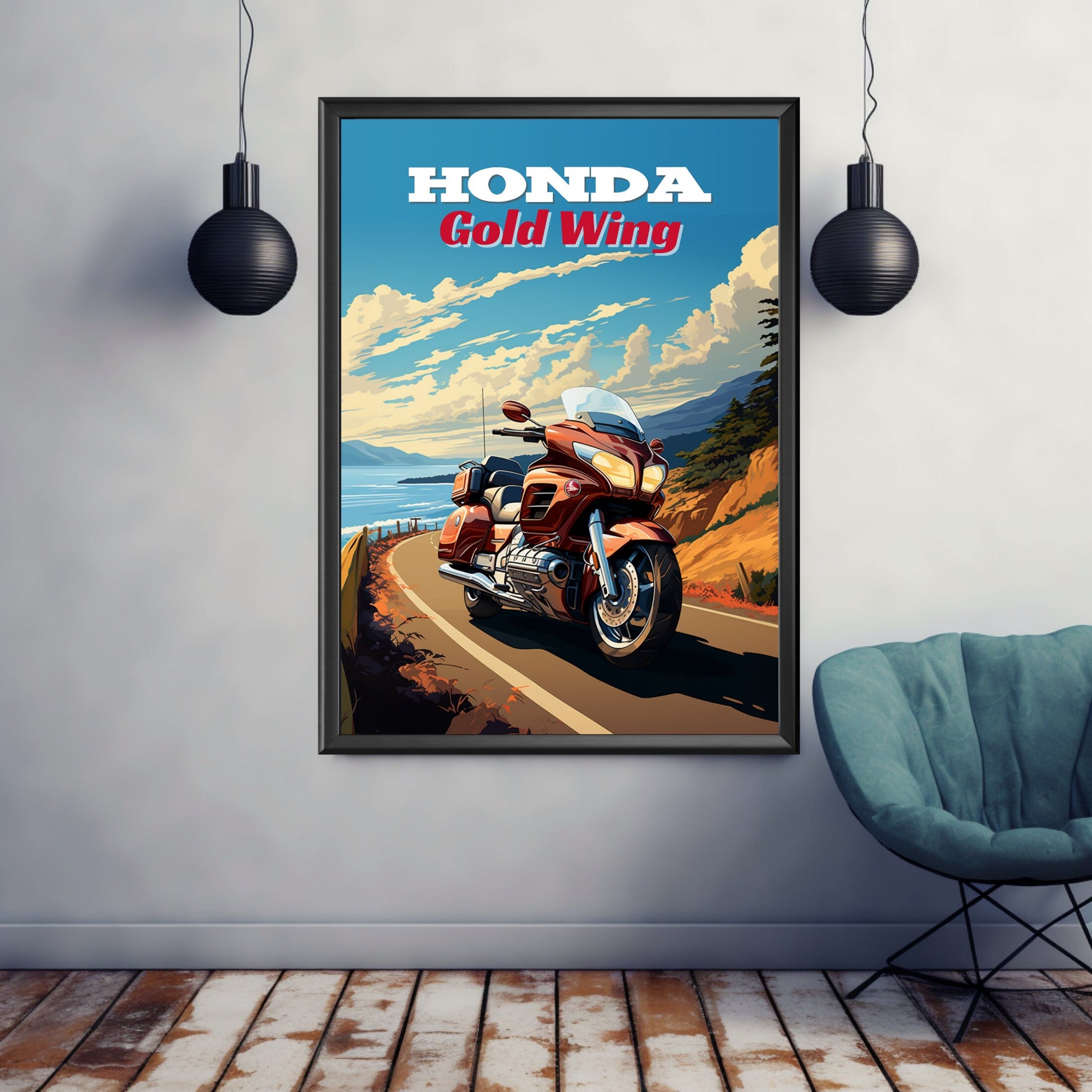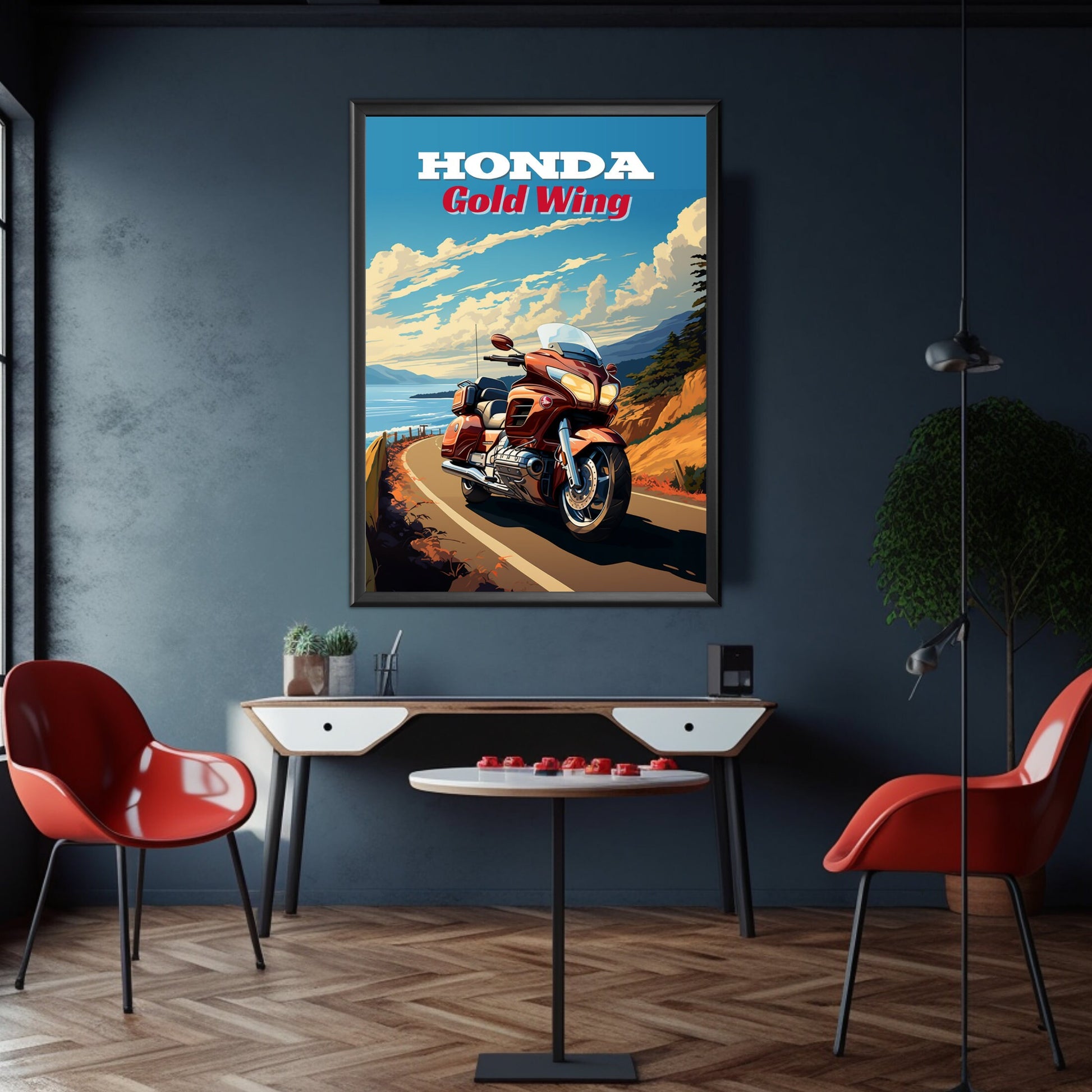 Affiche Honda Gold Wing – Décoration murale de moto de tourisme pour les motards longue distance