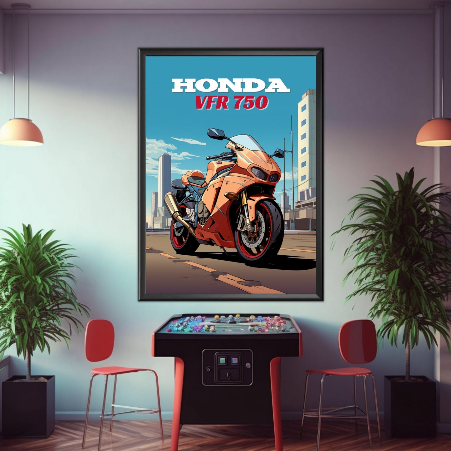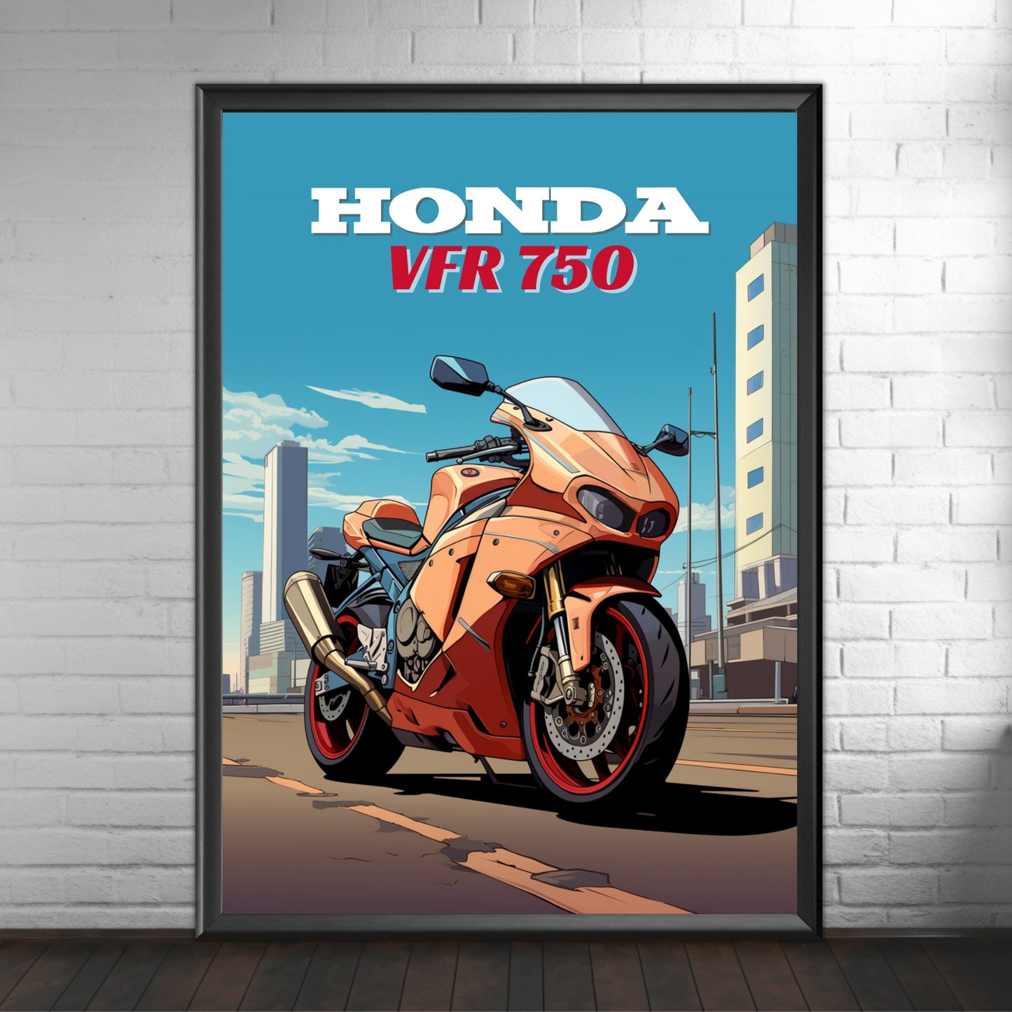 Affiche Honda VFR750 – Décoration murale de moto sport classique