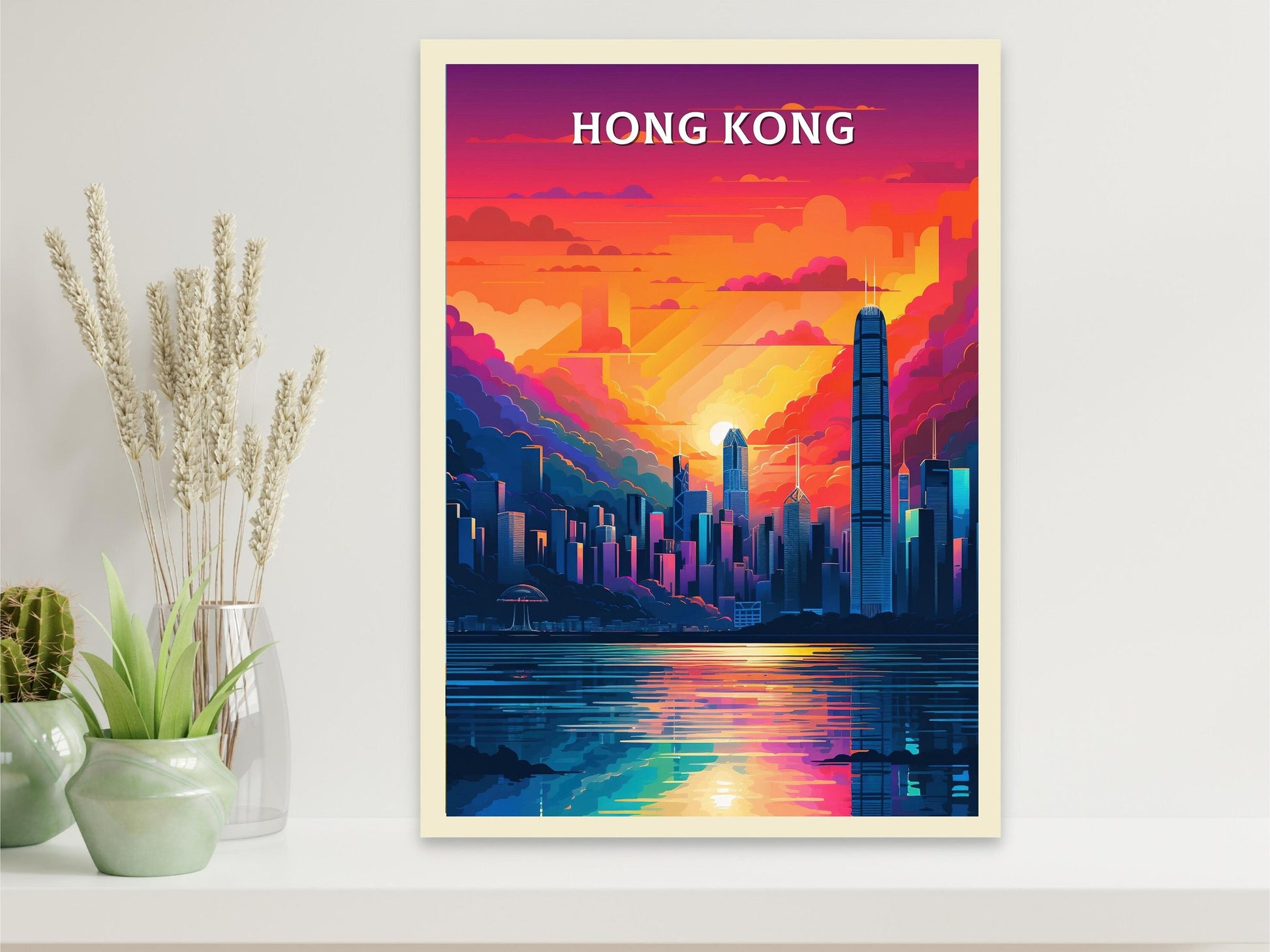Cette œuvre mêle des rouges vifs et des jaunes doux à l'essence dynamique de Hong Kong, évoquant le charme d'un voyage vintage avec une touche de modernité. Imprimée sur un papier de qualité supérieure, elle offre un éclat durable et un fini lisse, ce qui en fait un cadeau idéal pour les aventuriers ou les collectionneurs d'art. Cette affiche de Hong Kong apporte une touche de nostalgie urbaine à tous vos murs.