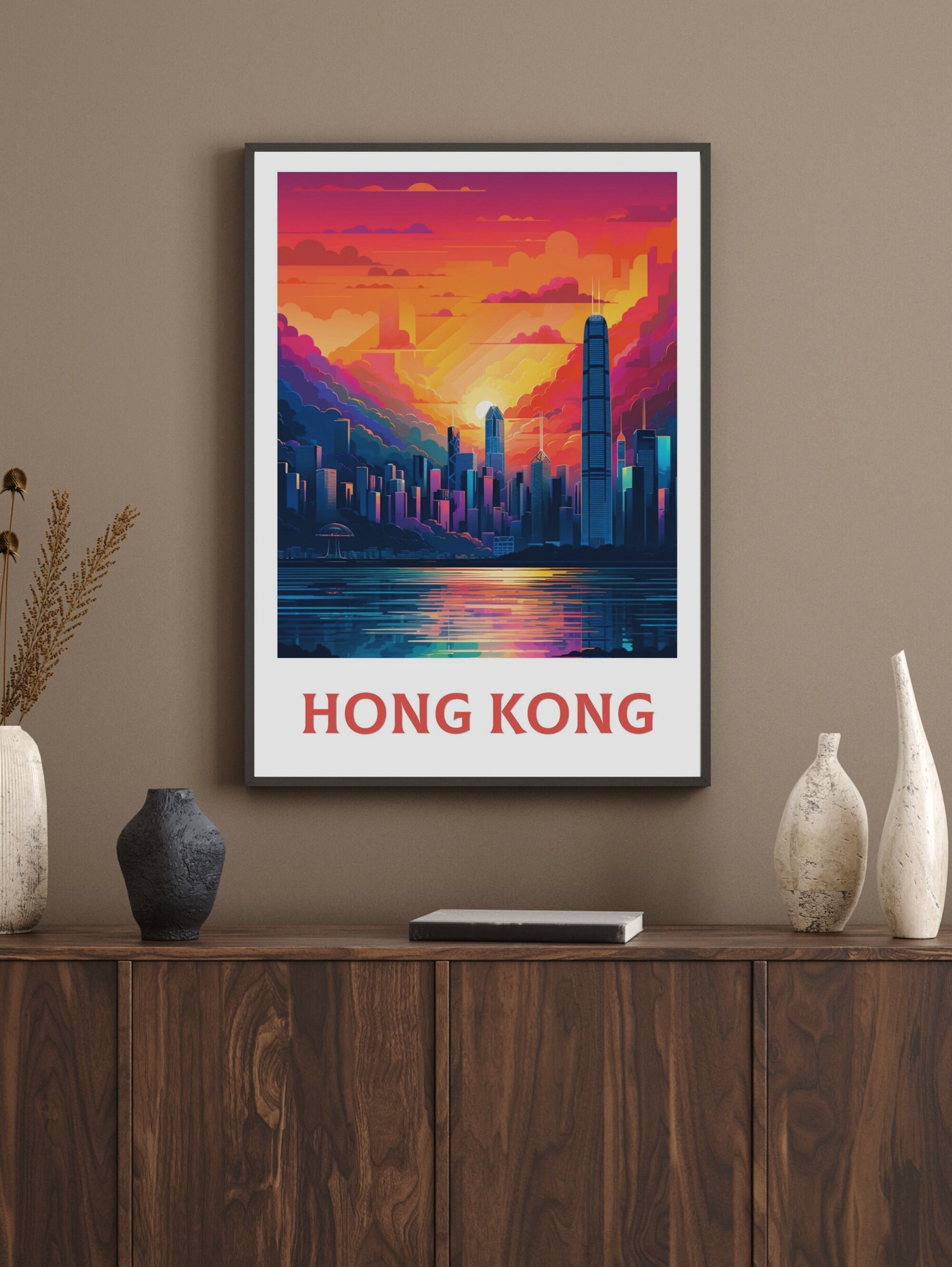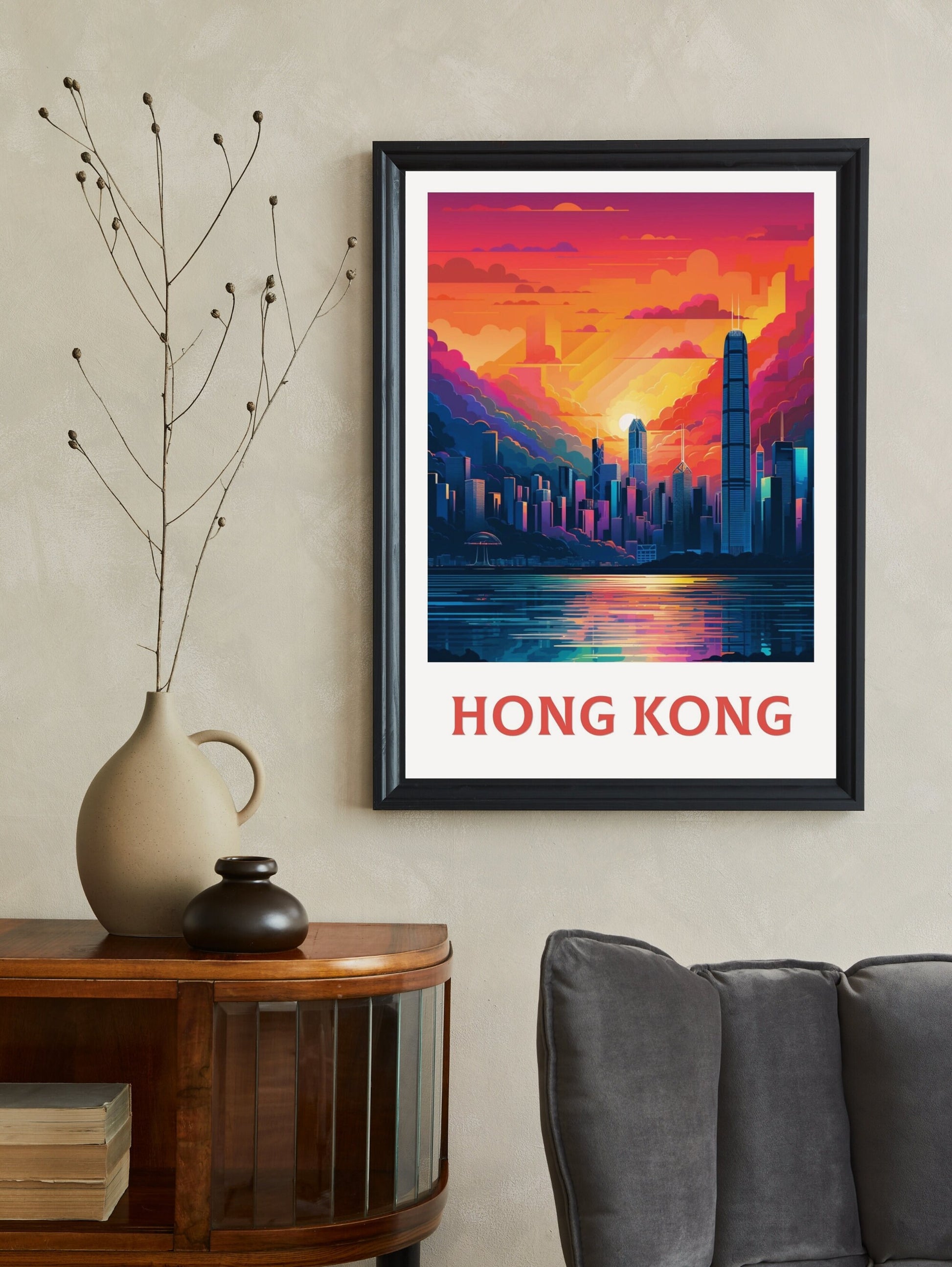 Cette œuvre mêle des rouges audacieux et des bleus froids à l'essence dynamique de Hong Kong, évoquant le charme d'un voyage vintage avec une touche de modernité. Imprimée sur un papier de qualité supérieure, elle offre un éclat durable et une finition lisse, ce qui en fait un cadeau idéal pour les aventuriers ou les collectionneurs d'art. Cette affiche de Hong Kong apporte une touche de nostalgie urbaine à tous vos murs.