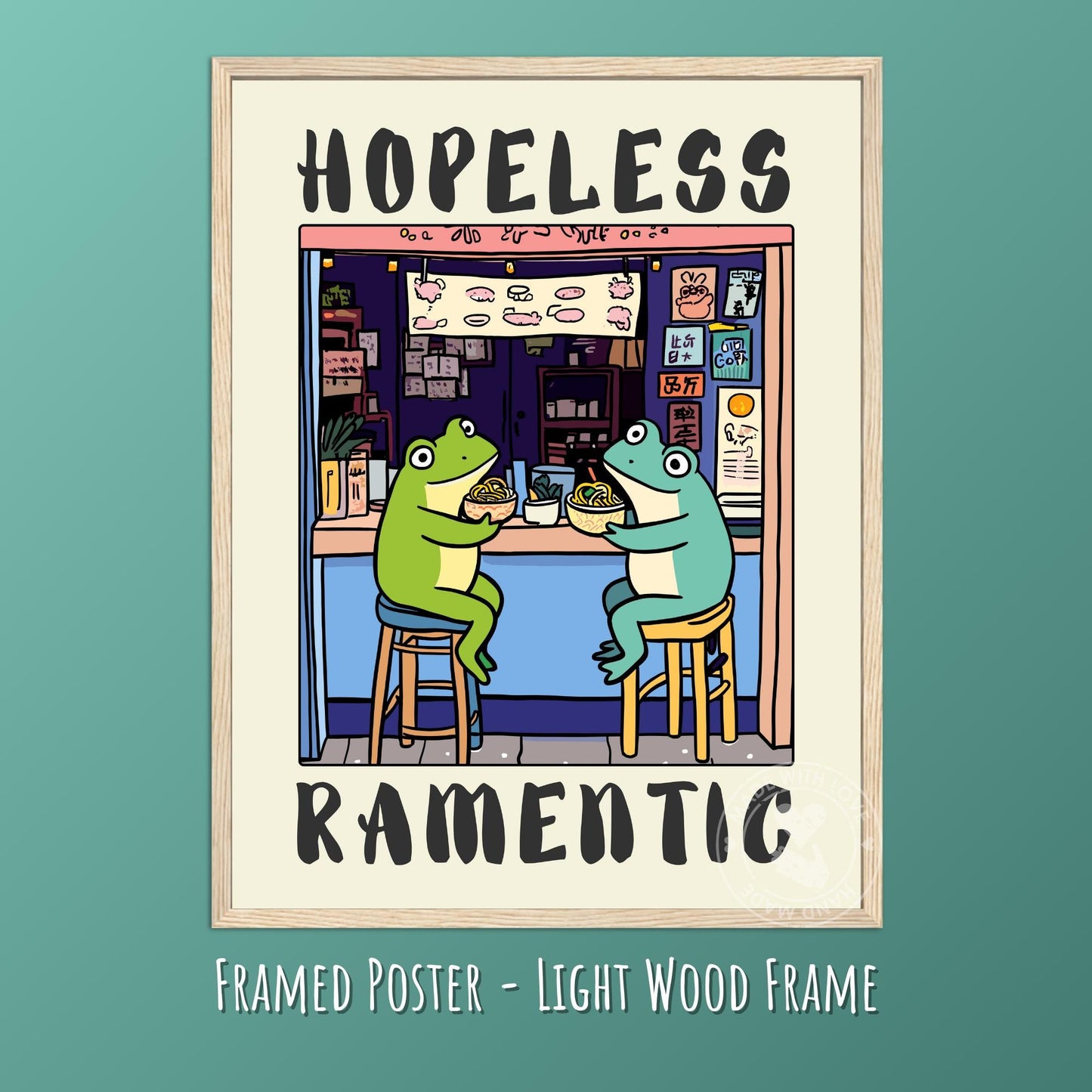 Affiche de ramen Hopeless Ramentic - Couple de grenouilles mignonnes