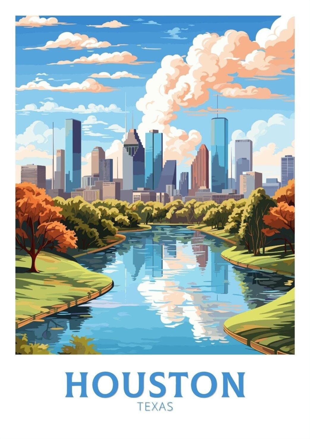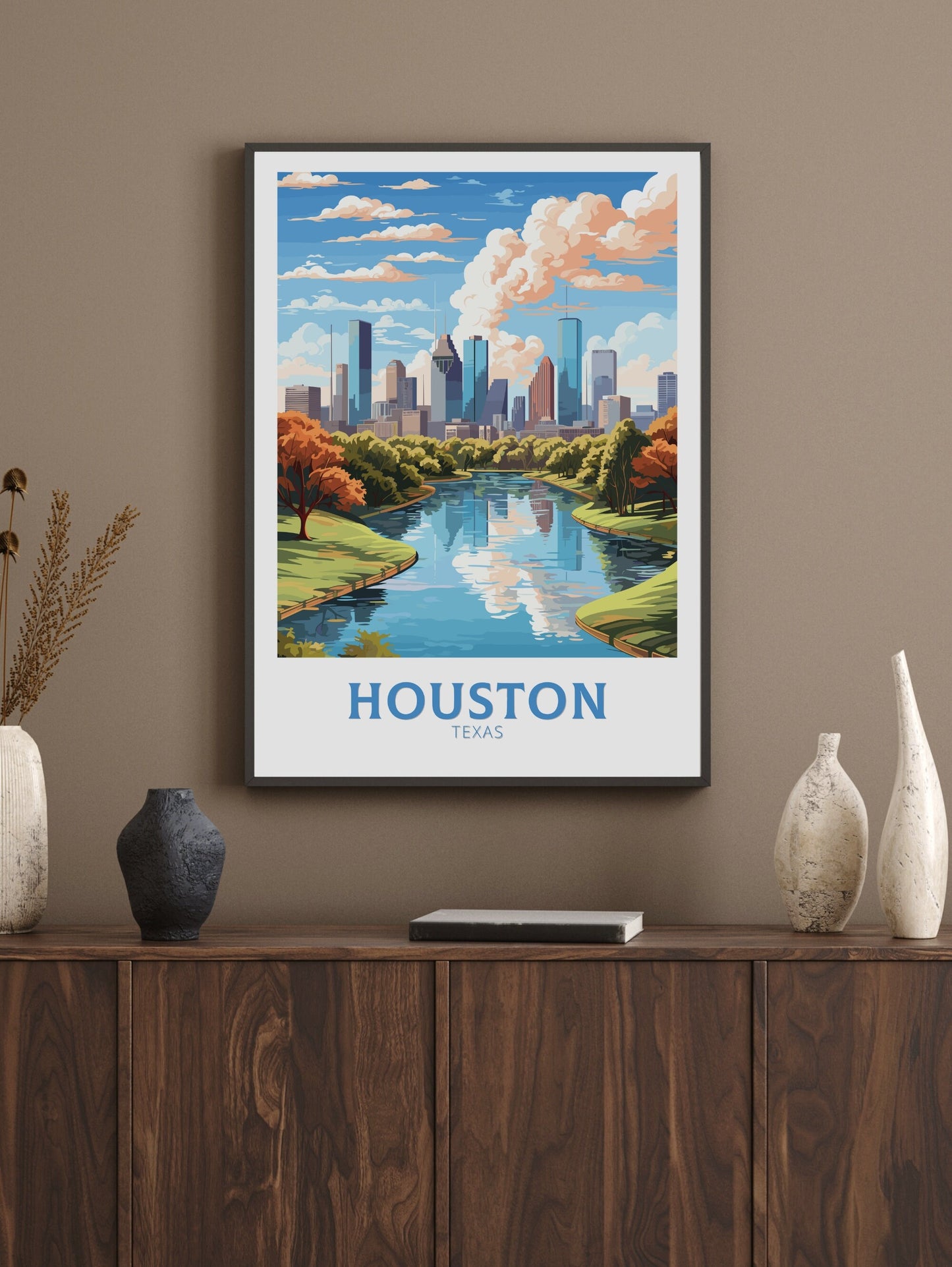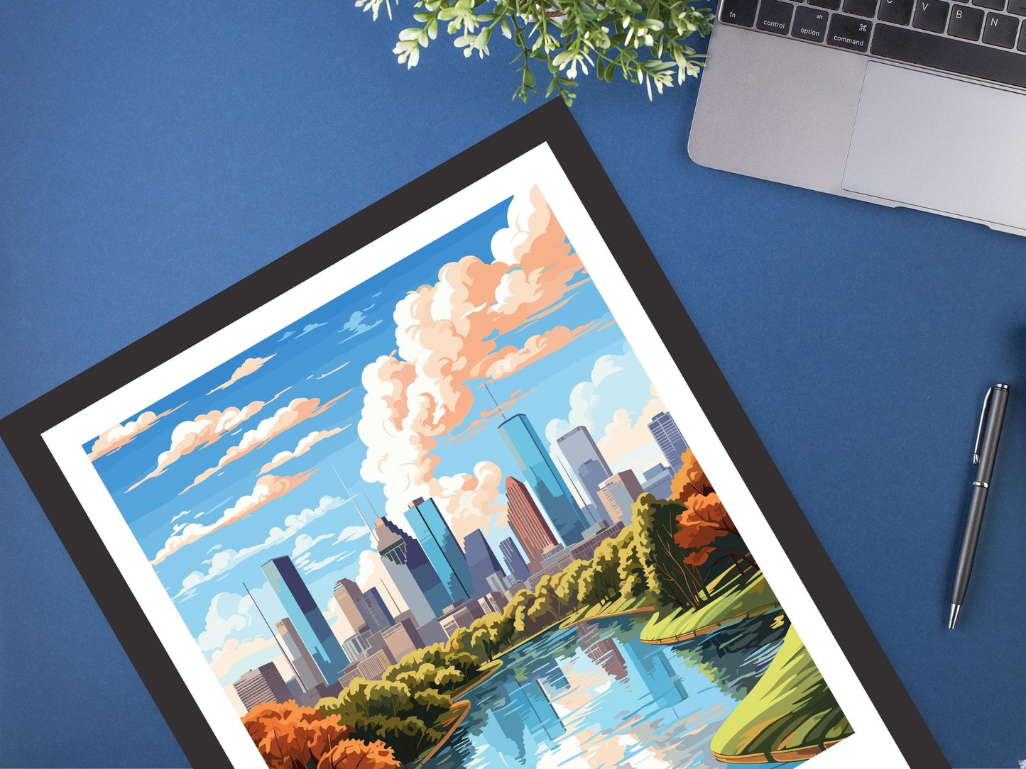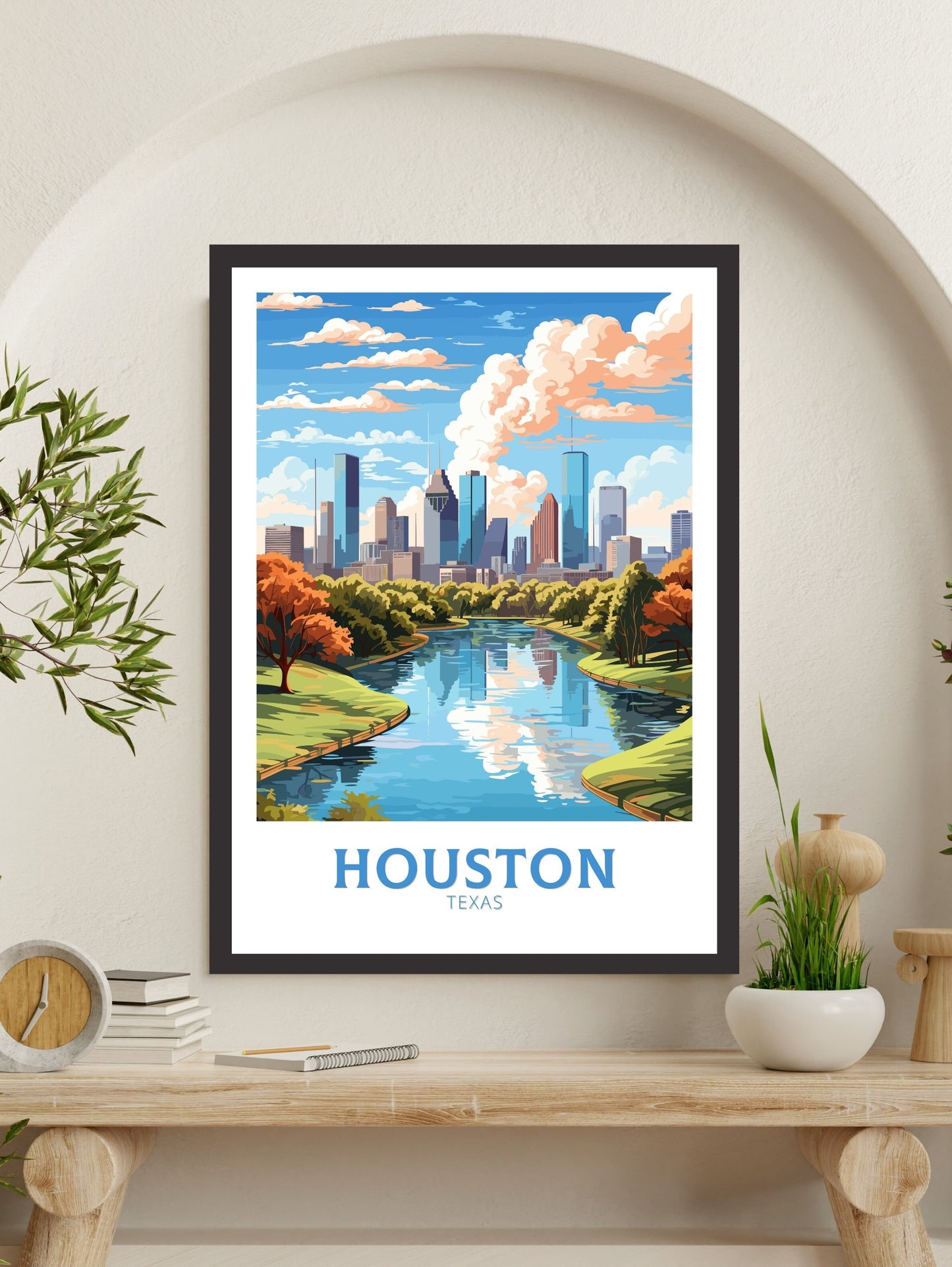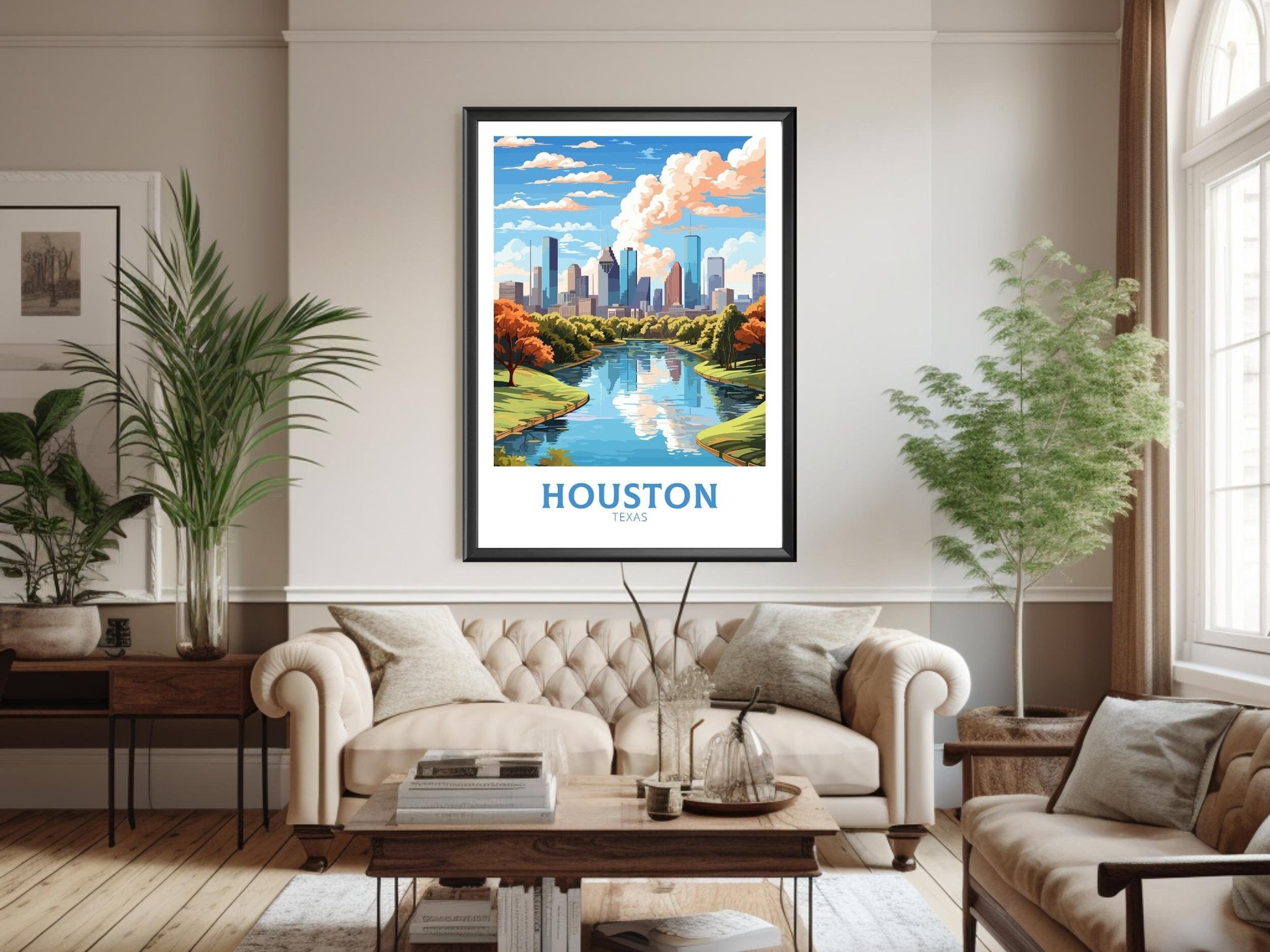 Disponible en téléchargement numérique et en tirage physique premium , cette affiche de voyage de Houston est disponible en plusieurs formats, des formats standard de la série A aux grands formats 76 x 102 cm. Imprimée sur du papier de haute qualité, aux couleurs vives et aux détails précis, elle est idéale pour décorer votre intérieur ou pour offrir à toute personne inspirée par le charme de Houston, au Texas.