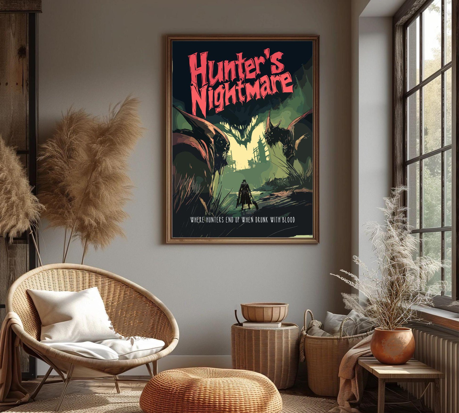 Affiche du cauchemar du chasseur – Décoration murale de jeu d'horreur gothique