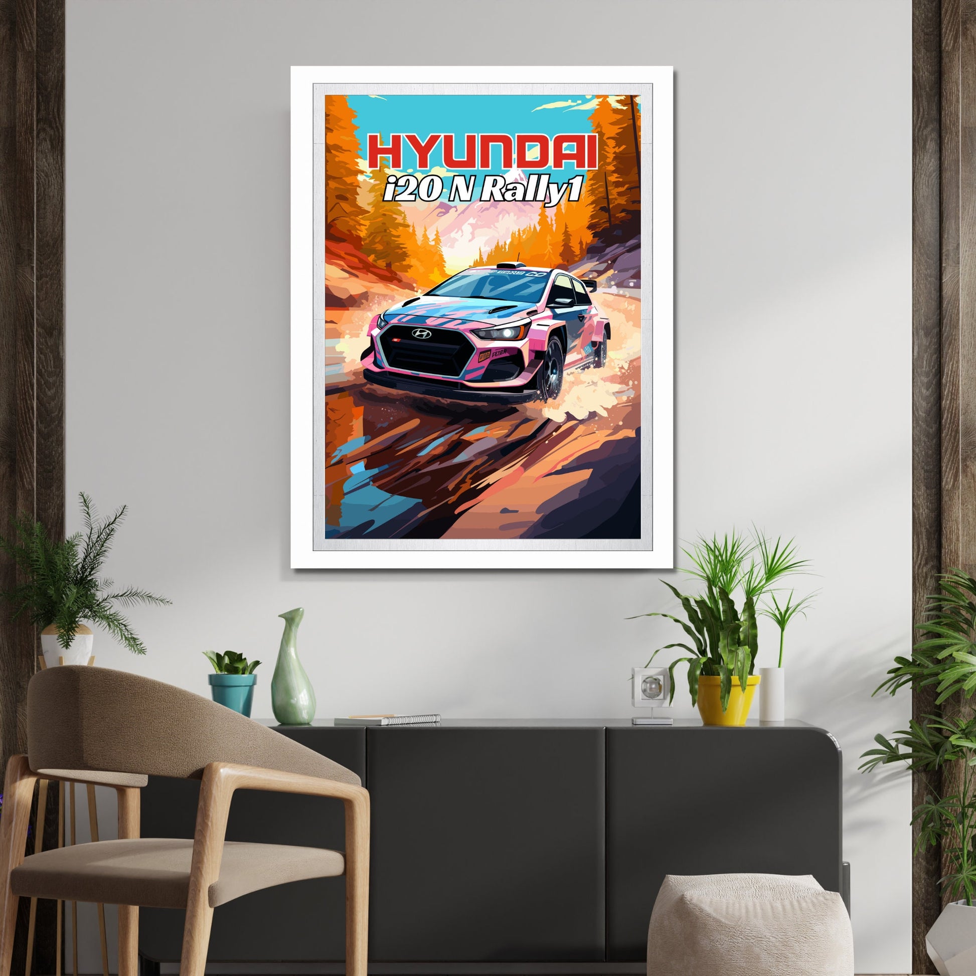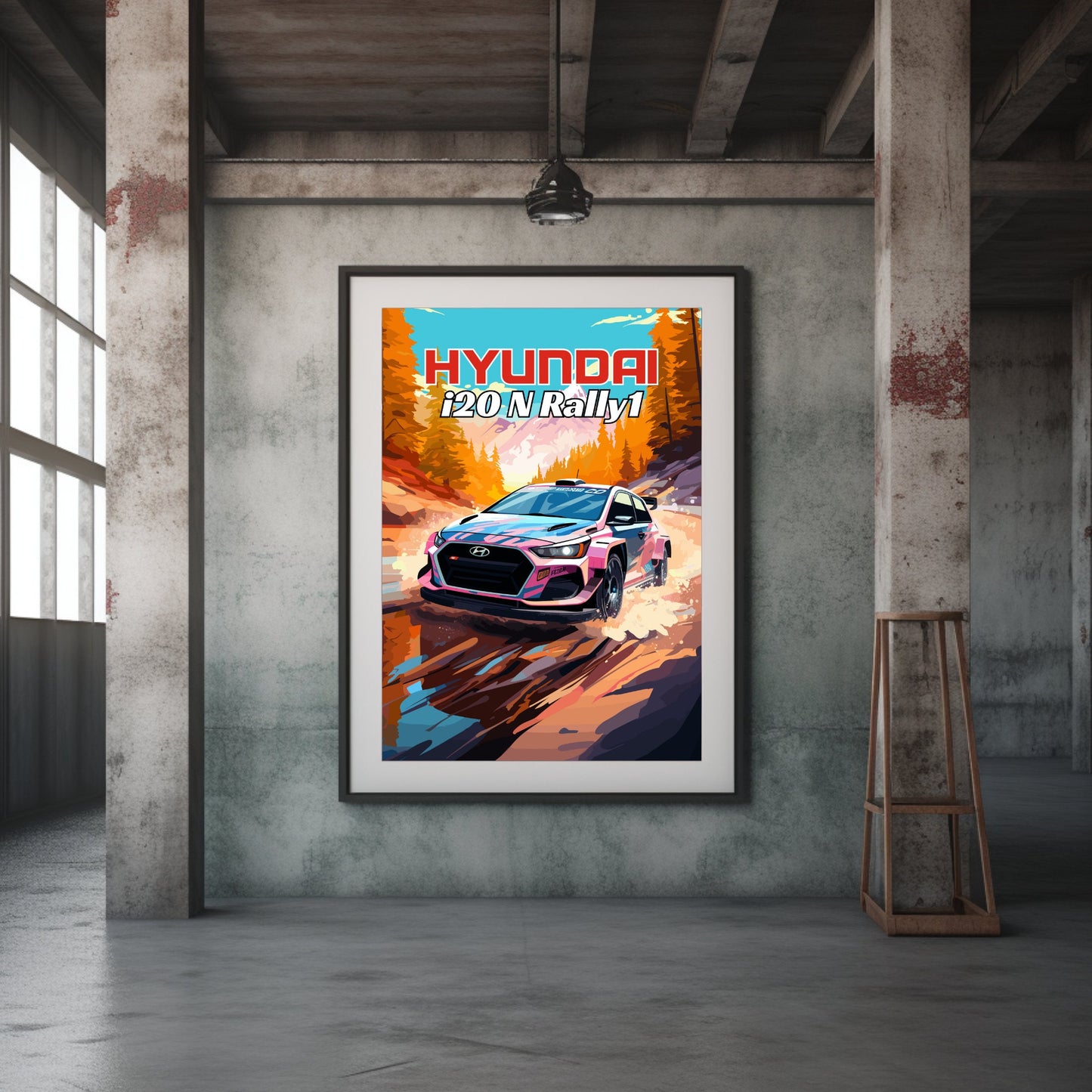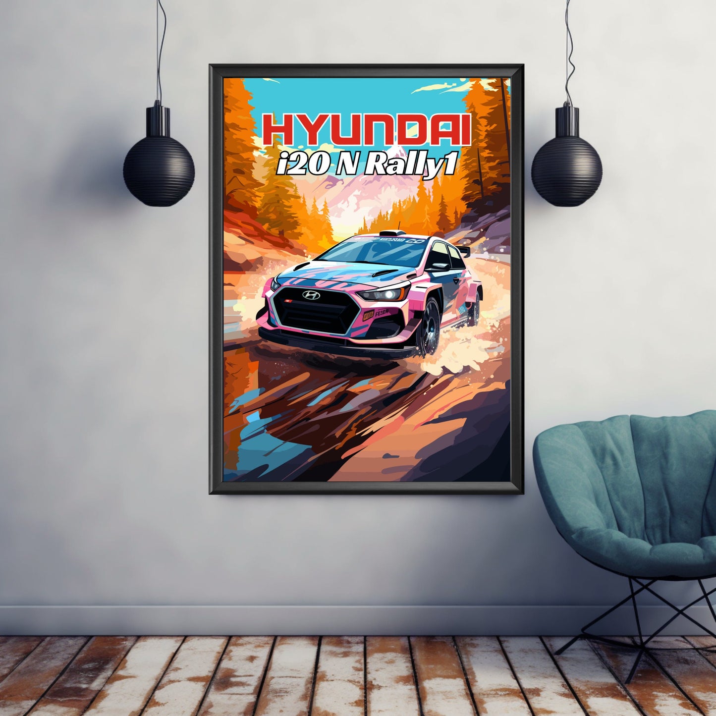 Affiche Hyundai i20 N Rally1 – Décoration murale moderne de voiture de rallye hybride WRC