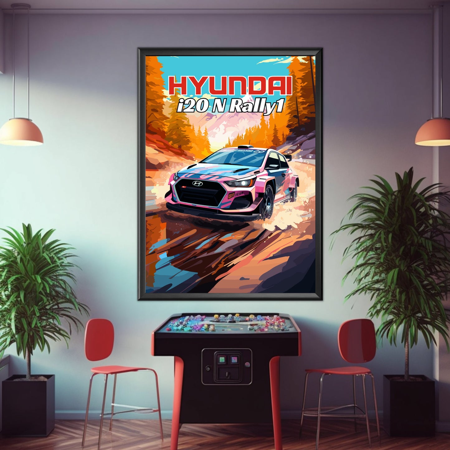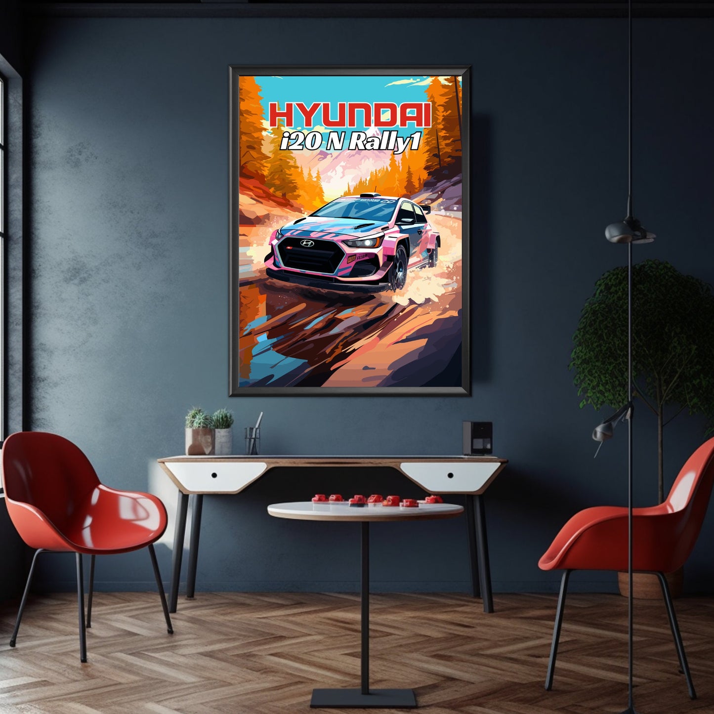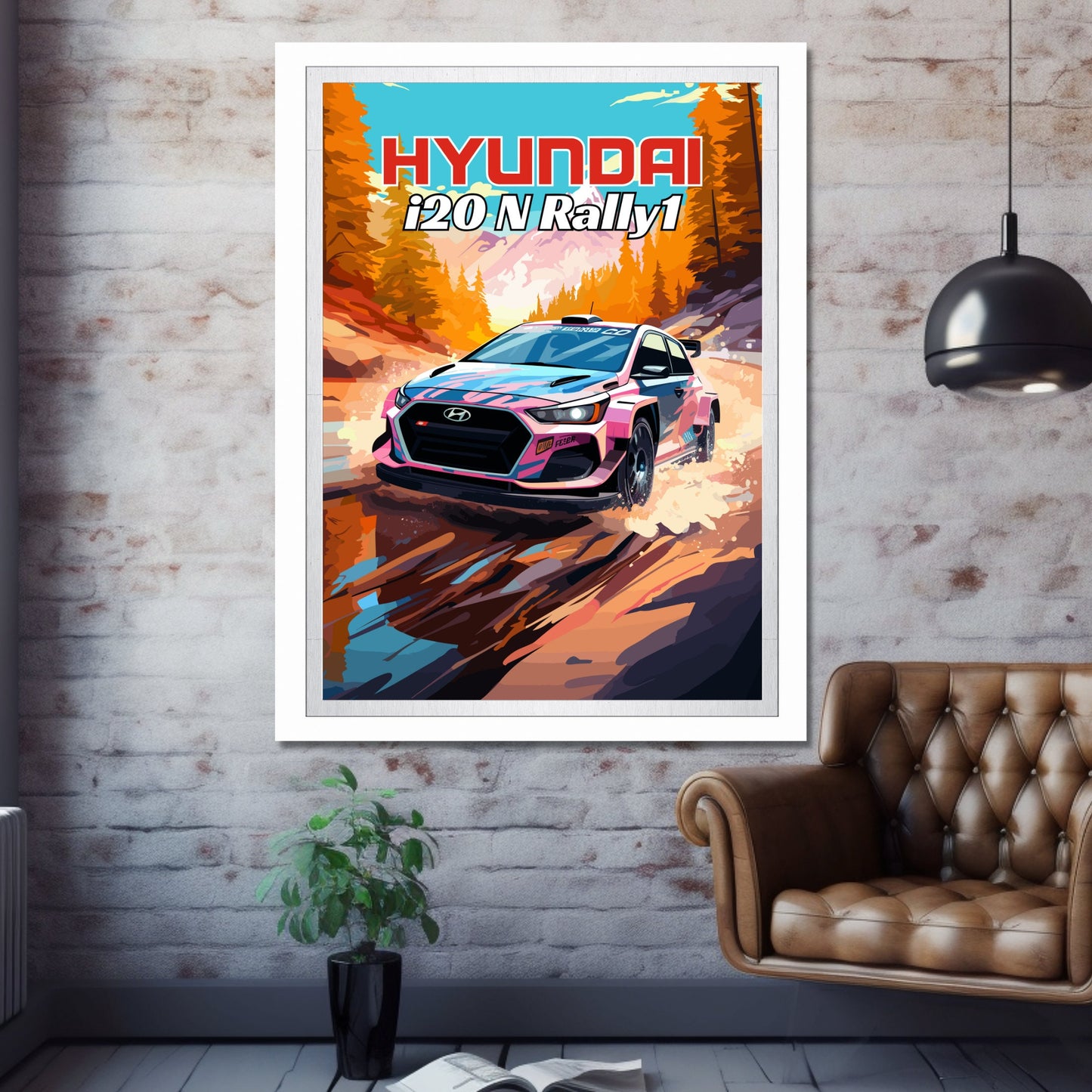 Affiche Hyundai i20 N Rally1 – Décoration murale moderne de voiture de rallye hybride WRC