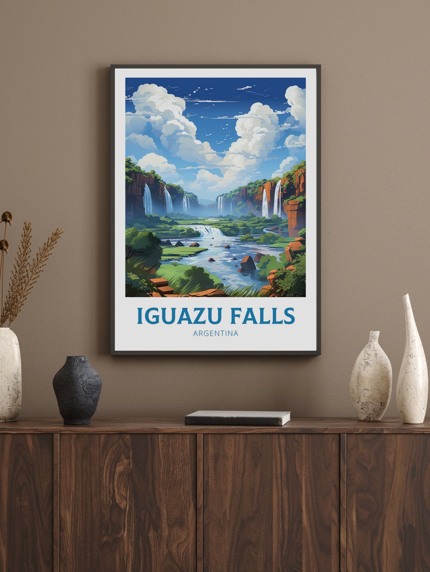 Notre affiche de voyage des chutes d'Iguazu - Art rétro de la jungle plonge votre intérieur dans la majesté tonitruante des chutes d'Iguazu, qui s'étendent de l'Argentine au Brésil, grâce à son design nostalgique. Parfaite pour les passionnés de voyages et les amateurs d'art rétro, elle capture les eaux tumultueuses et les arcs-en-ciel brumeux dans un style intemporel. Que vous ayez ressenti son rugissement ou rêvé de sa splendeur, cette affiche rétro d'Iguazu sera un ajout magnifique à votre décoration.