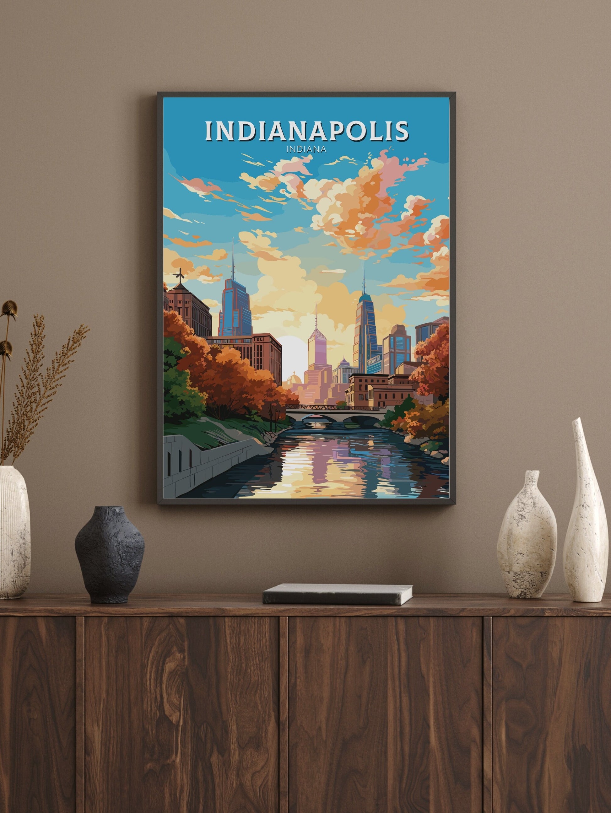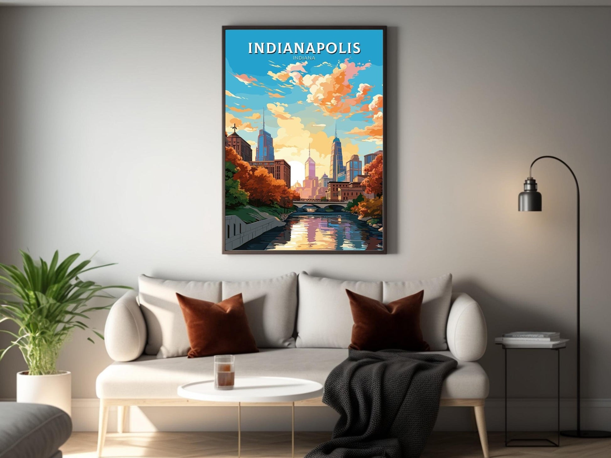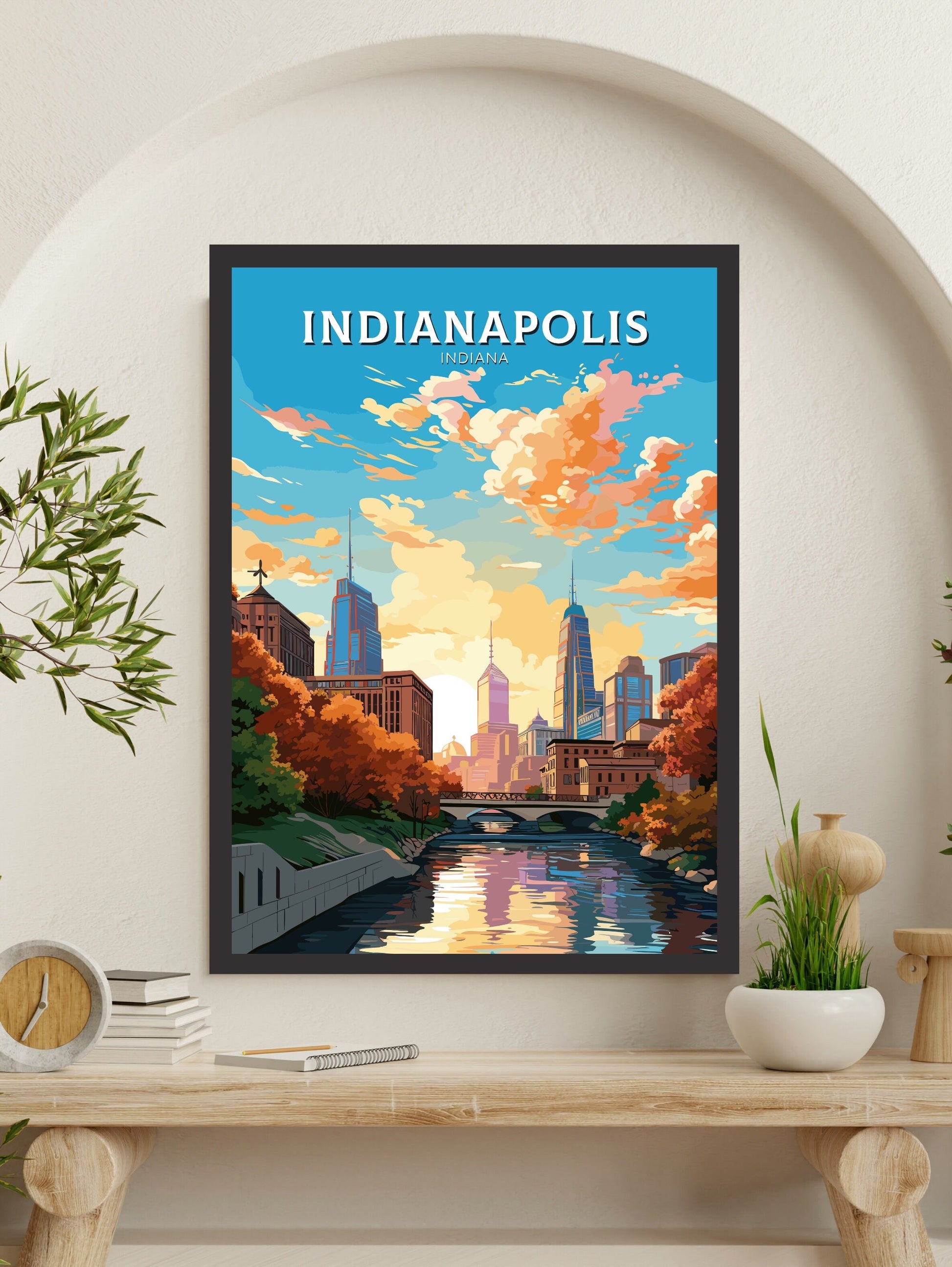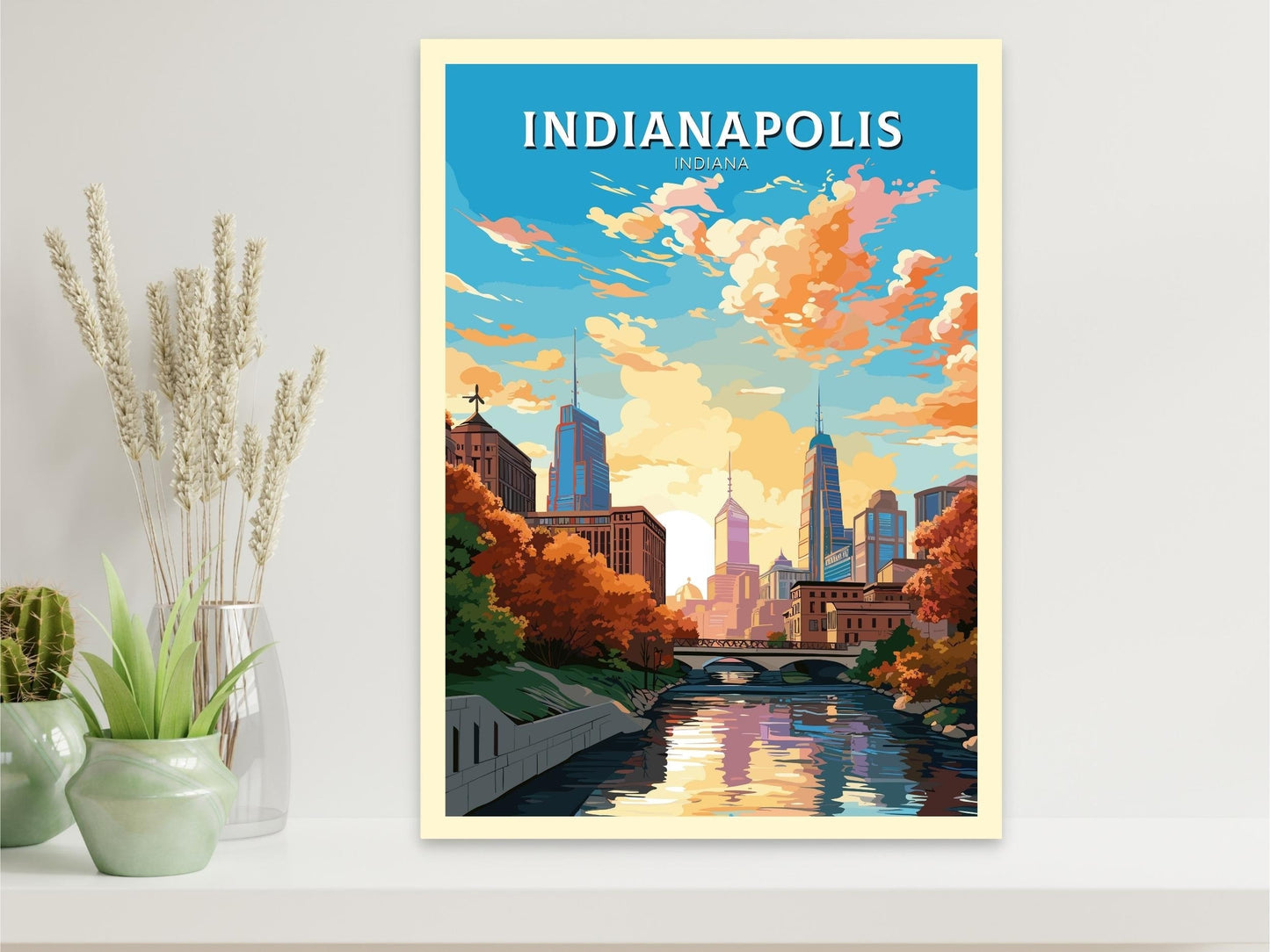 Disponible en téléchargement numérique et en tirage physique premium , cette affiche de voyage d'Indianapolis est disponible en plusieurs formats, du format standard de la série A au grand format 76 x 102 cm. Imprimée sur un papier de haute qualité aux couleurs vives et aux détails précis, elle est idéale pour décorer votre intérieur ou pour offrir à toute personne inspirée par le charme d'Indianapolis, dans l'Indiana.