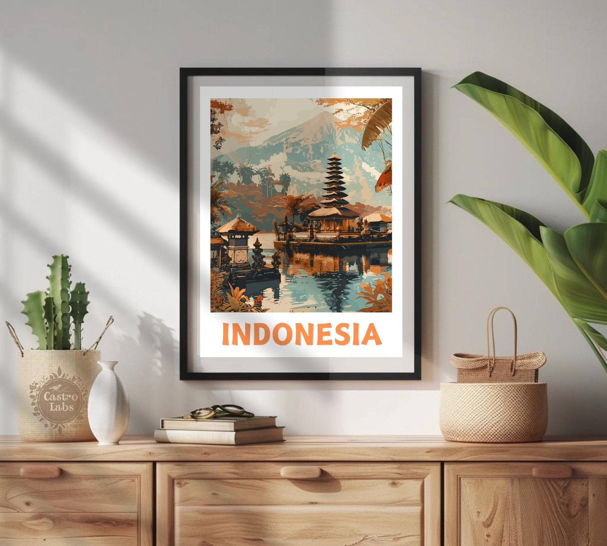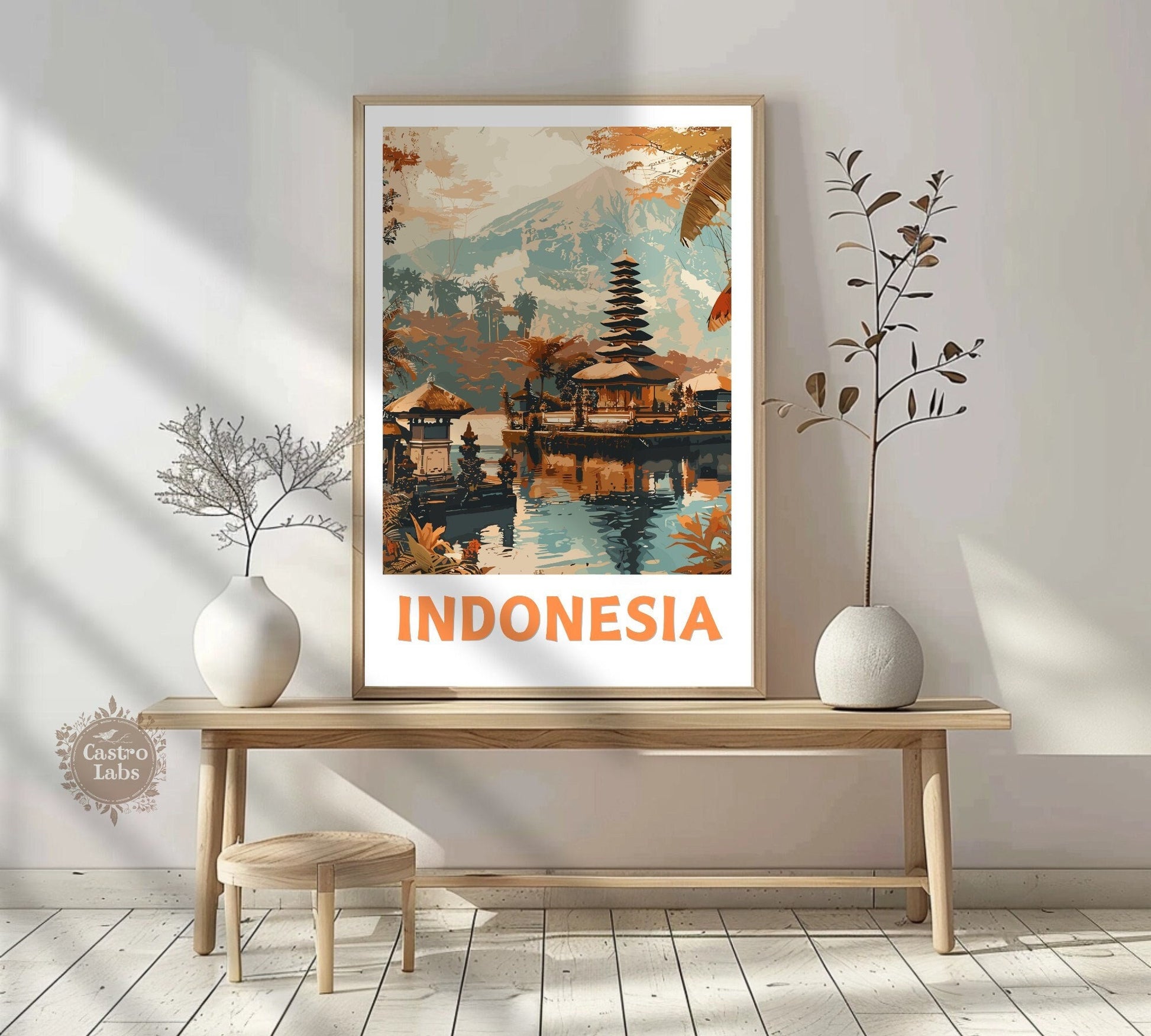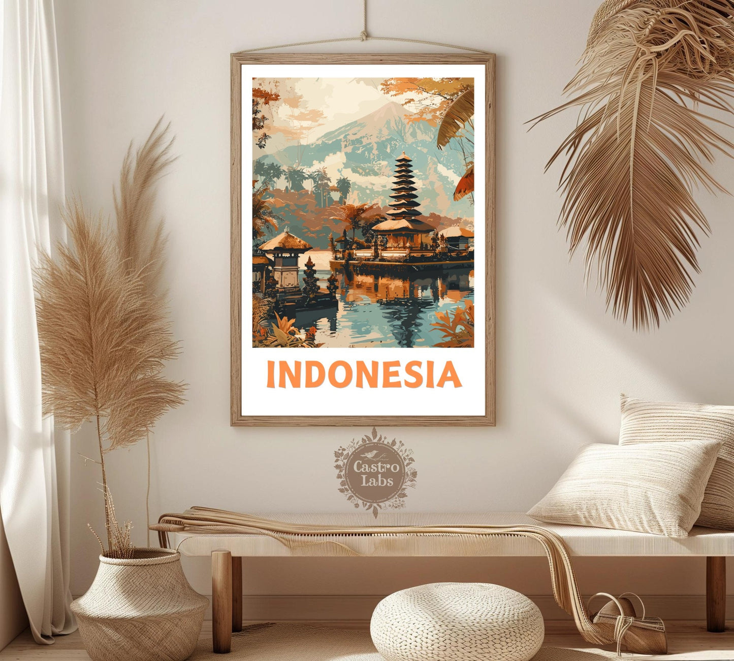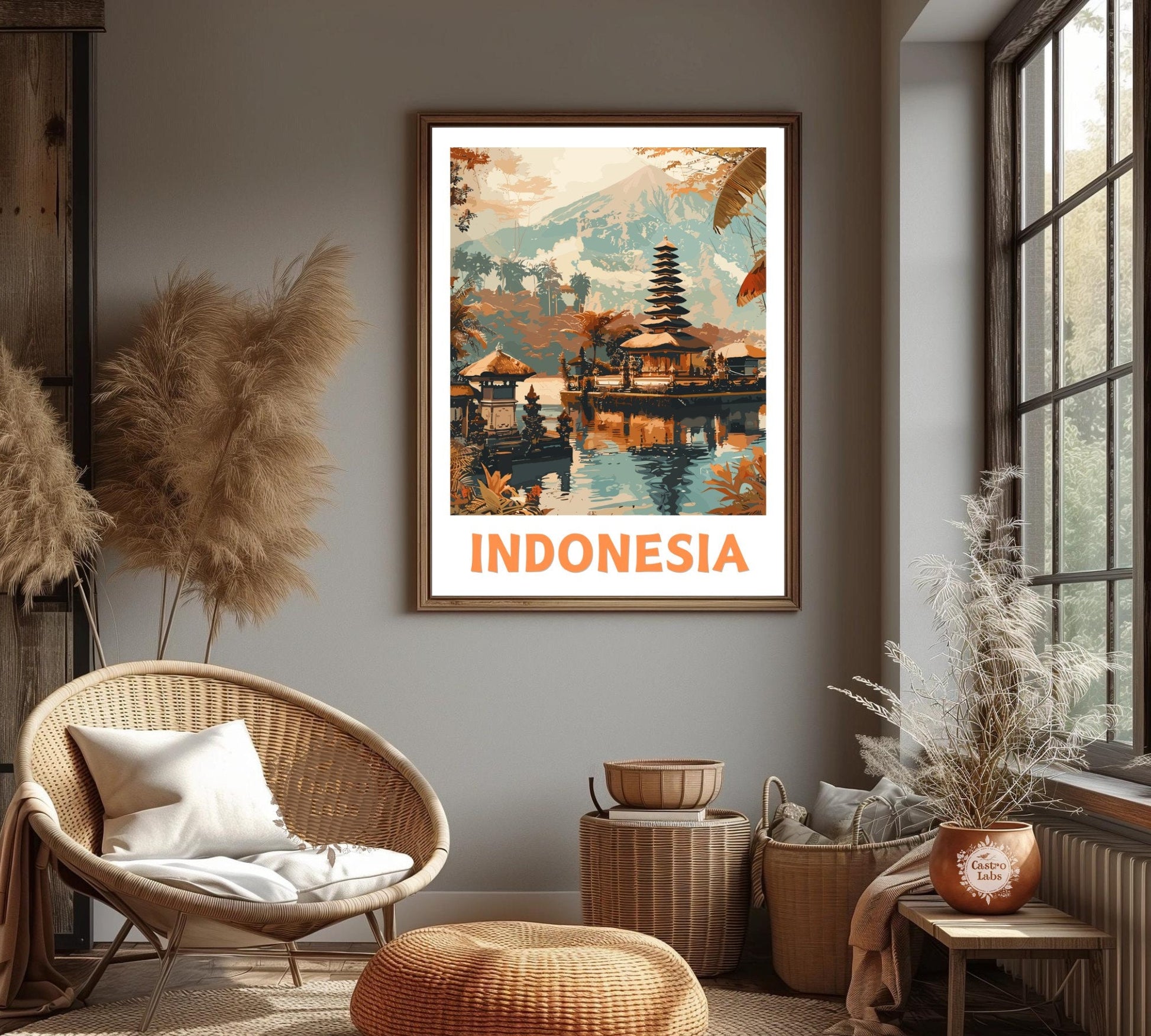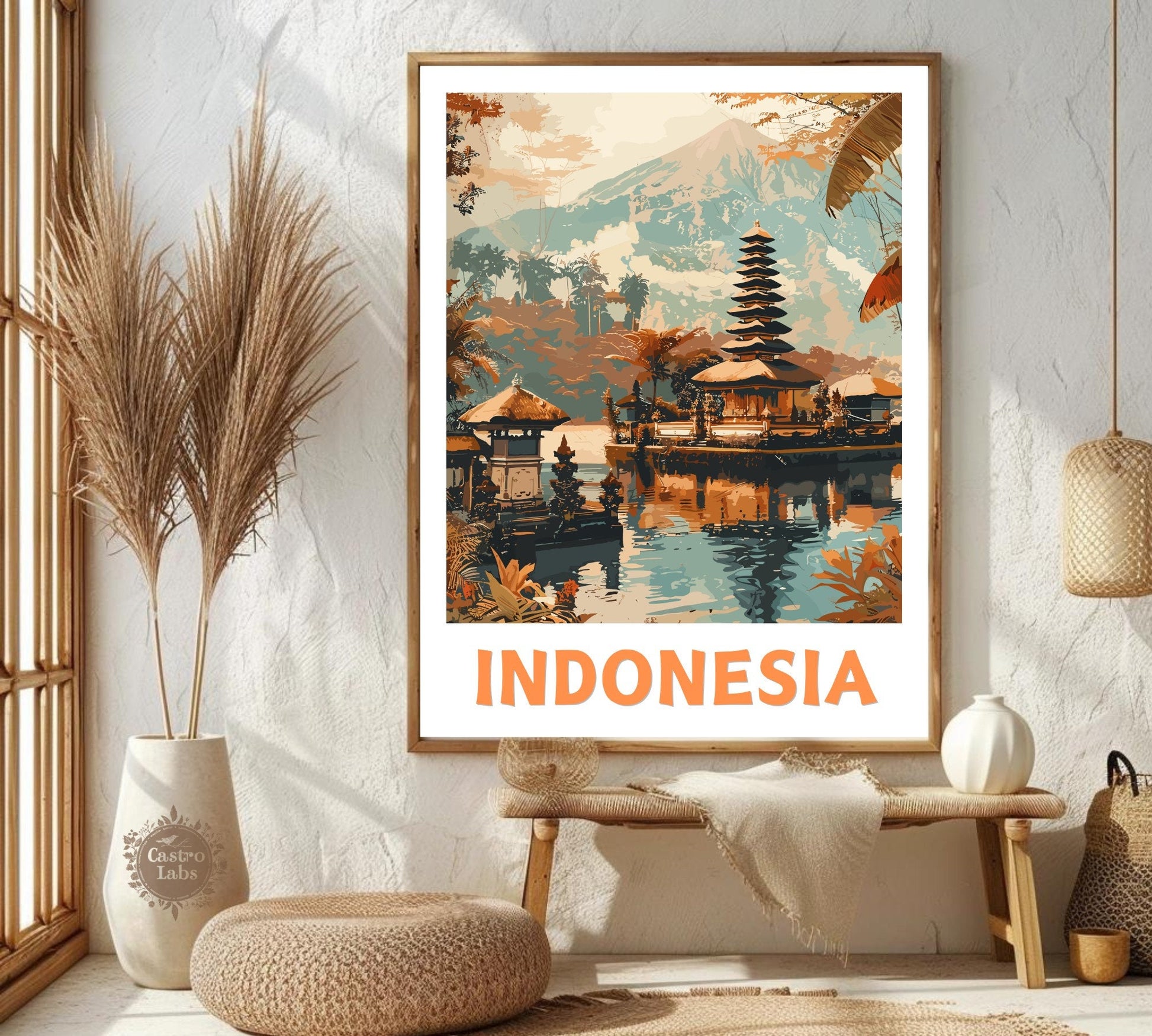 Affiche de voyage en Indonésie - Œuvre d'art du temple
