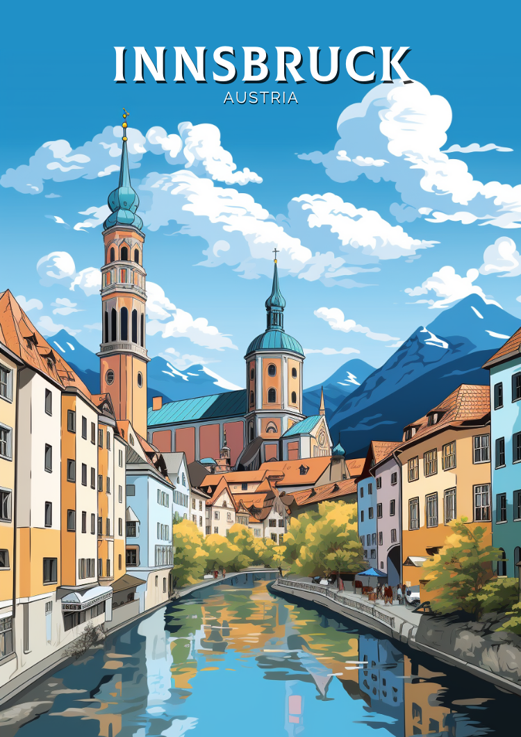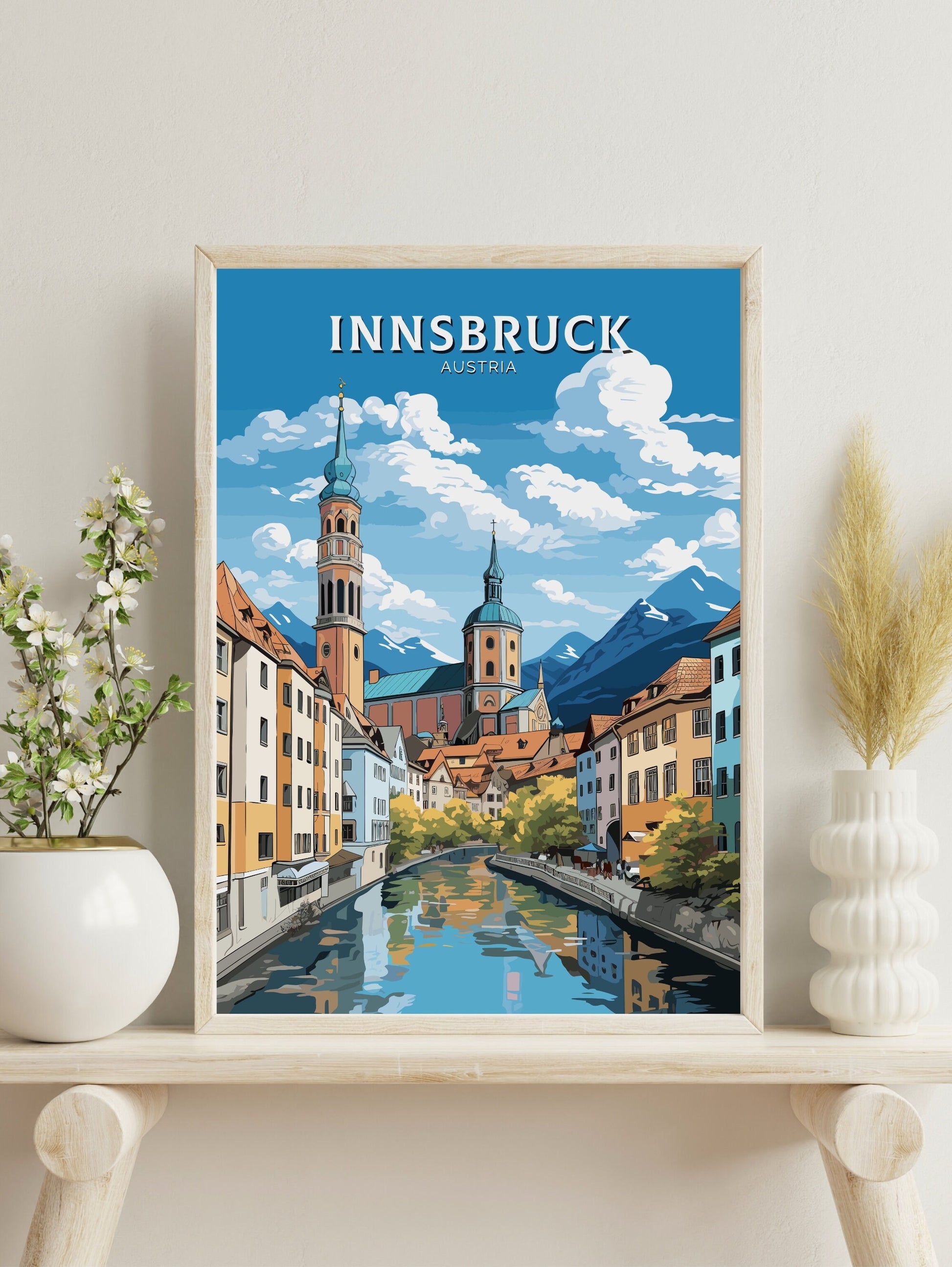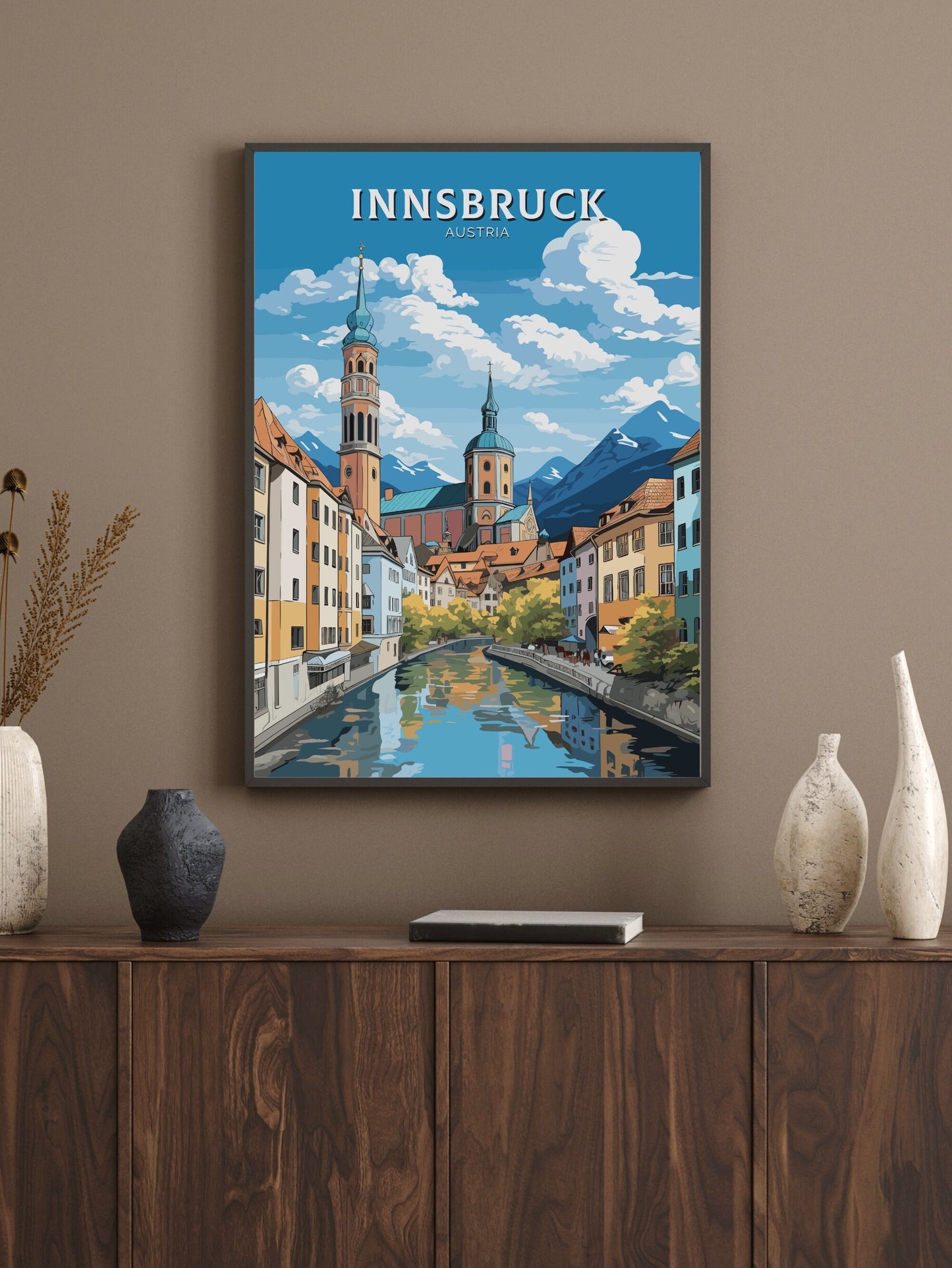 Que vous ayez flâné dans les rues alpines d'Innsbruck ou rêvé d'explorer ses sommets enneigés, l' affiche de voyage d'Innsbruck vous plonge dans l'esprit inspirant de l'Autriche , chez vous ou au bureau. Imprimée sur du papier de qualité supérieure avec des encres vives et résistantes à la décoloration, elle apporte une touche intemporelle et élégante à tout espace.