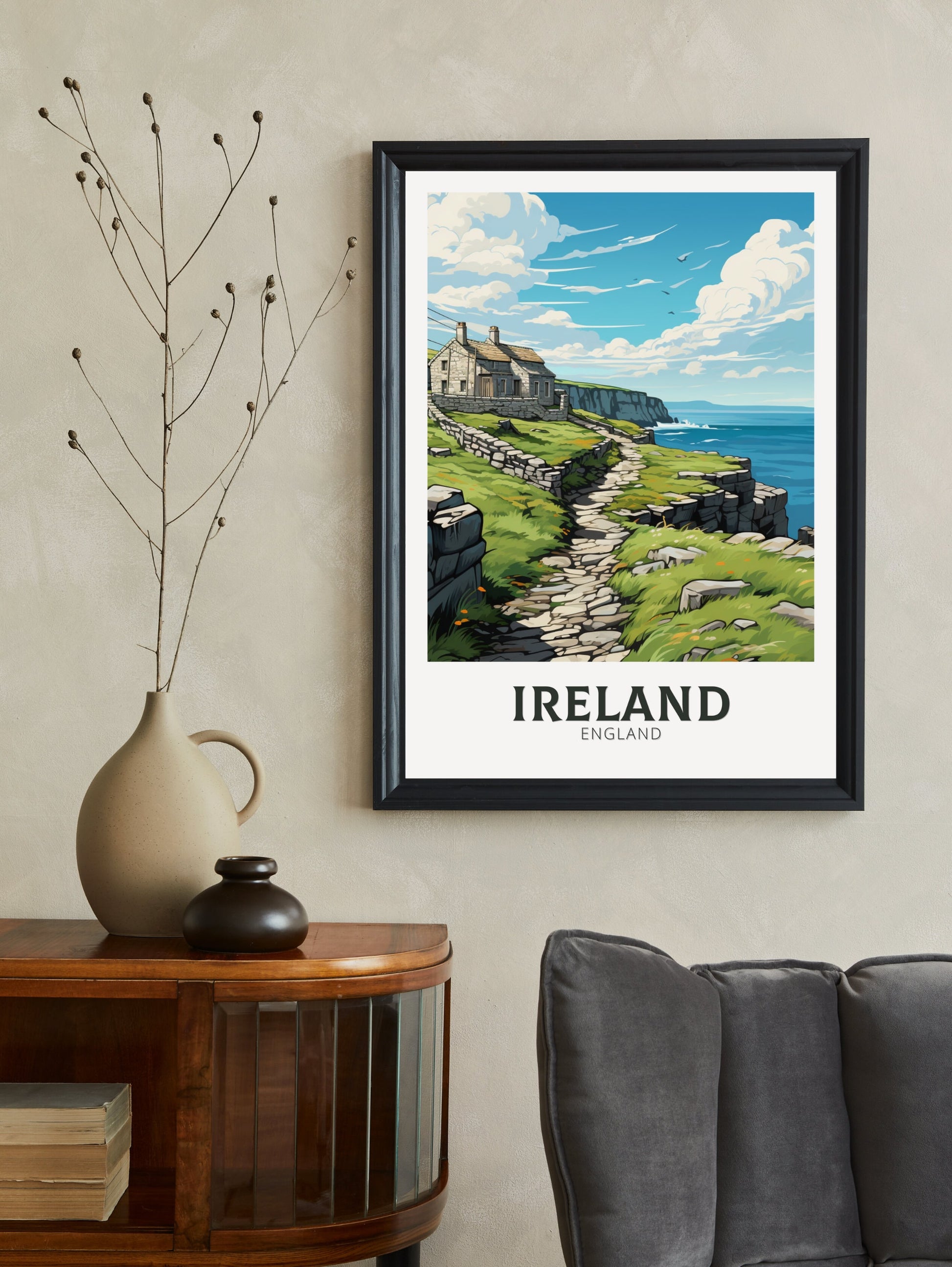 Faites entrer la beauté sauvage de la côte irlandaise chez vous avec cette affiche de voyage irlandaise , mettant en valeur les emblématiques falaises de Moher avec des détails saisissants. Dominant l'océan Atlantique, ces falaises sont l'un des sites naturels les plus époustouflants d'Irlande , parfaitement immortalisées dans ce superbe motif. Idéal pour les amateurs de paysages irlandais , d'art de voyage et de décoration murale pittoresque.