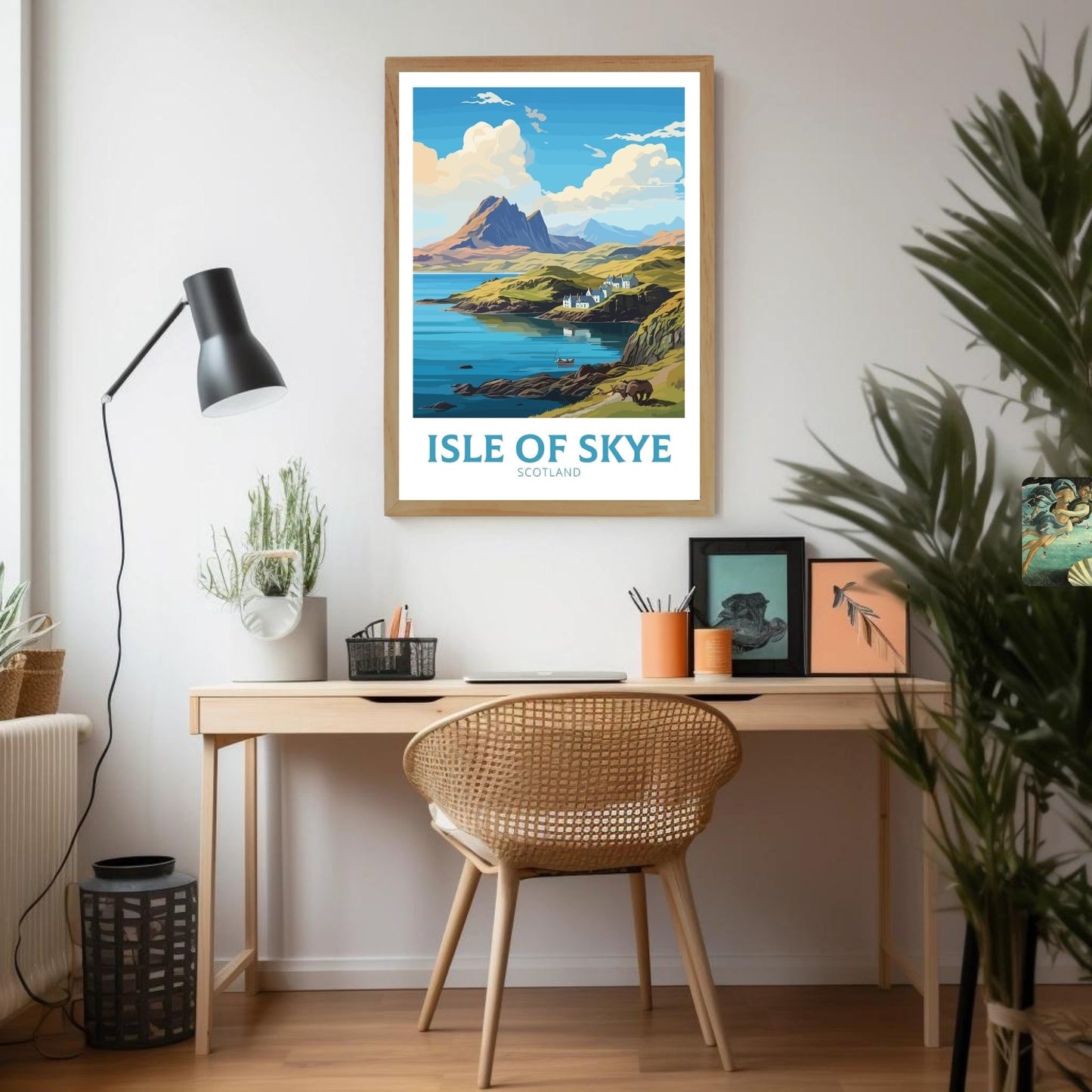 Capturez la magie sauvage des Highlands avec notre affiche de voyage de l'île de Skye , une œuvre d'art écossaise époustouflante qui met en valeur les falaises escarpées, les collines vallonnées et l'atmosphère mystique de l'île. Connue pour ses paysages spectaculaires et son charme intemporel, l' île de Skye est magnifiquement représentée dans cette affiche, parfaite pour les amateurs de paysages écossais , de voyages nature et de décoration murale élégante.