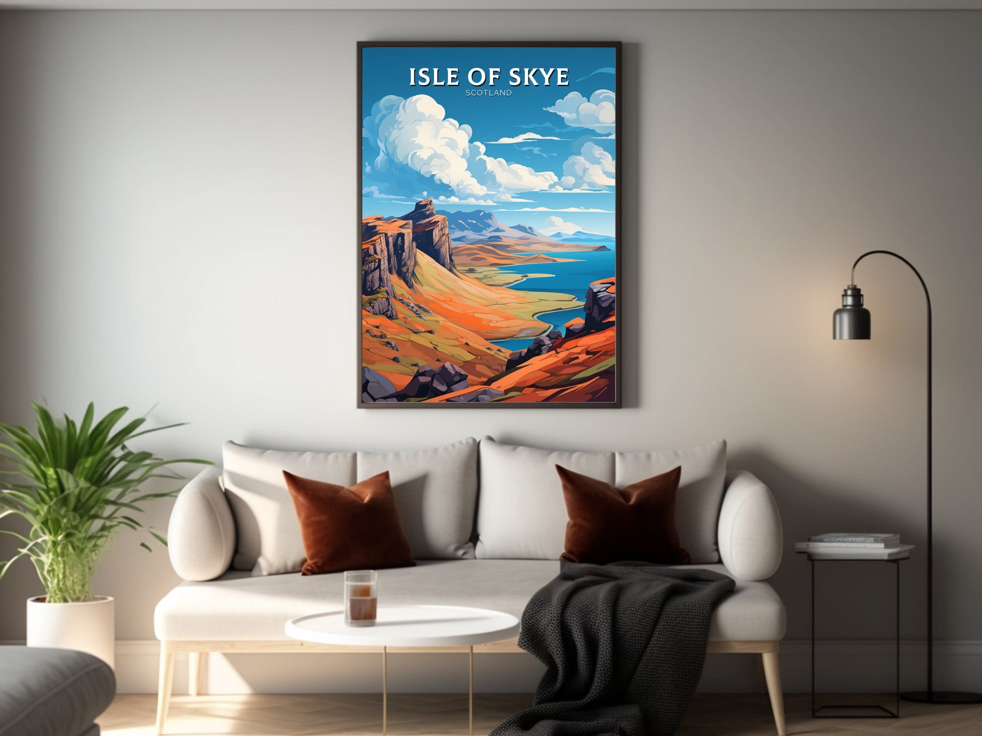 Embellissez votre intérieur avec la beauté sauvage des Highlands grâce à notre décoration murale de voyage Île de Skye , une superbe affiche écossaise mettant en scène les falaises emblématiques de l'île, son ciel changeant et ses paysages vallonnés. Cette œuvre d'art fait entrer la magie de l' île de Skye dans votre intérieur, capturant l'essence brute et intacte de l'une des destinations les plus époustouflantes d'Écosse .