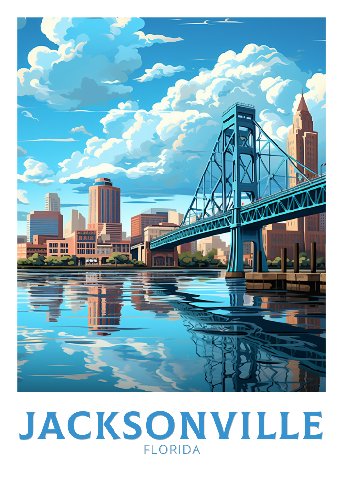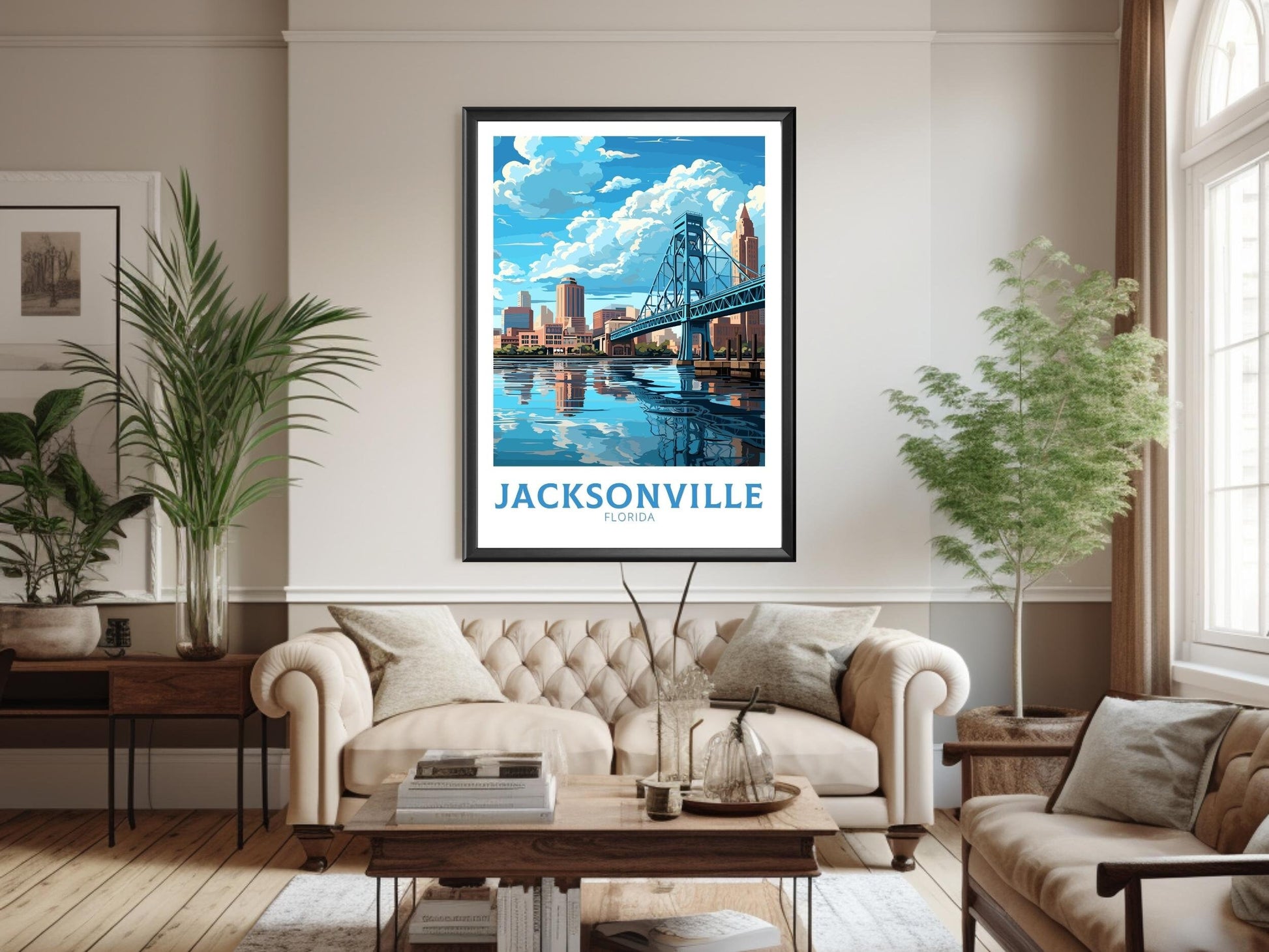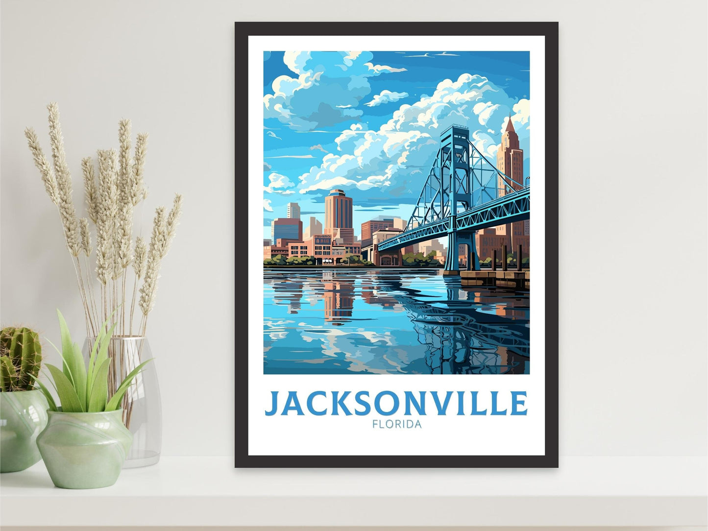 Disponible en téléchargement numérique et en tirage physique premium , cette affiche de voyage de Jacksonville est disponible en plusieurs formats, du format standard de la série A au grand format 76 x 102 cm. Imprimée sur un papier de haute qualité aux couleurs vives et aux détails précis, elle est idéale pour décorer votre intérieur ou pour offrir à toute personne inspirée par Jacksonville, en Floride.