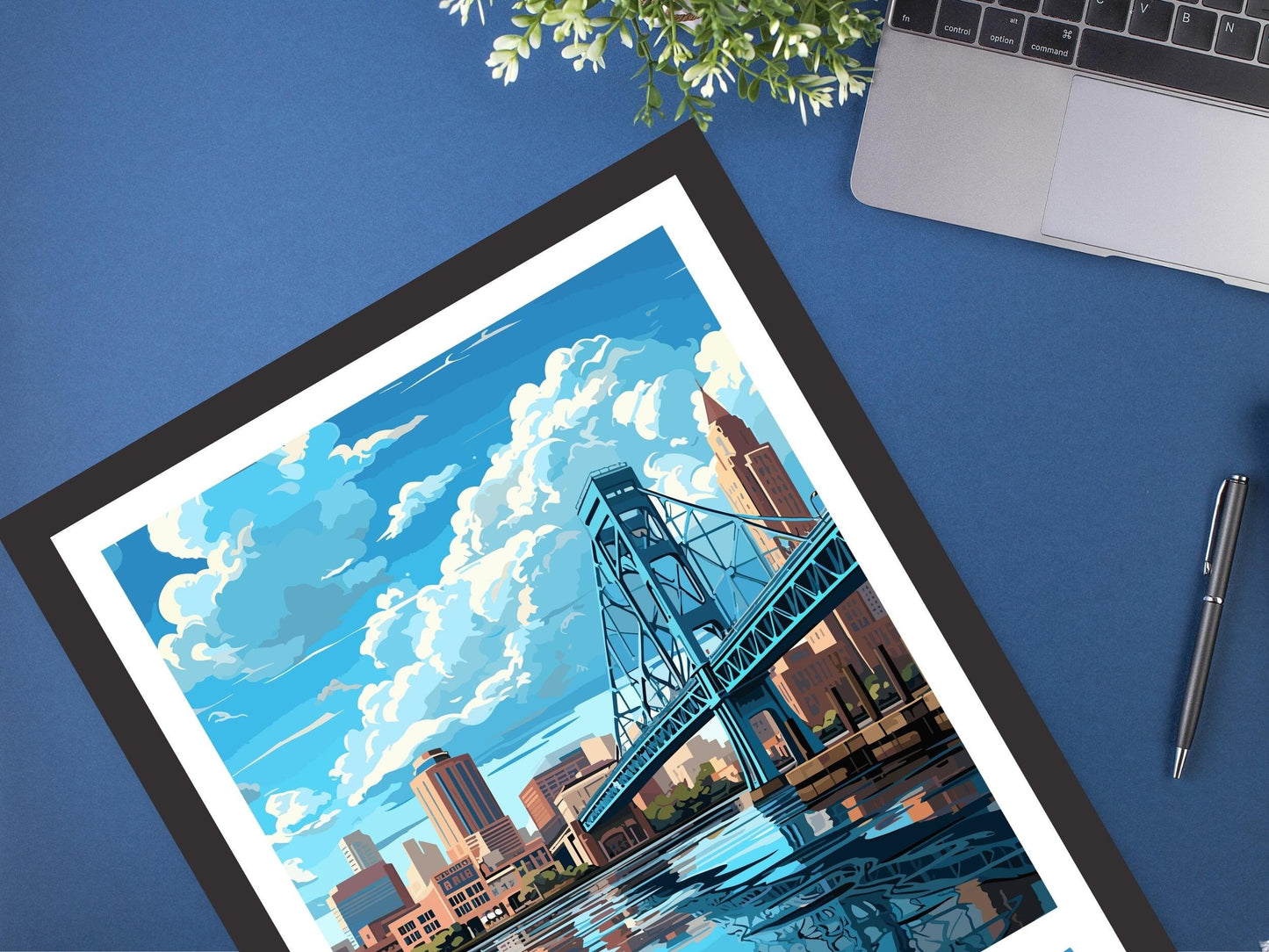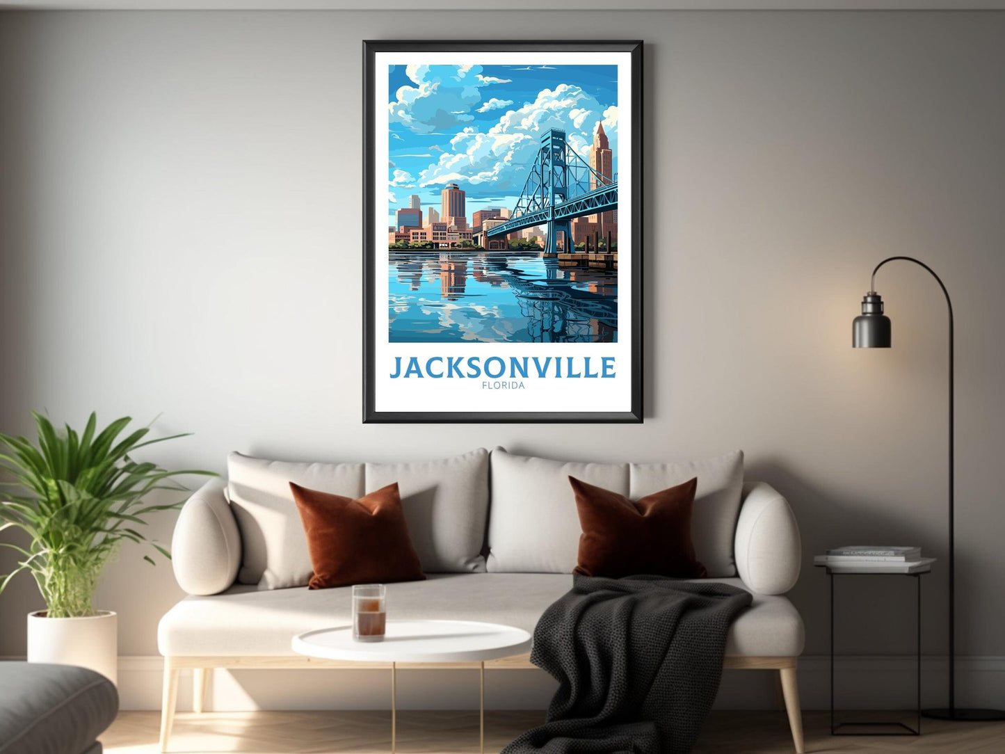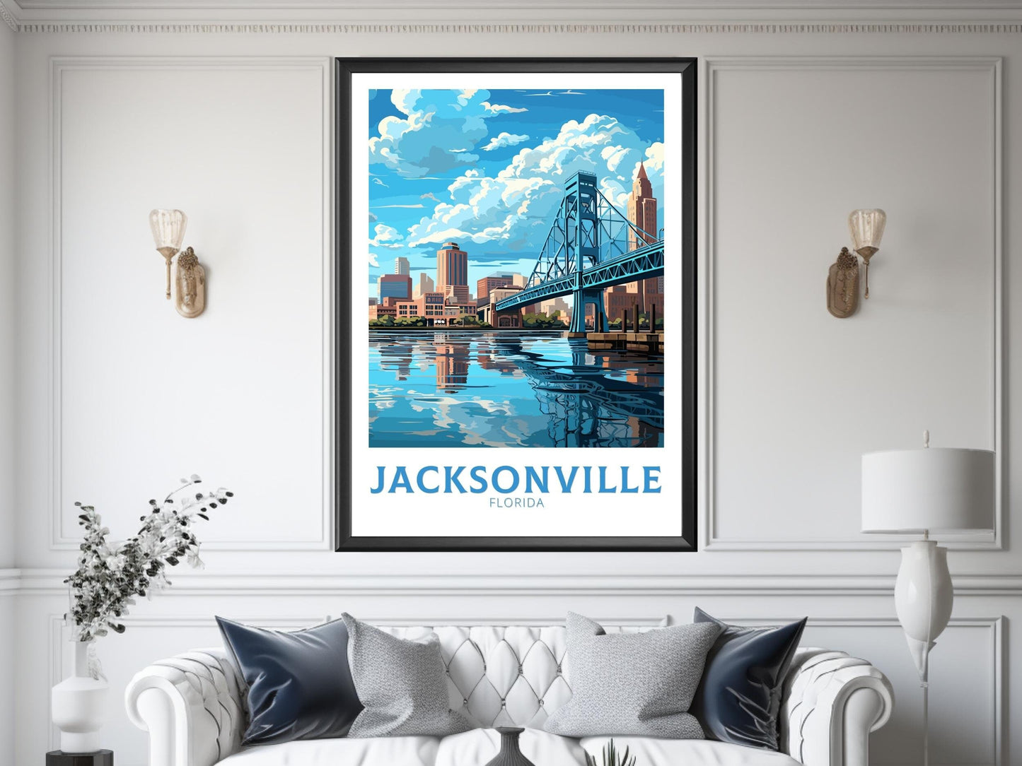 Disponible en téléchargement numérique et en tirage physique premium , cette affiche de voyage de Jacksonville est disponible en plusieurs formats, du format standard de la série A au grand format 76 x 102 cm. Imprimée sur un papier de haute qualité aux couleurs vives et aux détails précis, elle est idéale pour décorer votre intérieur ou pour offrir à toute personne inspirée par Jacksonville, en Floride.