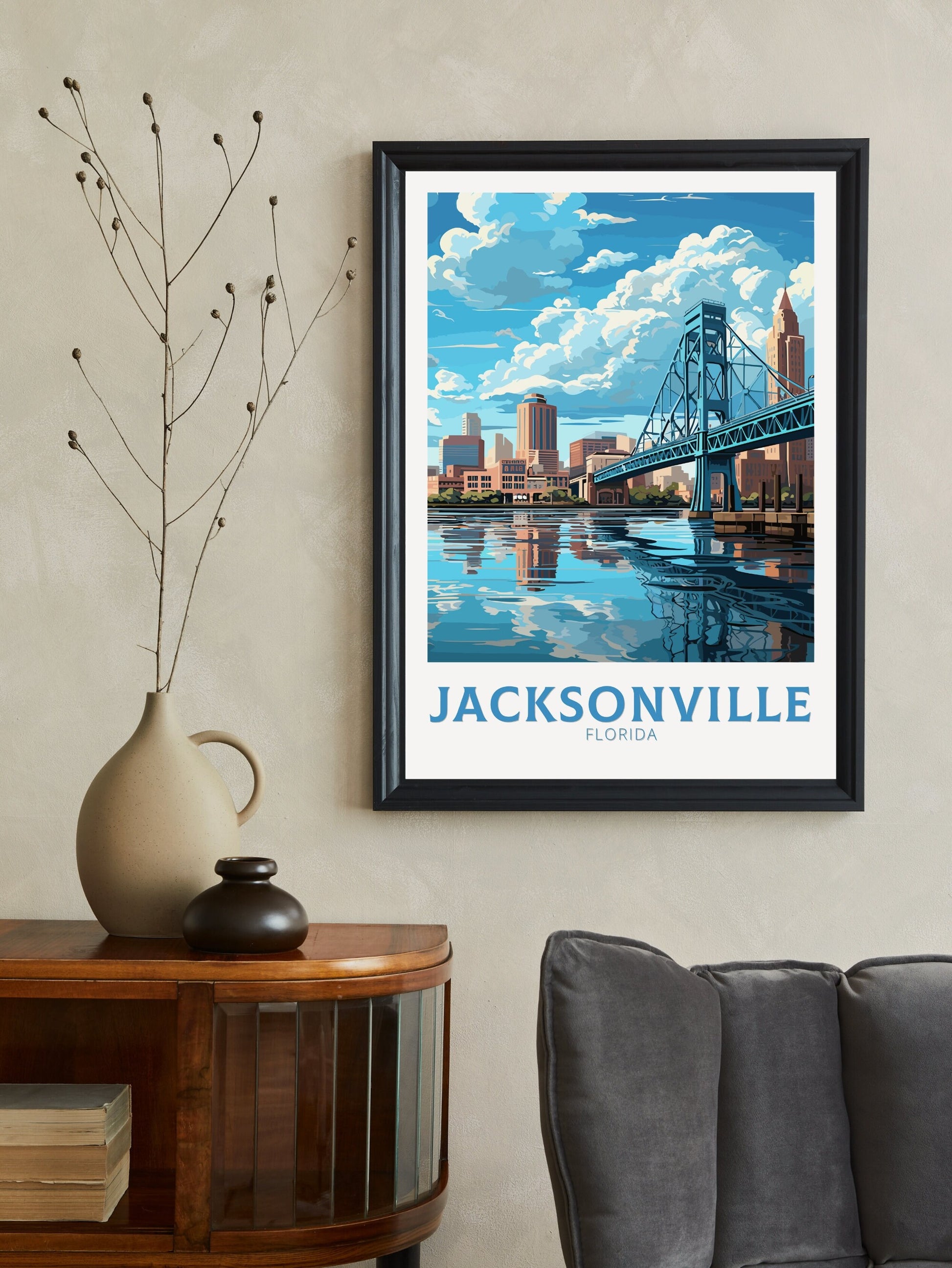 Capturez le charme vibrant de la plus grande ville de Floride avec notre affiche de voyage de Jacksonville . Cette œuvre d'art floridienne met en valeur la skyline emblématique de la ville, ses rives pittoresques et ses monuments culturels. Parfaite pour les voyageurs, les citadins et les amateurs de décoration d'intérieur inspirée de Jacksonville. Apportez une touche d'élégance et de dynamisme à votre salon, votre bureau ou votre mur de galerie.