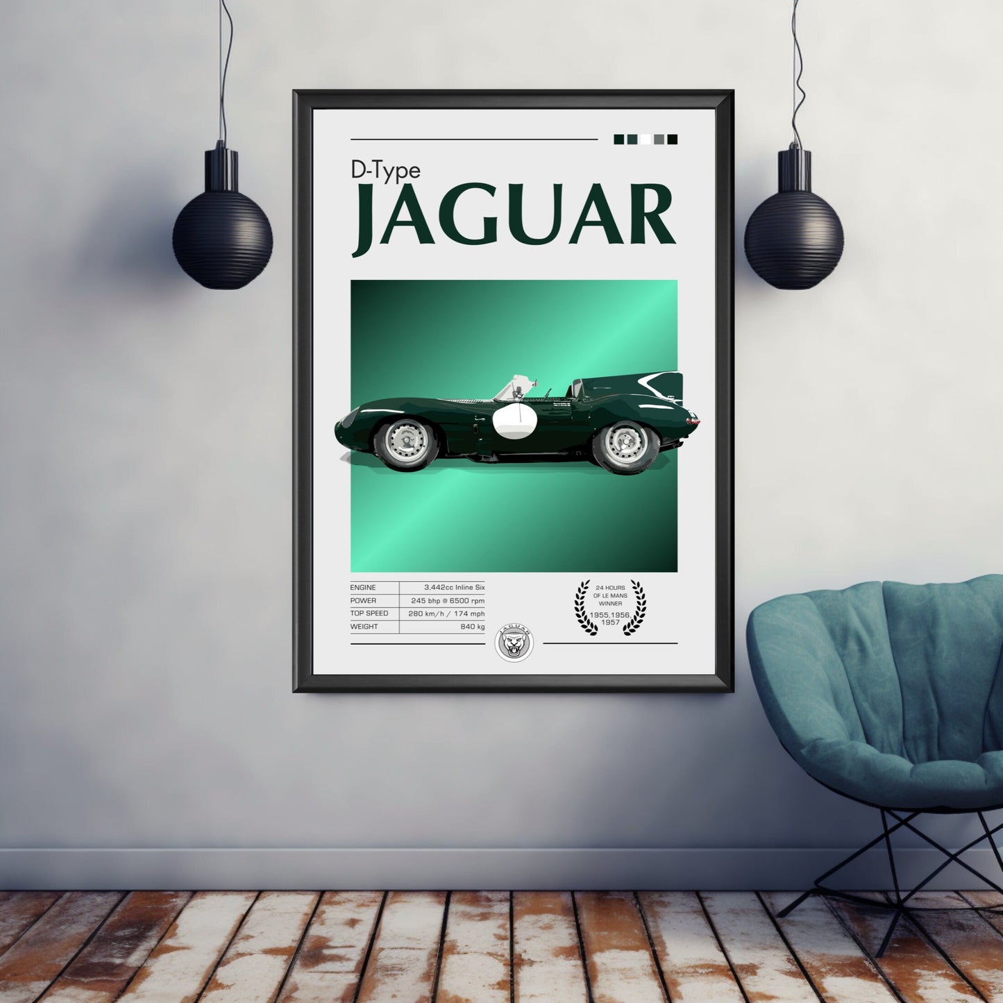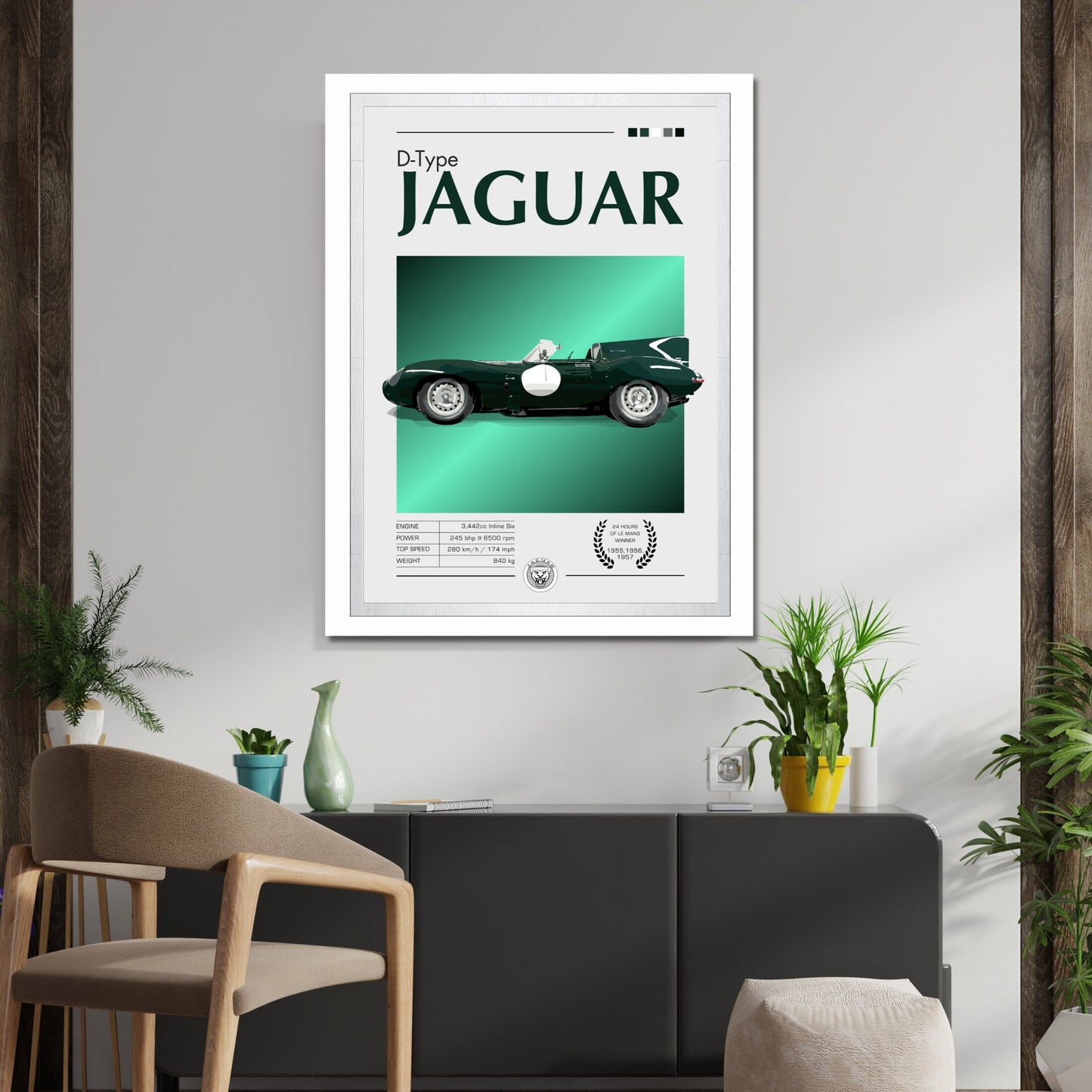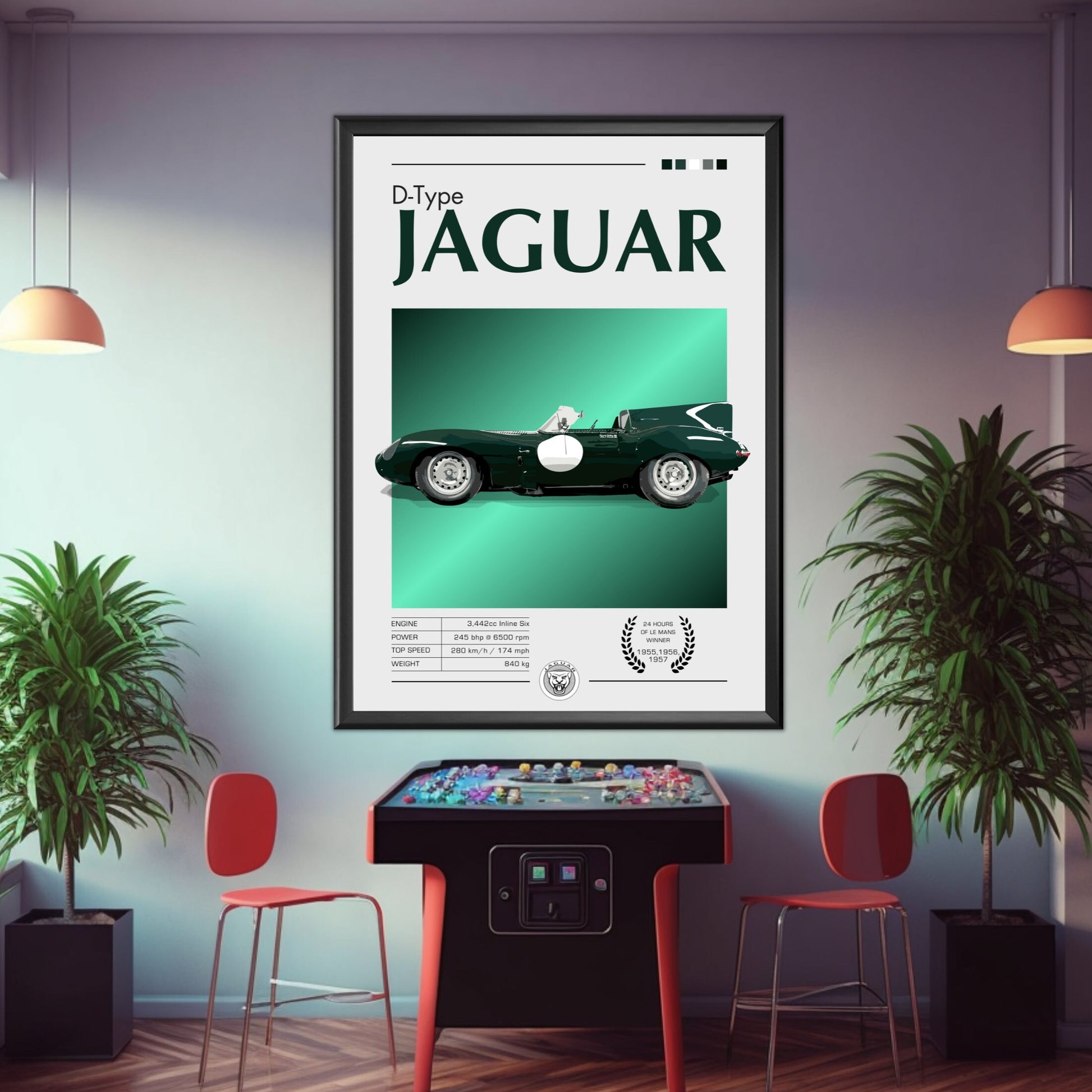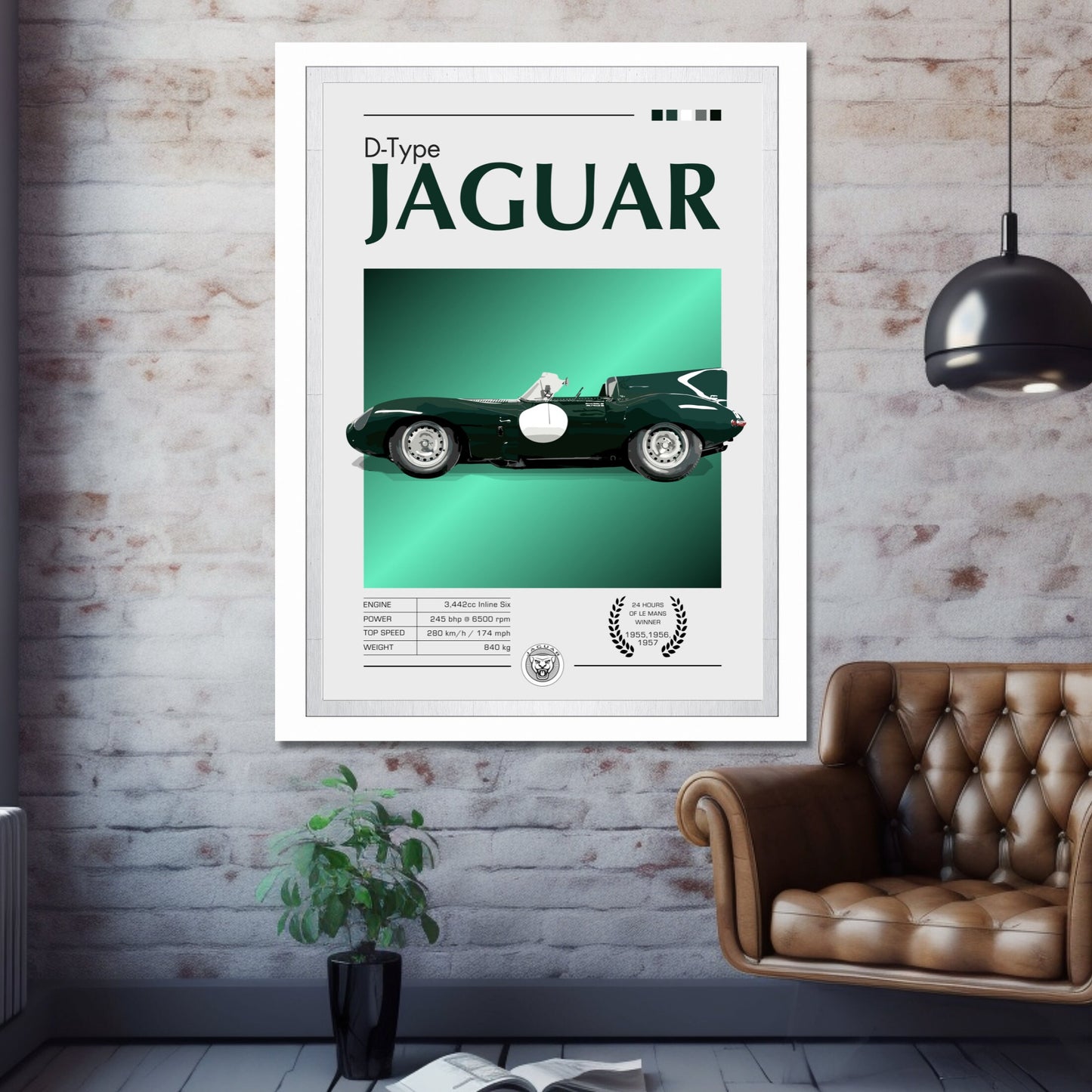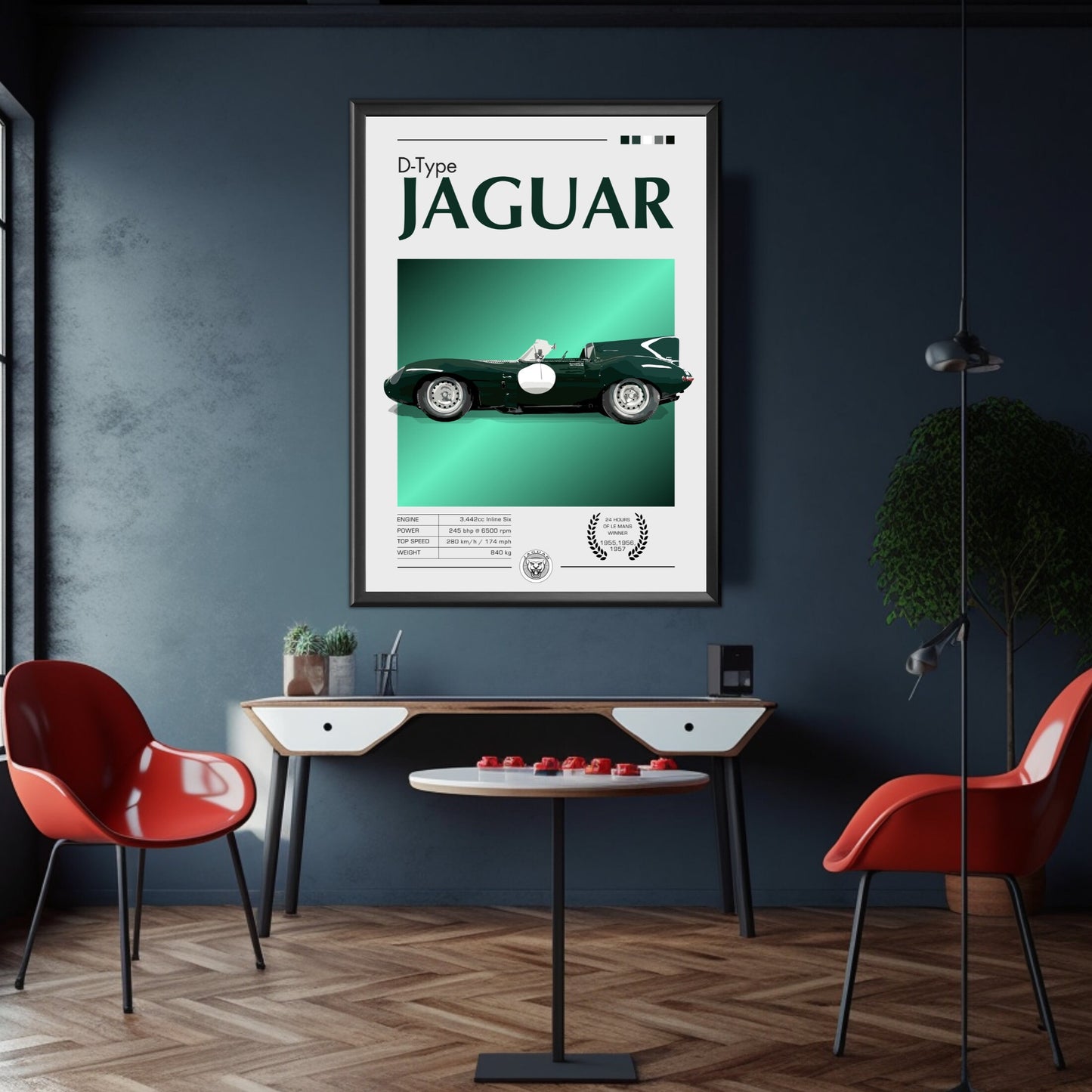 Affiche Jaguar D-Type – Décoration murale classique de voiture de course du Mans