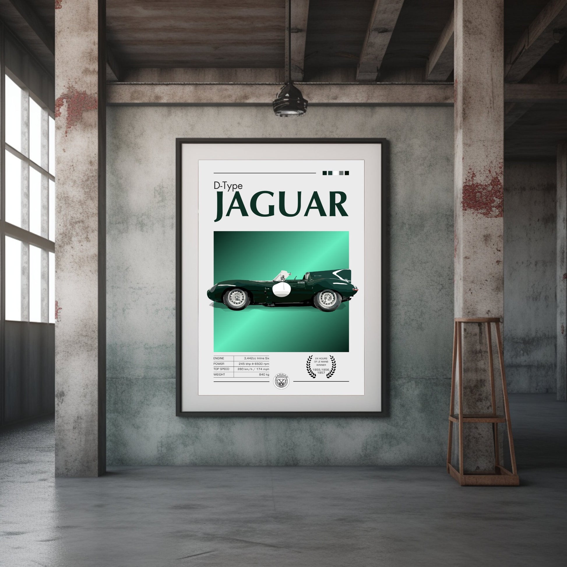 Célébrez l'une des plus légendaires voitures de course d'endurance avec l' affiche Jaguar D-Type – Décoration murale représentant une voiture de course classique du Mans . Célèbre pour son design aérodynamique et ses victoires au Mans dans les années 1950, la Jaguar D-Type demeure une icône du sport automobile vintage, de l'histoire de la course et de l'excellence automobile britannique . Cette affiche est idéale pour les passionnés de voitures anciennes, les fans de Jaguar et les collectionneurs d'art automobile .