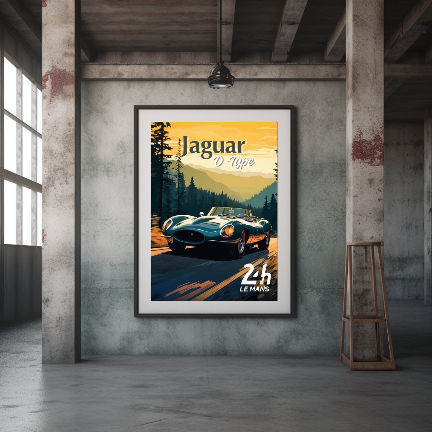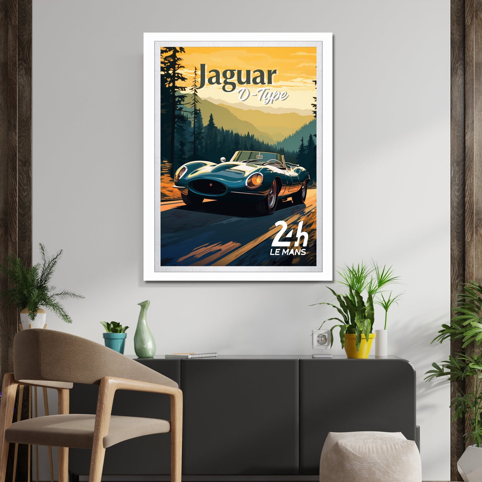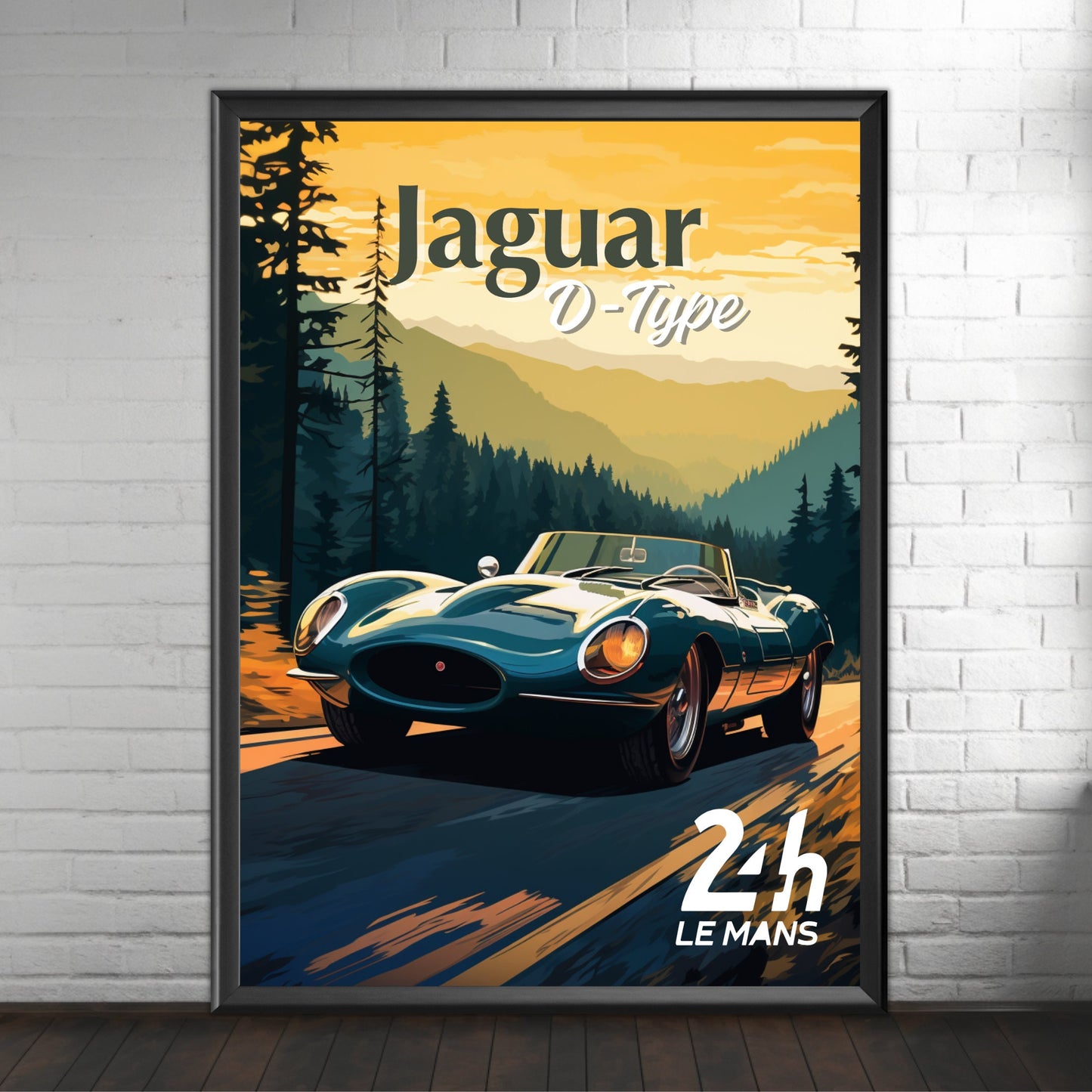 Affiche Jaguar D-Type – Impression d'art mural du vainqueur du Mans des années 1950