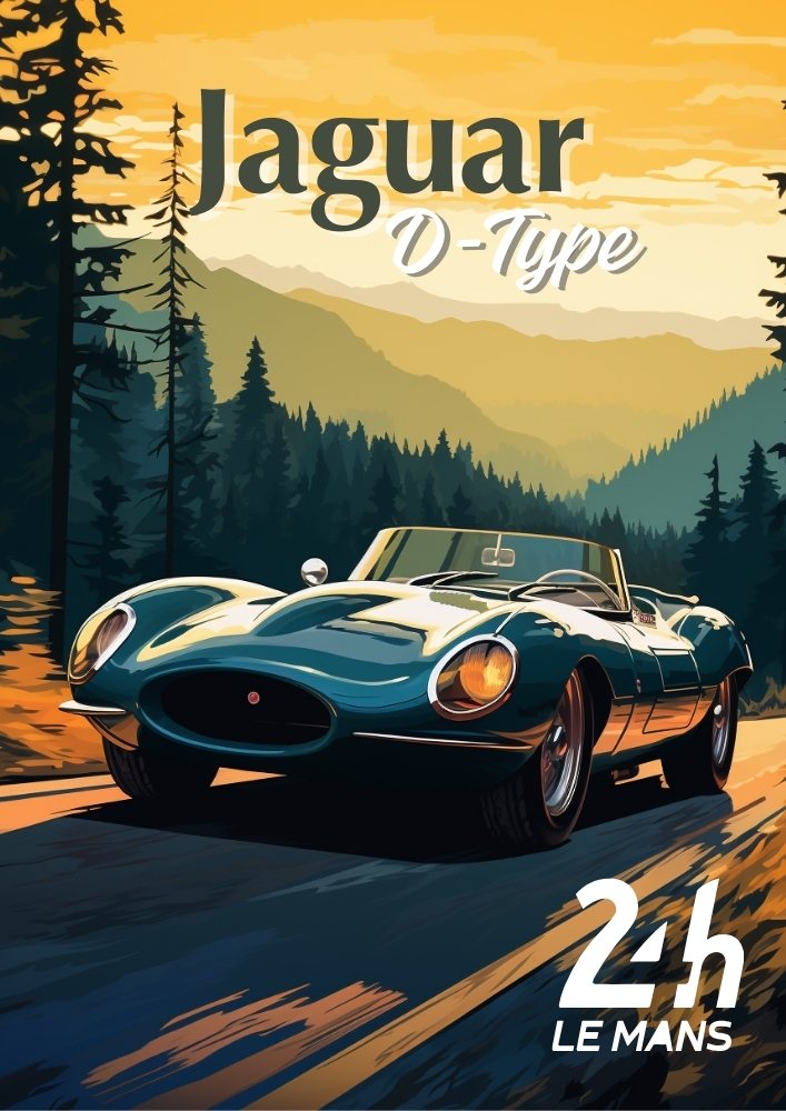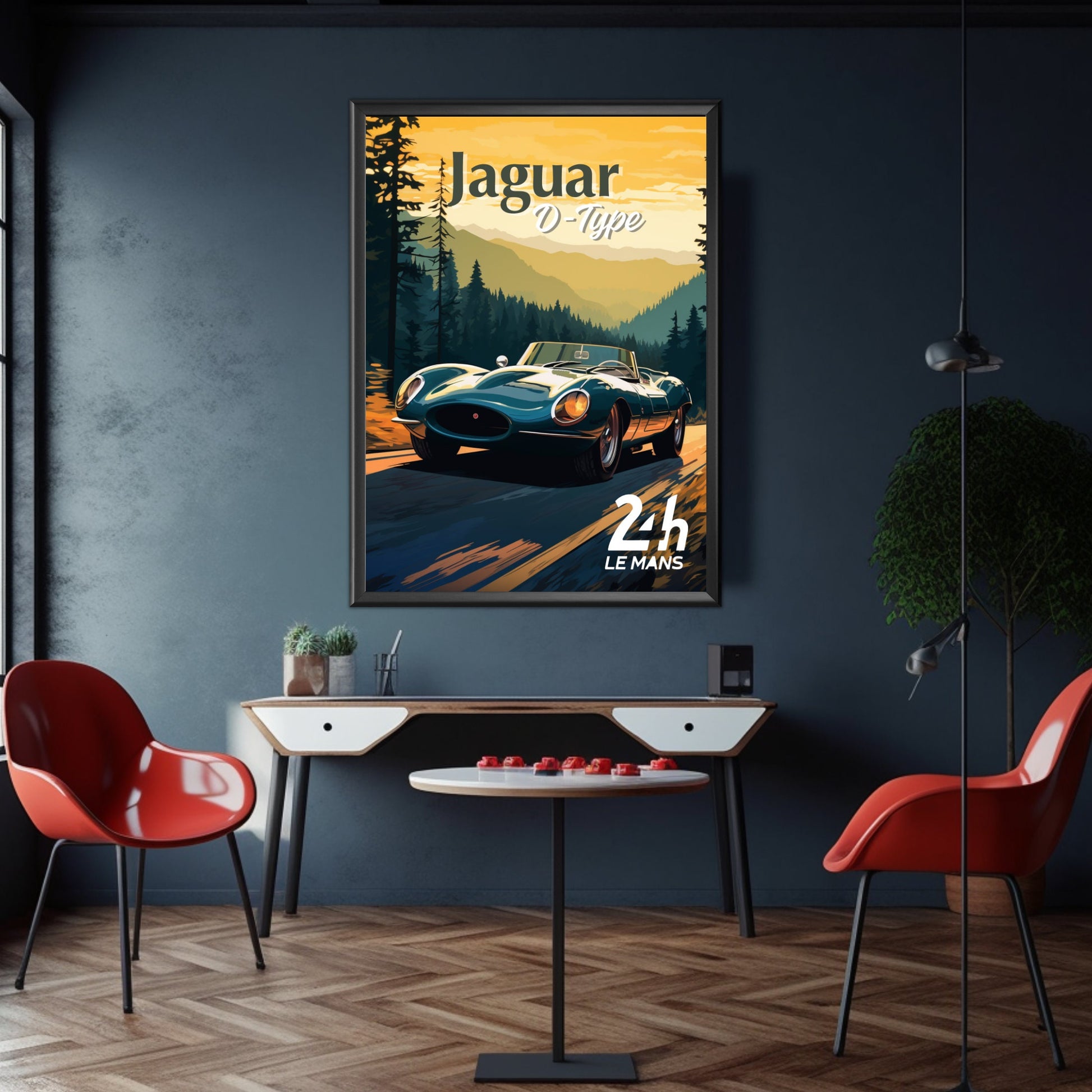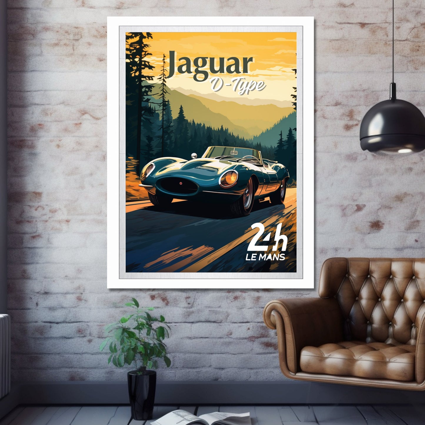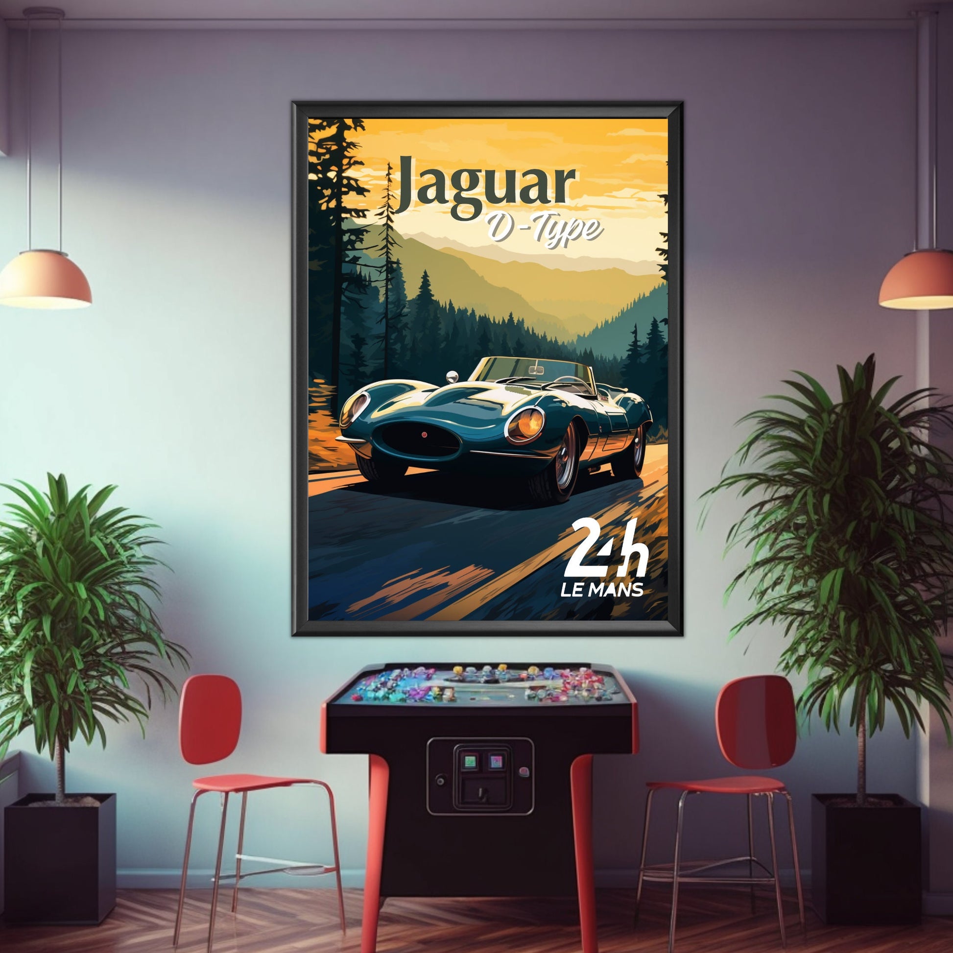 Affiche Jaguar D-Type – Impression d'art mural du vainqueur du Mans des années 1950
