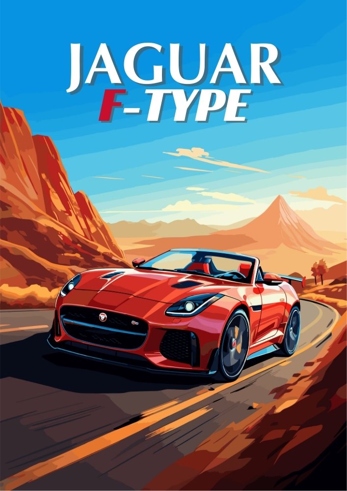 Affiche Jaguar F-Type – Affiche murale de voiture de sport britannique moderne
