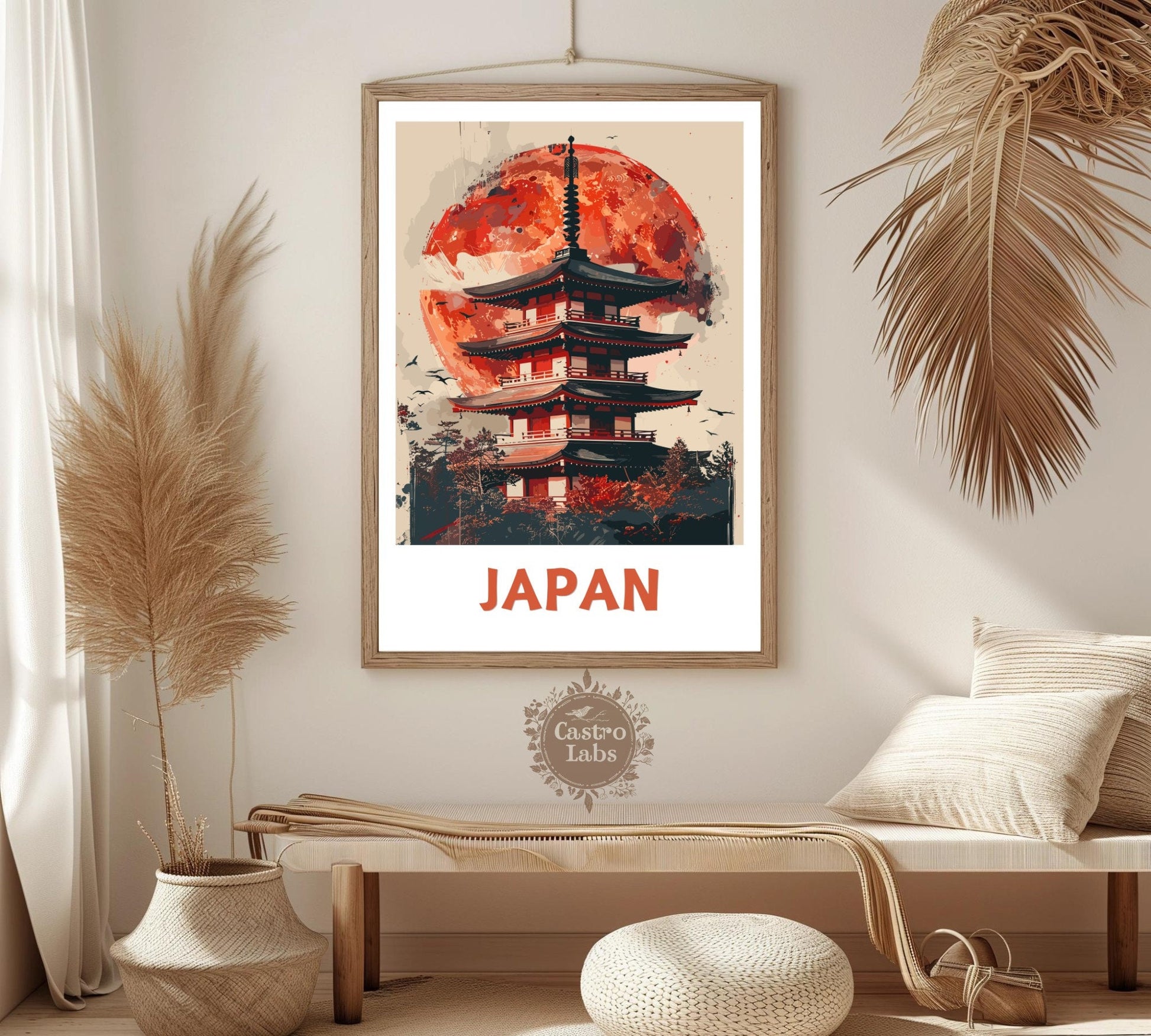 Cette œuvre mêle des roses tendres et des verts profonds à l'essence paisible de la culture japonaise, capturant la grâce intemporelle du temple dans un style saisissant. Imprimée sur un papier de qualité supérieure, elle offre une vivacité durable et un fini lisse, ce qui en fait un cadeau idéal pour les explorateurs ou les collectionneurs d'art. Cette affiche japonaise apporte une touche d'élégance zen à tous vos murs.