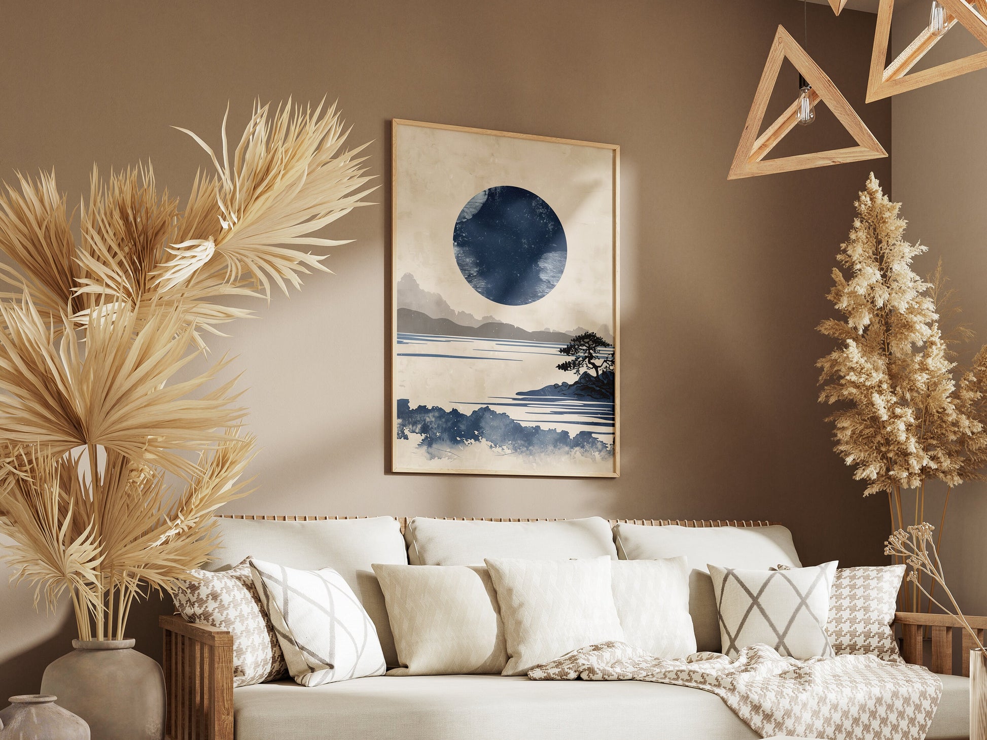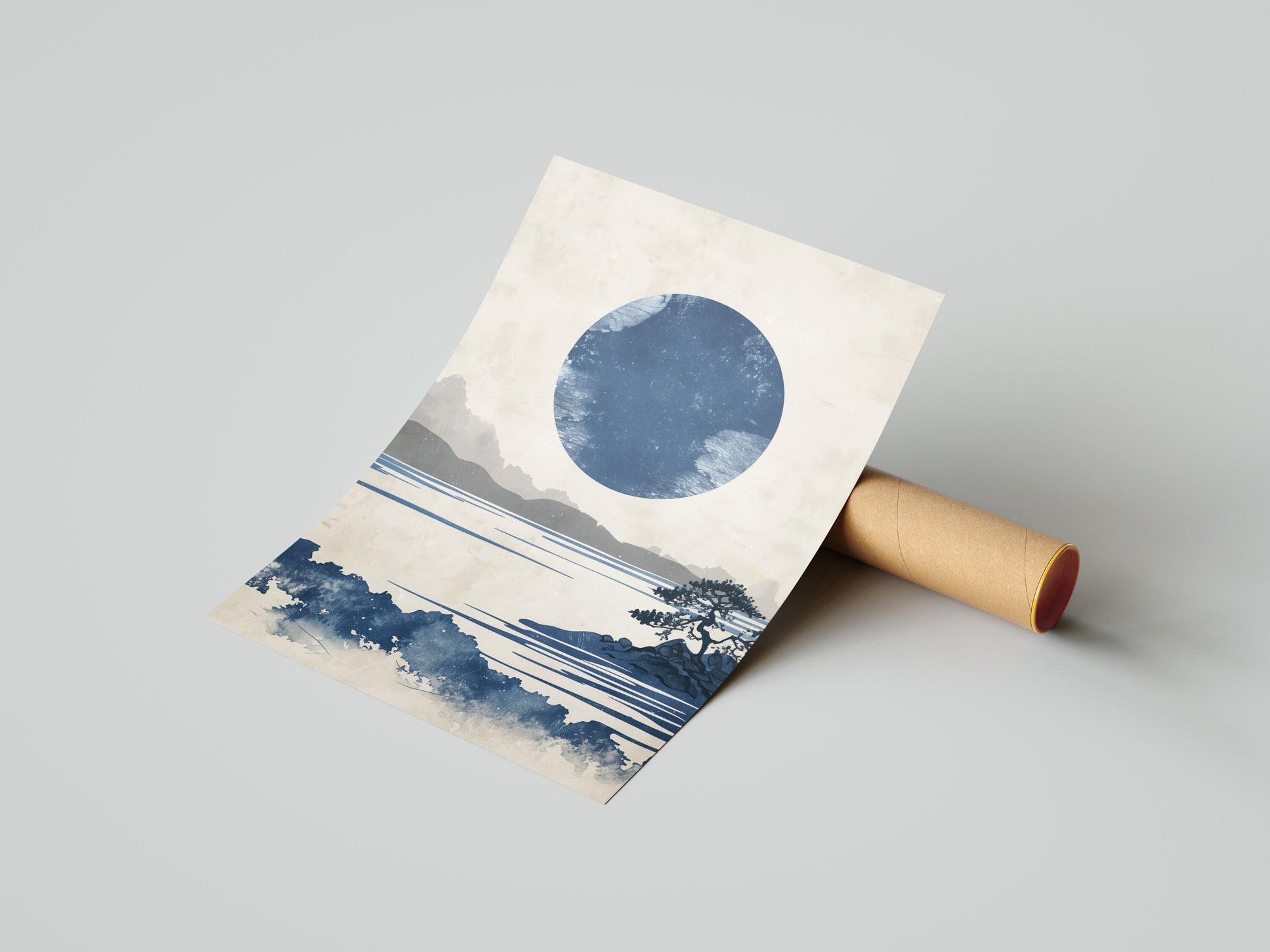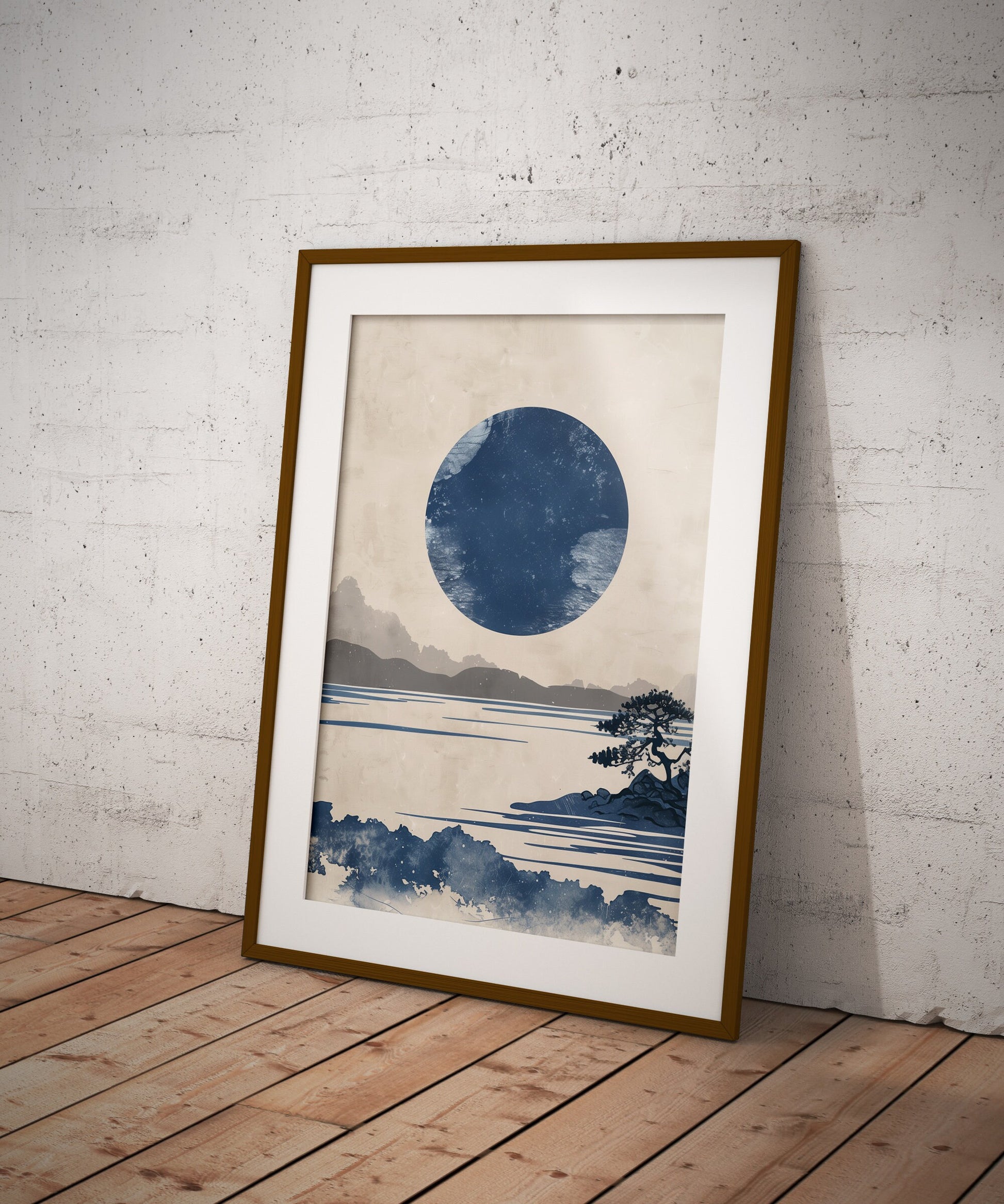 Capturez l'élégance de l'esthétique japonaise traditionnelle avec cette estampe japonaise Soleil bleu foncé . Inspirée du style classique ukiyo-e, cette œuvre représente un soleil indigo profond, symbole de mystère, d'harmonie et de beauté intemporelle.