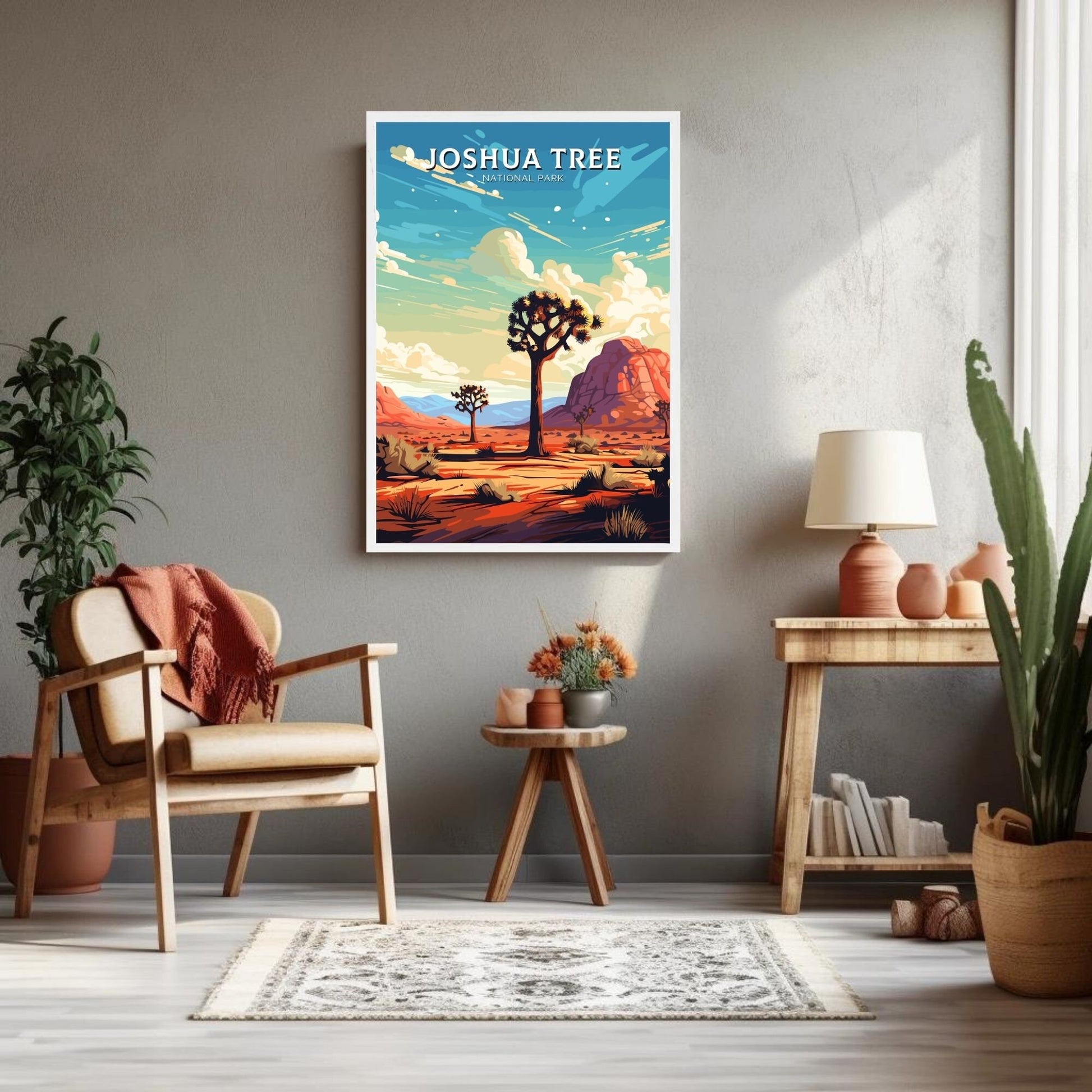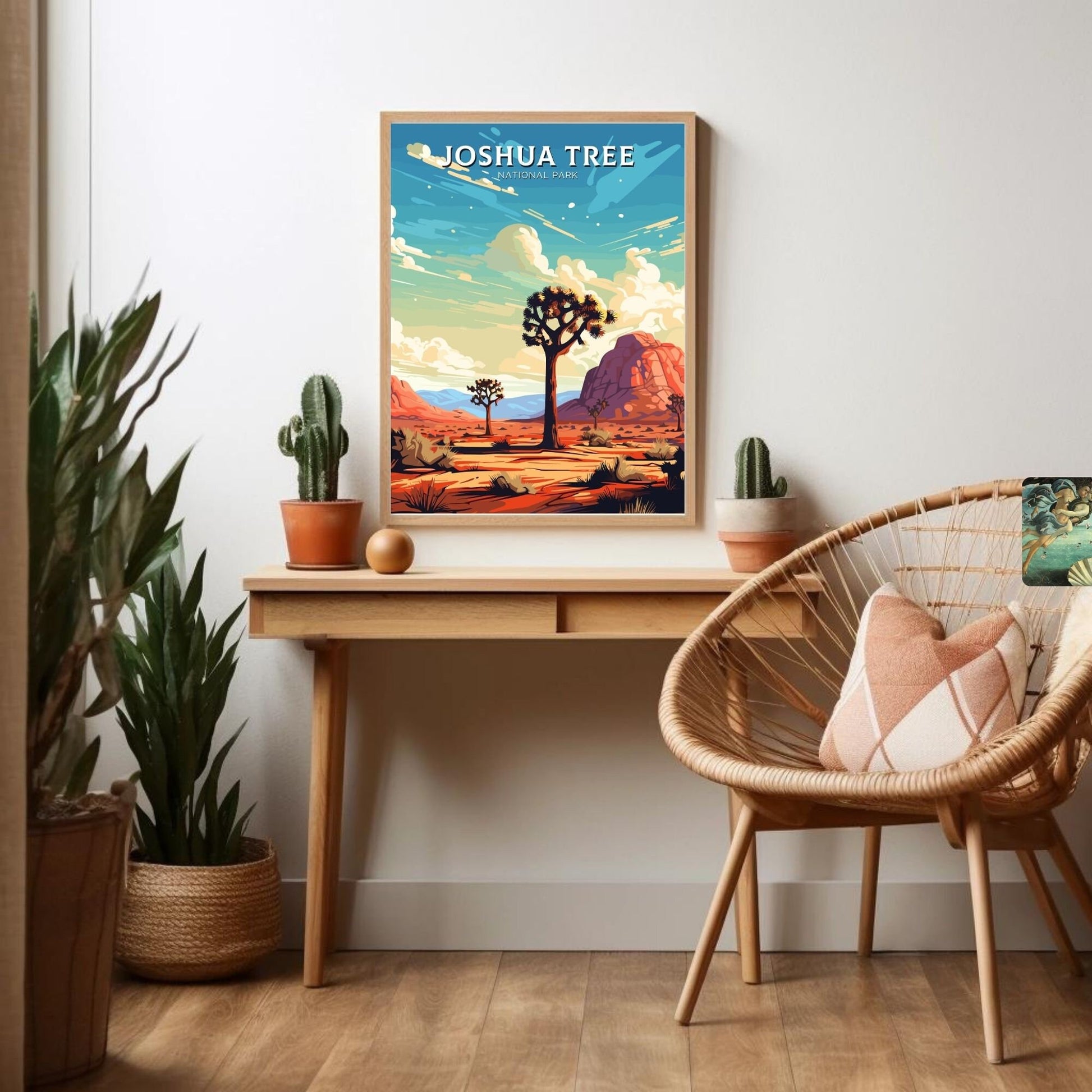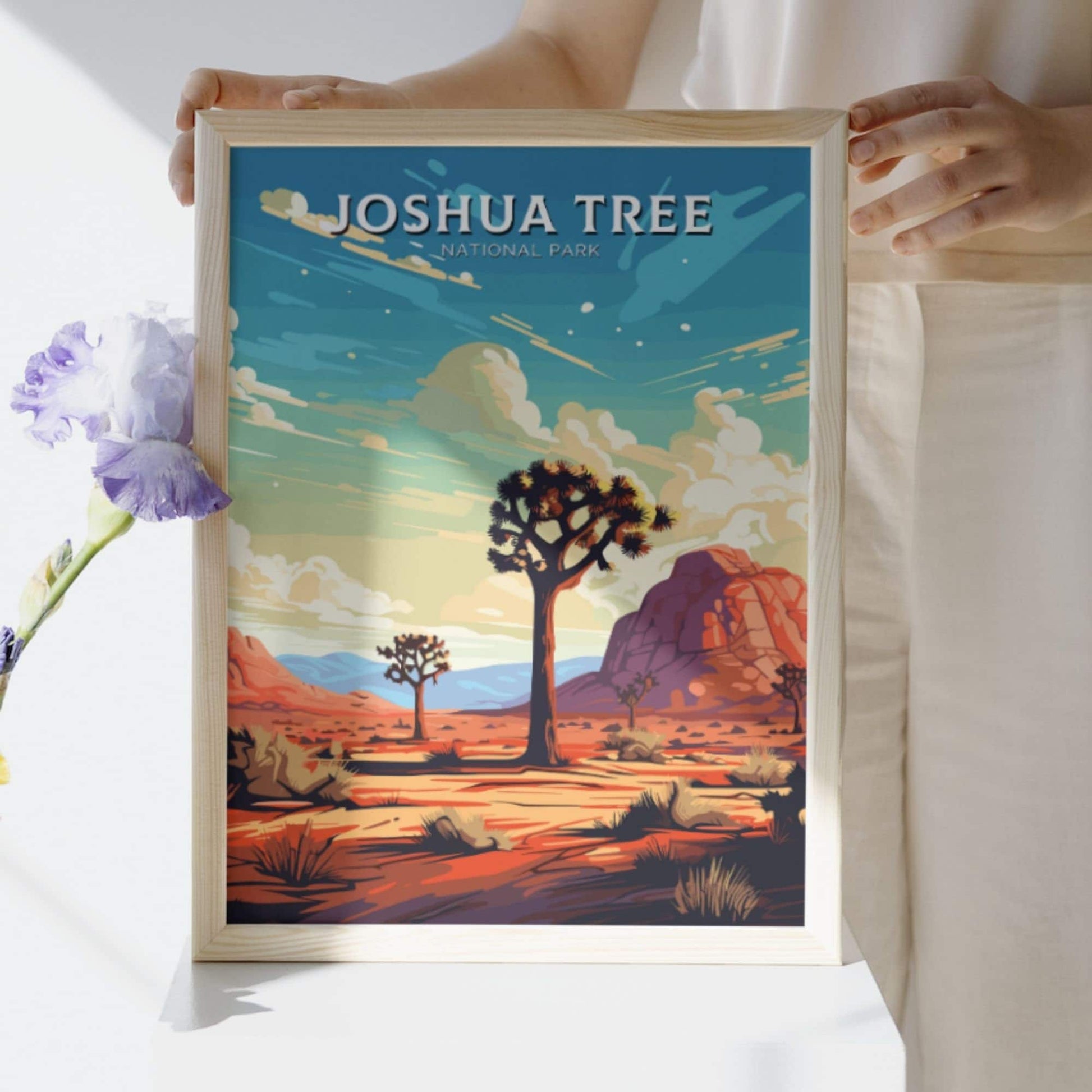 Disponible en téléchargement numérique et en tirage physique premium , cette affiche de voyage du parc national de Joshua Tree est disponible en plusieurs formats, du format standard de la série A aux grands formats 76 x 102 cm. Imprimée sur un papier de haute qualité aux couleurs vives et aux détails précis, elle est idéale pour décorer votre intérieur ou pour offrir à toute personne inspirée par la beauté du désert californien.