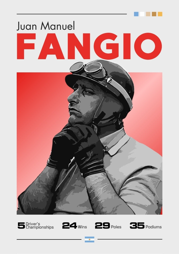Affiche F1 de Juan Manuel Fangio – Art du quintuple champion du monde