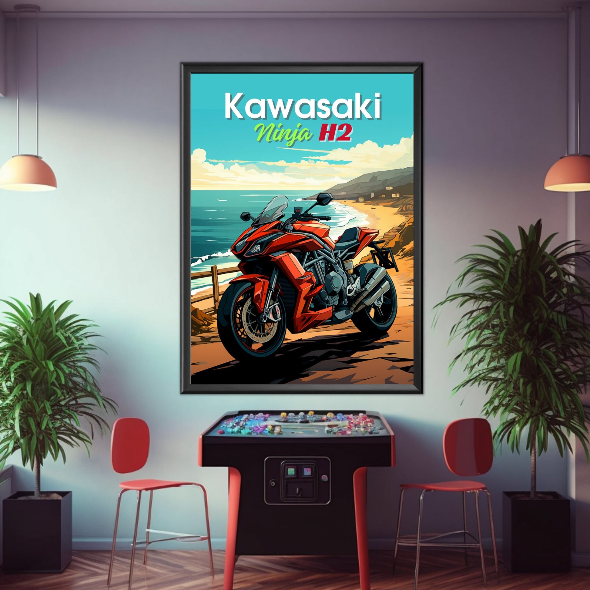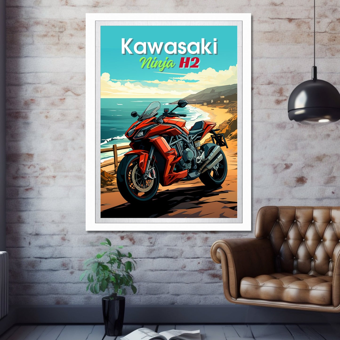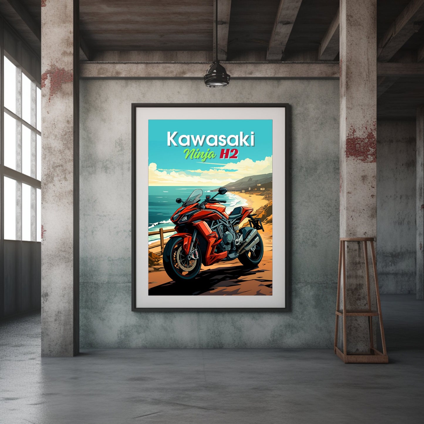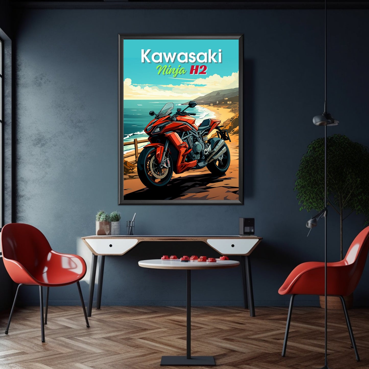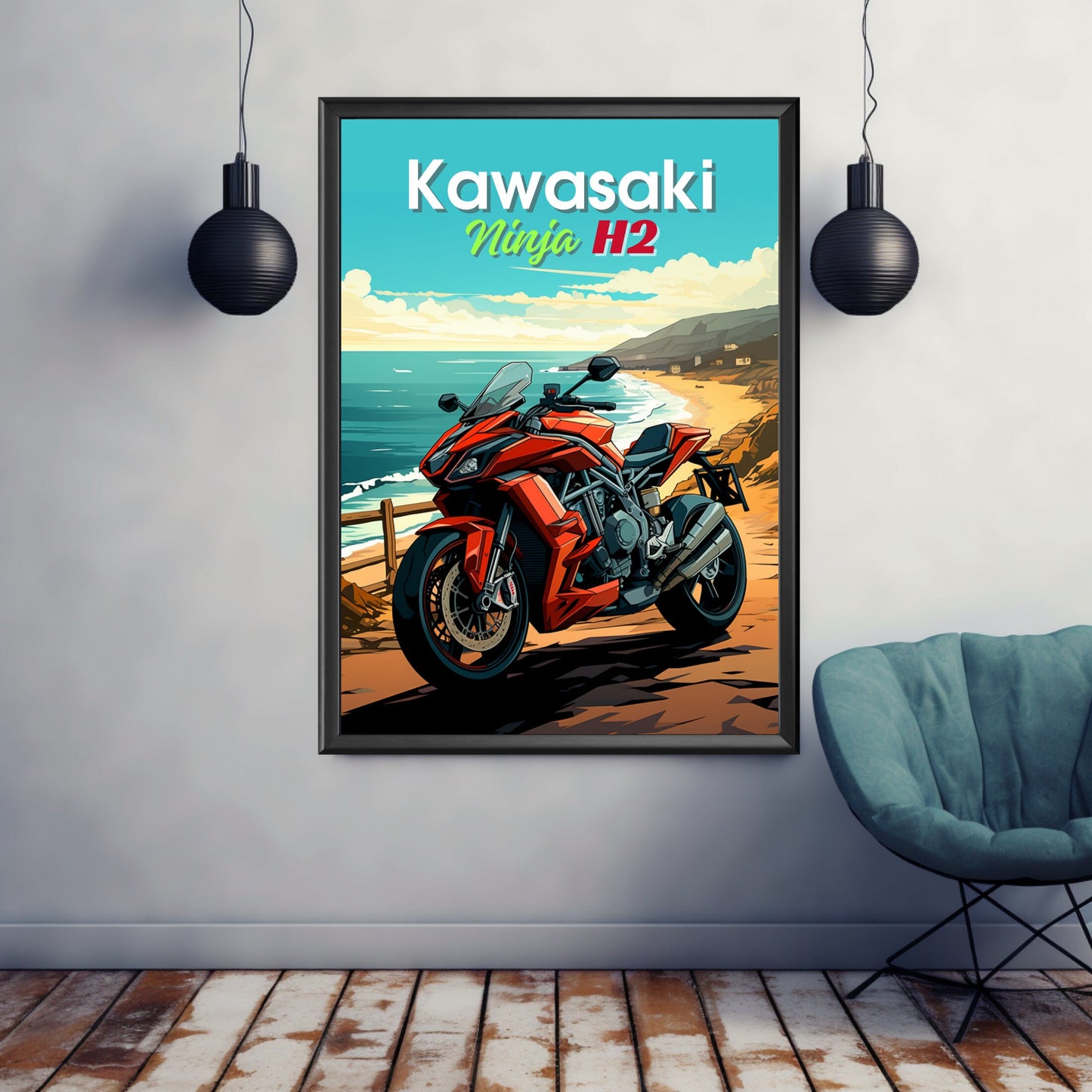 Affiche Kawasaki Ninja H2 – Décoration murale moto Hyperbike
