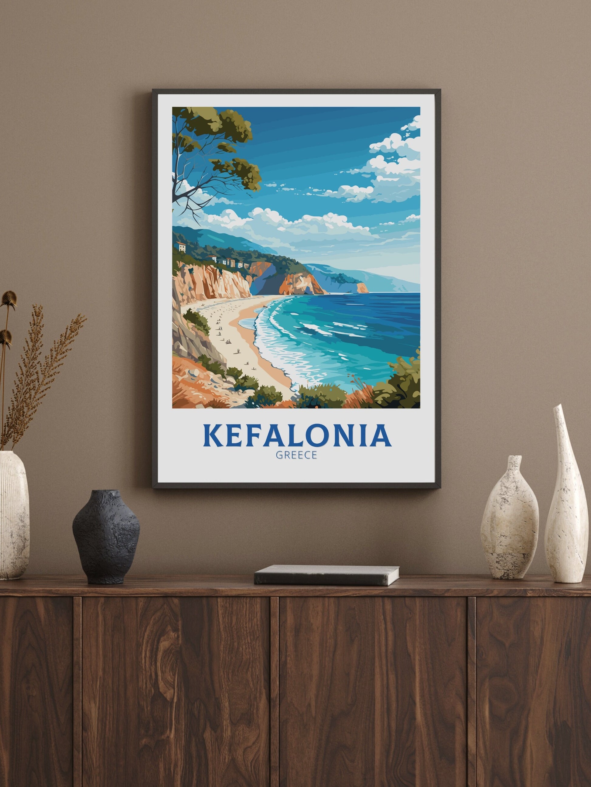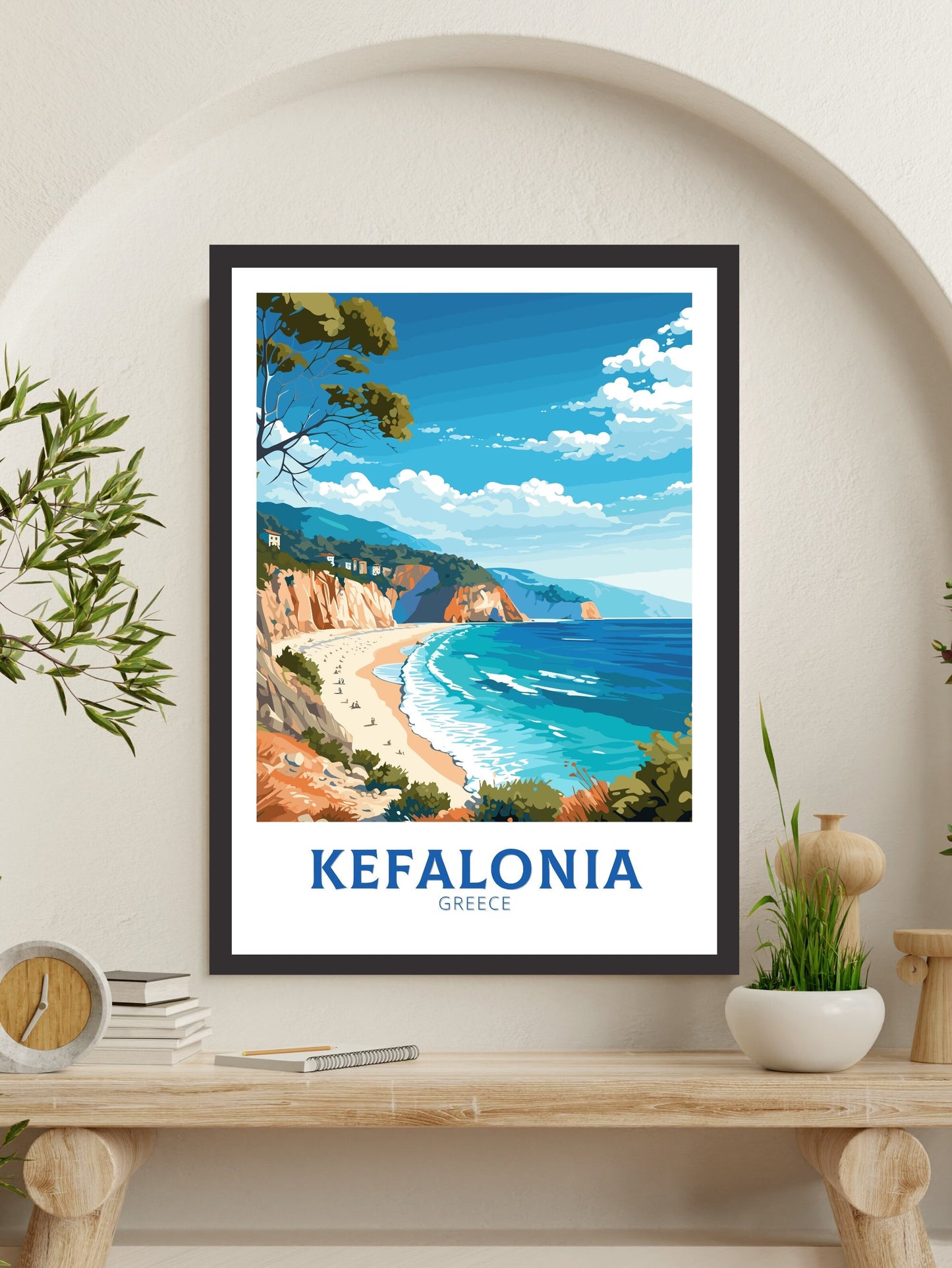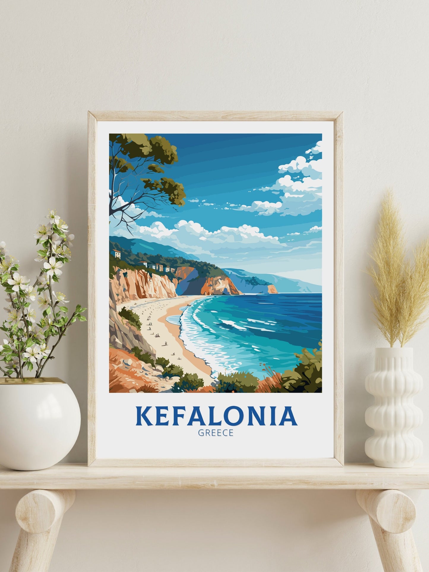 Célébrez les paysages époustouflants de la mer Ionienne avec notre affiche de voyage de Céphalonie , une œuvre d'art grecque vibrante immortalisant les eaux cristallines, les falaises impressionnantes et les charmants villages de l'île. Cette affiche incarne parfaitement la beauté sereine et le charme méditerranéen qui font de Céphalonie une destination de choix pour les amoureux de voyages et de paysages côtiers grecs .