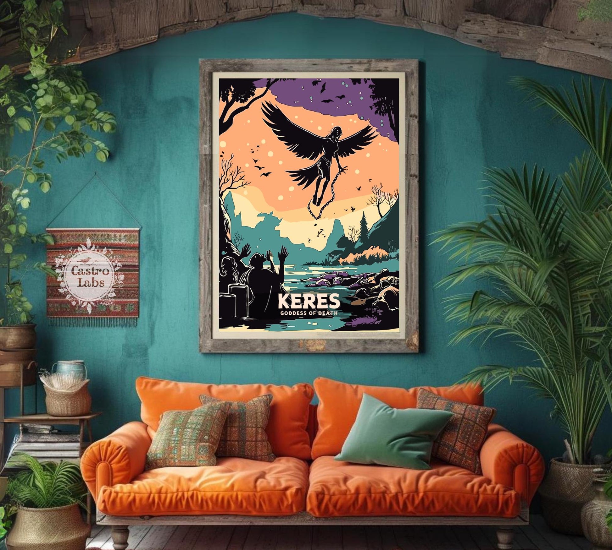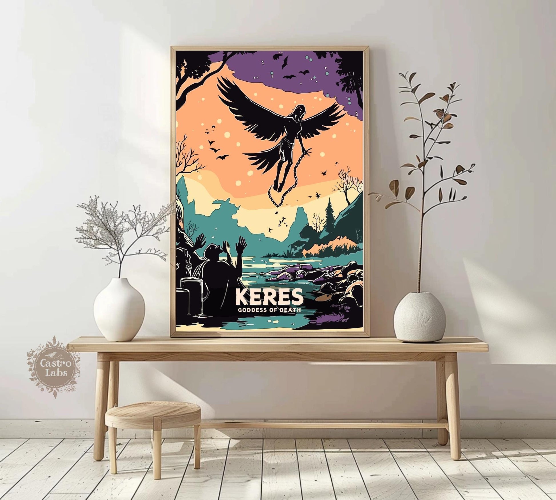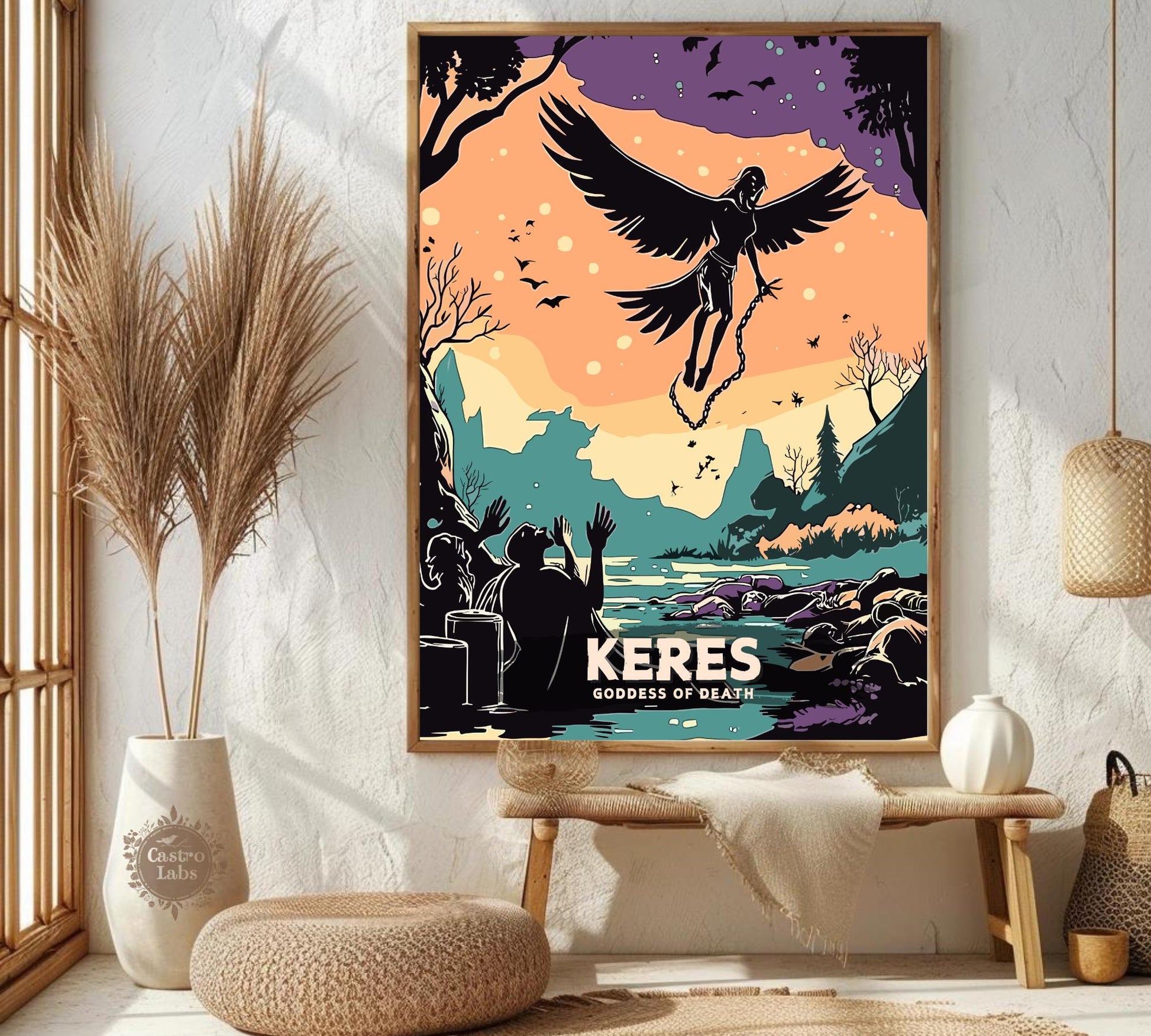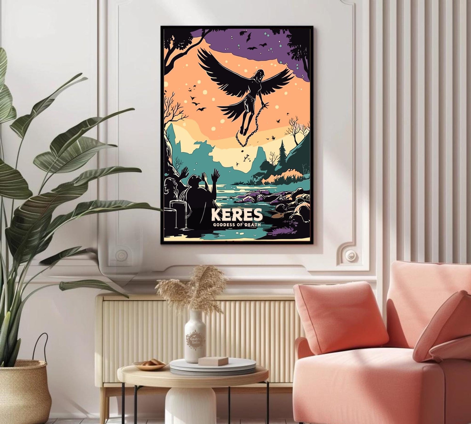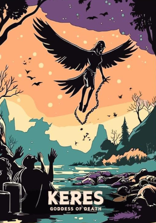 Que vous soyez amateur de mythologie grecque, collectionneur d'art légendaire ou à la recherche d'une décoration originale inspirée d'un récit mythique, l' affiche Keres, déesse de la mort, est un incontournable. Son design captivant, sa richesse symbolique et son charme intemporel en font un ajout remarquable à n'importe quel mur.
