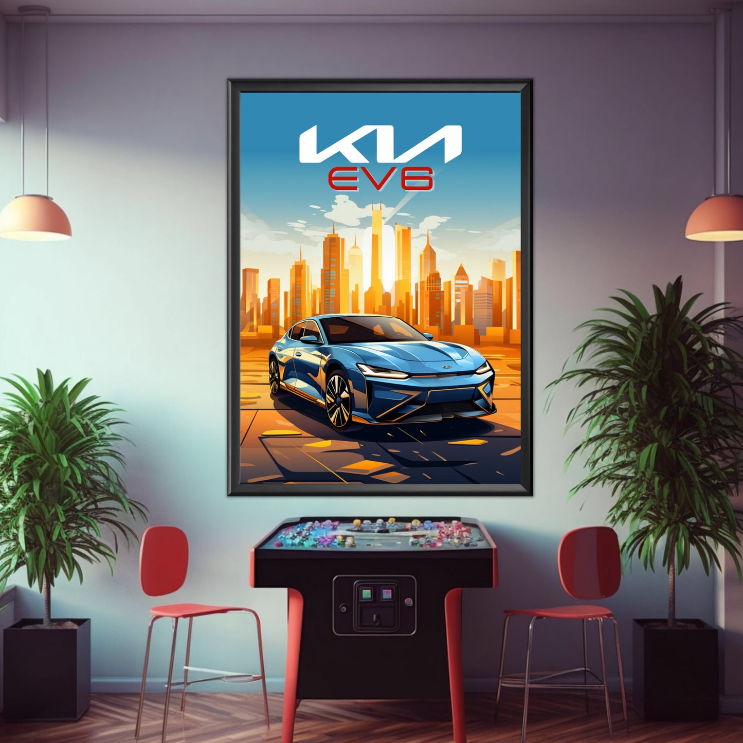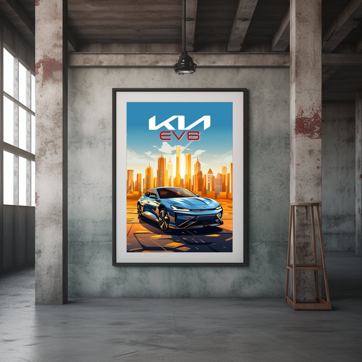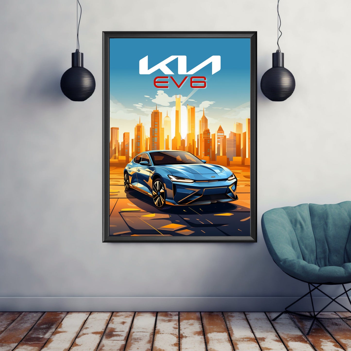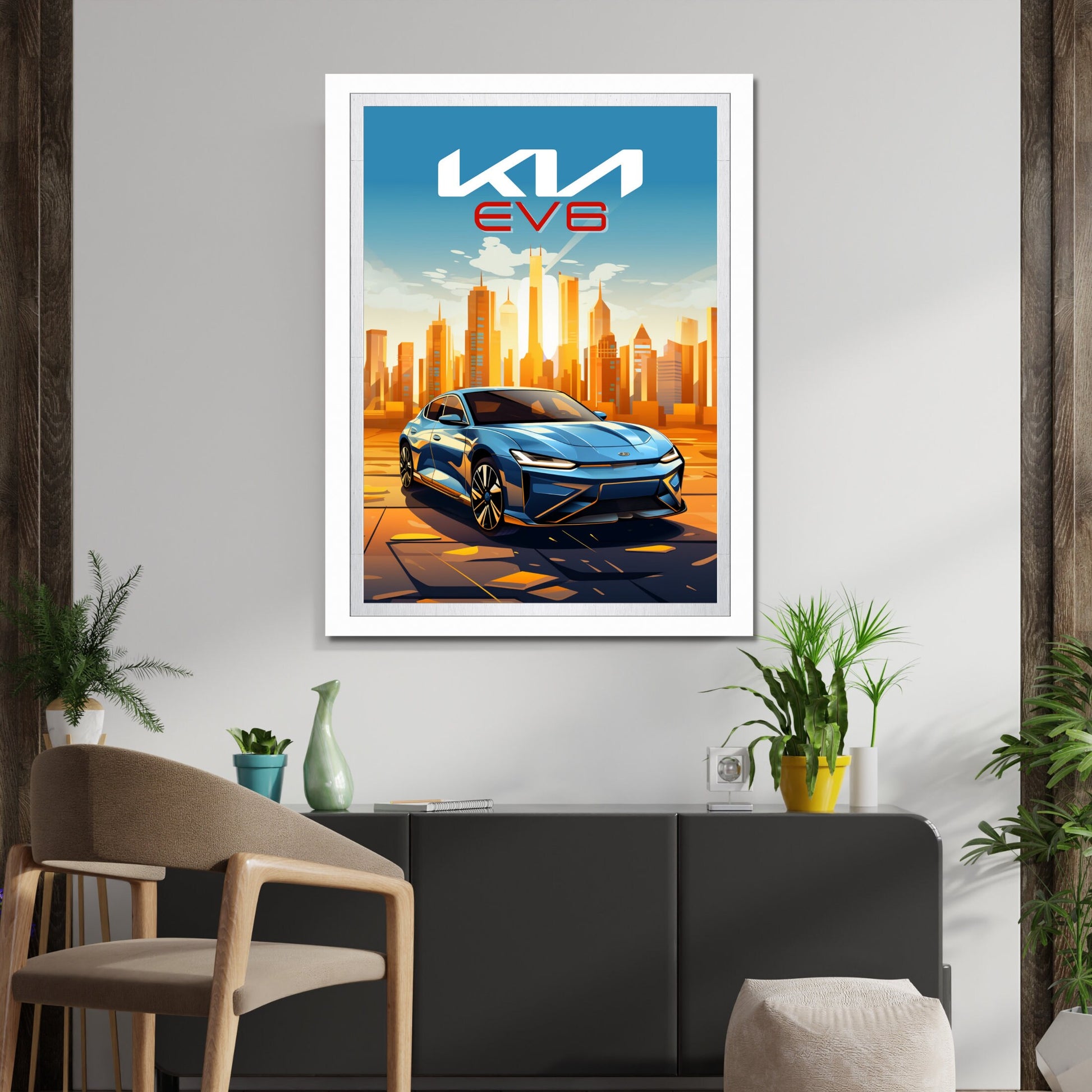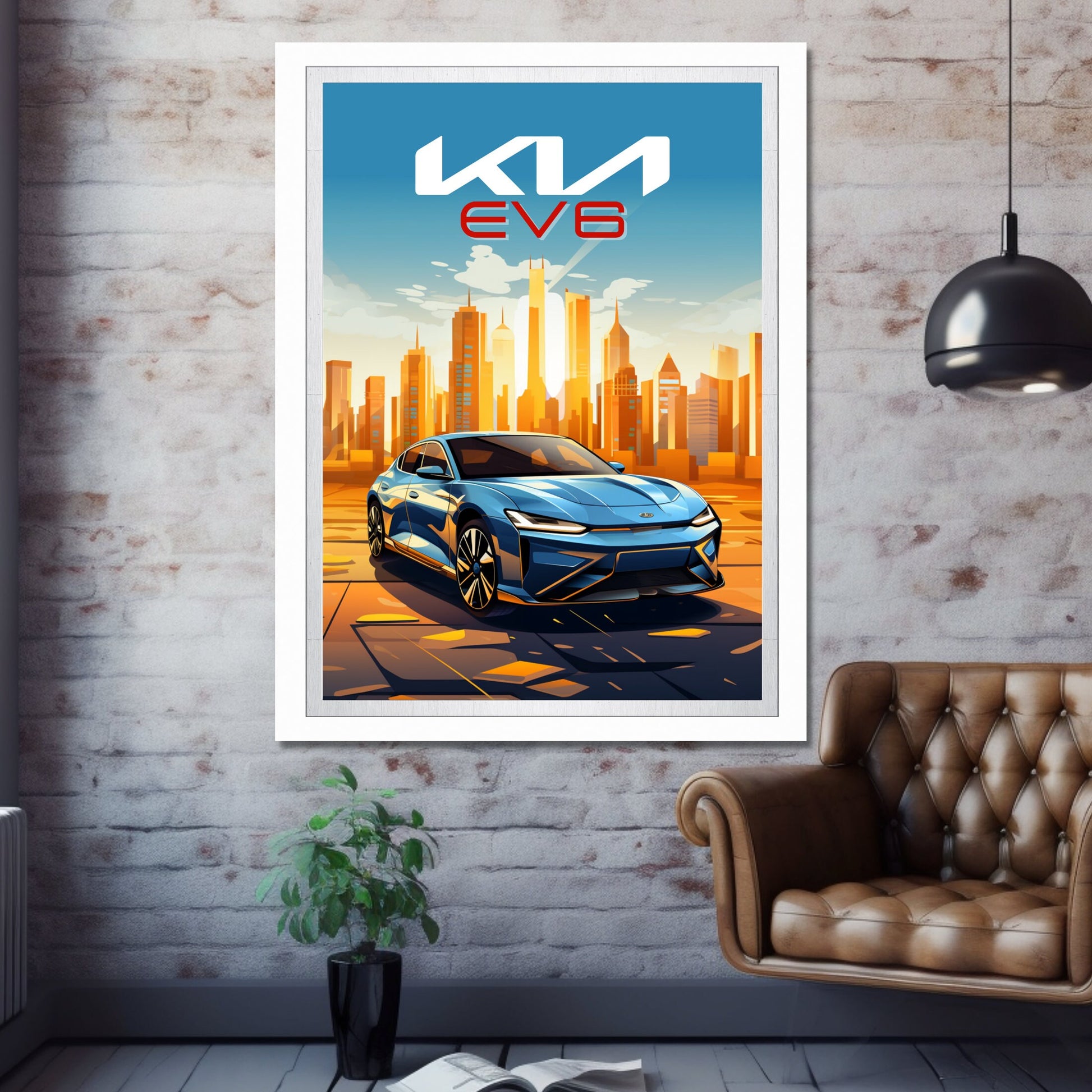 Affiche Kia EV6 – Impression d'art mural moderne représentant une voiture électrique Kia