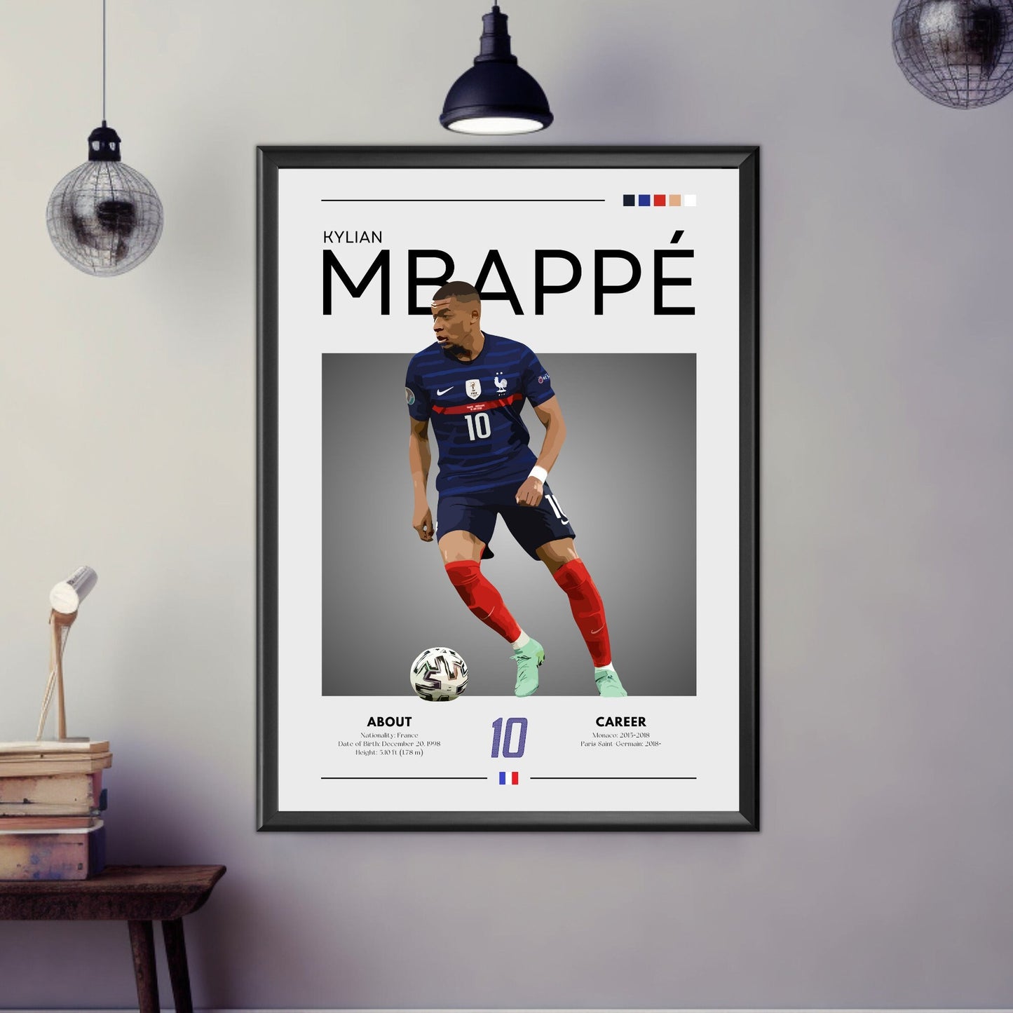 Imprimée sur des matériaux de haute qualité, avec des couleurs vives, des détails précis et une durabilité exceptionnelle, l' affiche Kylian Mbappé est idéale pour être encadrée ou accrochée au mur. Que vous soyez supporter de l'équipe de France, collectionneur d'œuvres d'art footballistiques ou supporter de talents de renommée mondiale, cette affiche célèbre la vitesse, la précision et les moments emblématiques de Mbappé sur le terrain. Sublimez votre maison, votre bureau ou votre pièce à thème sportif avec cette œuvre murale de collection sur le thème du football, un hommage à l'une des plus grandes stars du football.