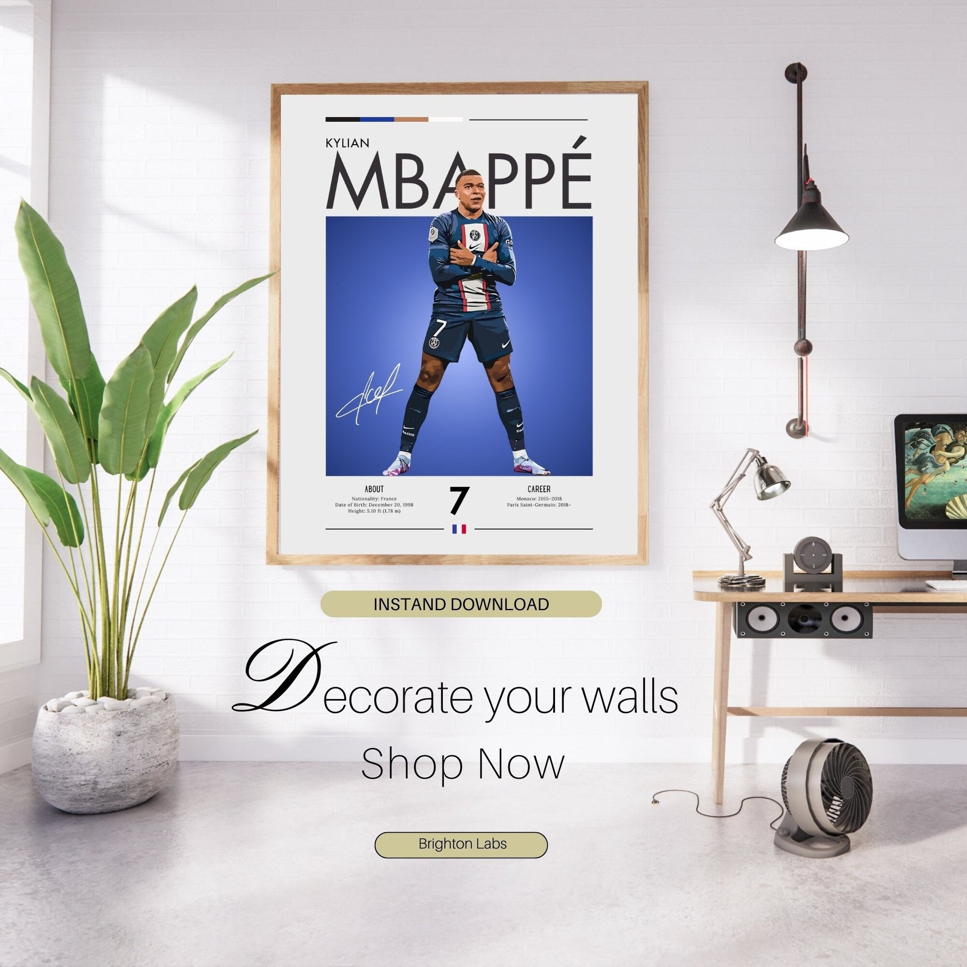 Imprimée sur des matériaux de haute qualité, avec des couleurs vives, des détails précis et une durabilité exceptionnelle, l' affiche Kylian Mbappé est idéale pour être encadrée ou accrochée au mur. Que vous soyez fan du PSG, collectionneur d'œuvres d'art de football d'élite ou supporter de talents de renommée mondiale, cette affiche célèbre la précision, la technique et les moments mémorables de Mbappé sur le terrain. Sublimez votre maison, votre bureau ou votre pièce à thème sportif avec cette œuvre d'art murale de collection sur le thème du football : un hommage parfait à Kylian Mbappé.