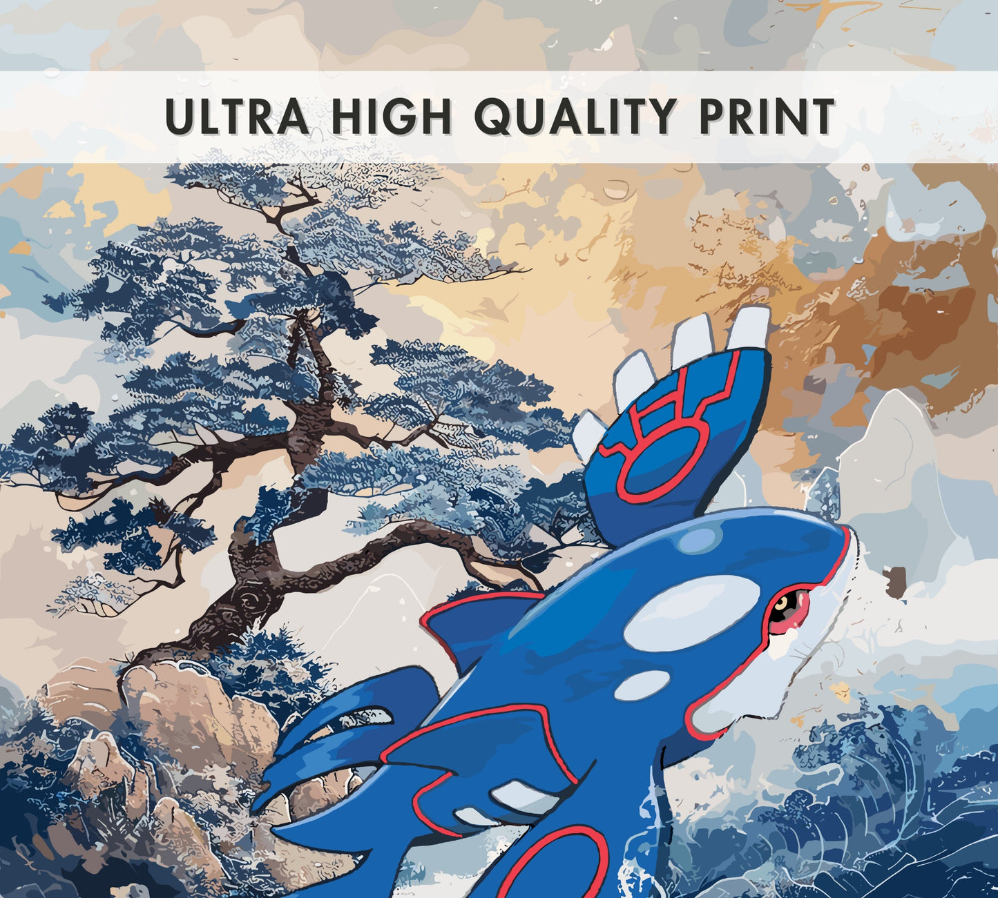 Libérez la puissance de l'océan avec cette affiche Pokémon Kyogre , conçue dans un style tapisserie japonaise époustouflant. Mettant en vedette le légendaire Pokémon de type Eau dans des motifs de vagues audacieux et s'inspirant de l'art japonais traditionnel, cette œuvre capture la puissance et l'élégance intemporelles de Kyogre.