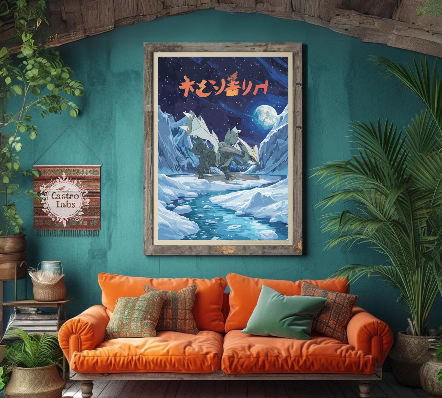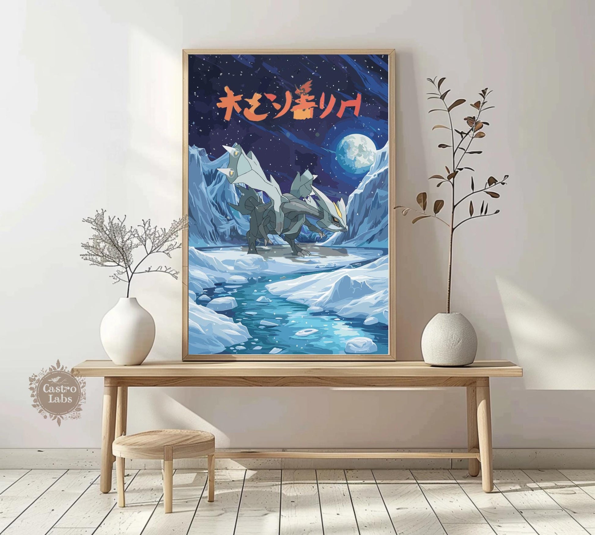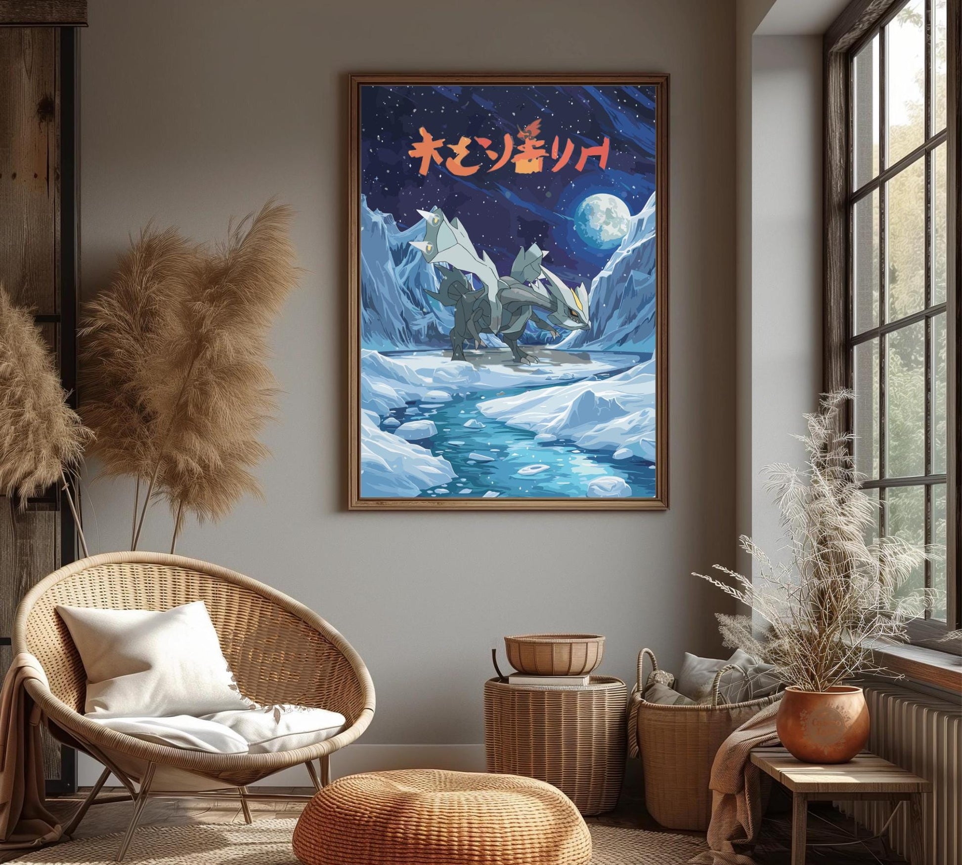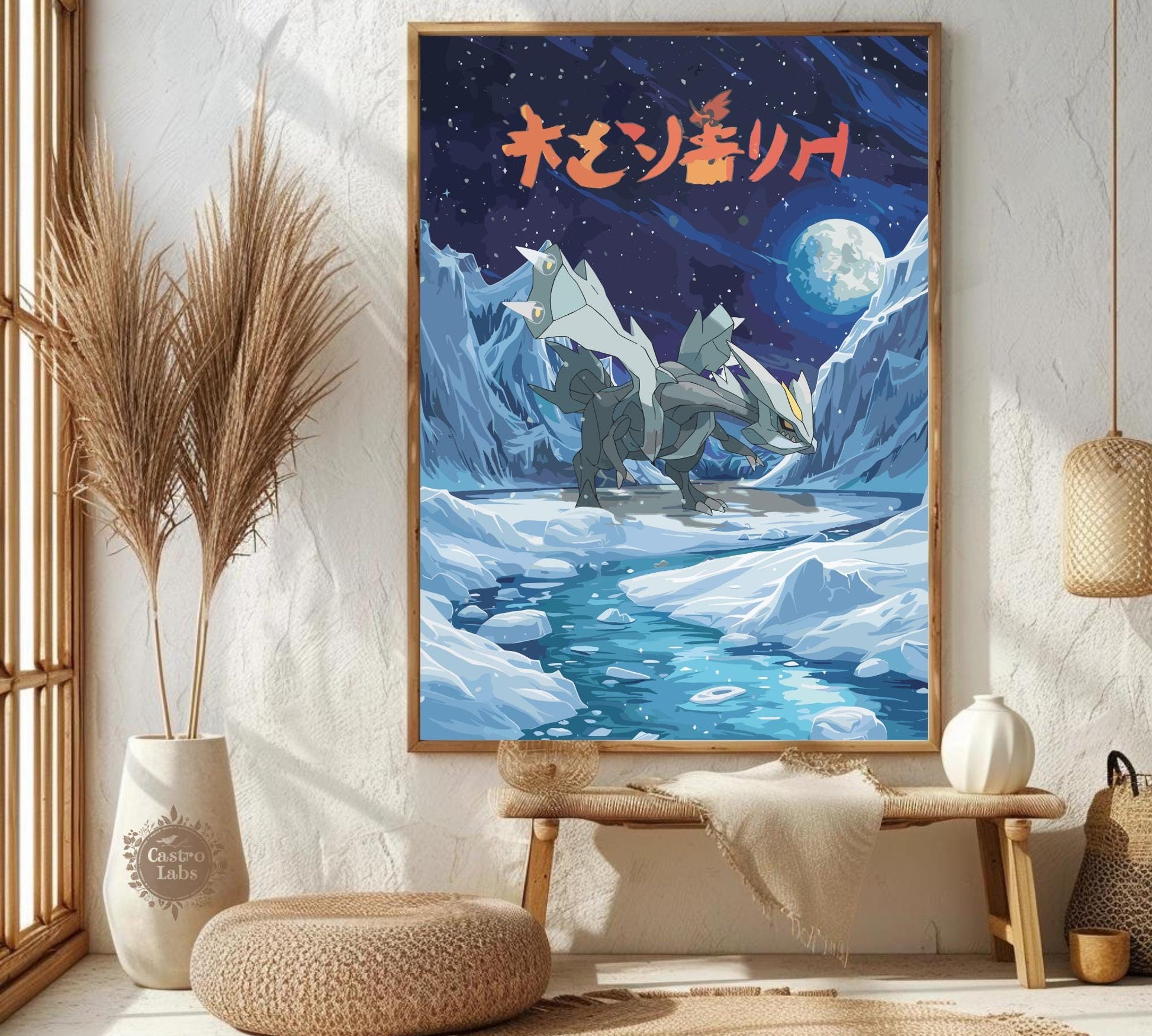 Apportez la légende gelée à vos murs avec cette affiche d'illustration d'anime Kyurem de style japonais - un incontournable pour les collectionneurs et les passionnés de Pokémon.