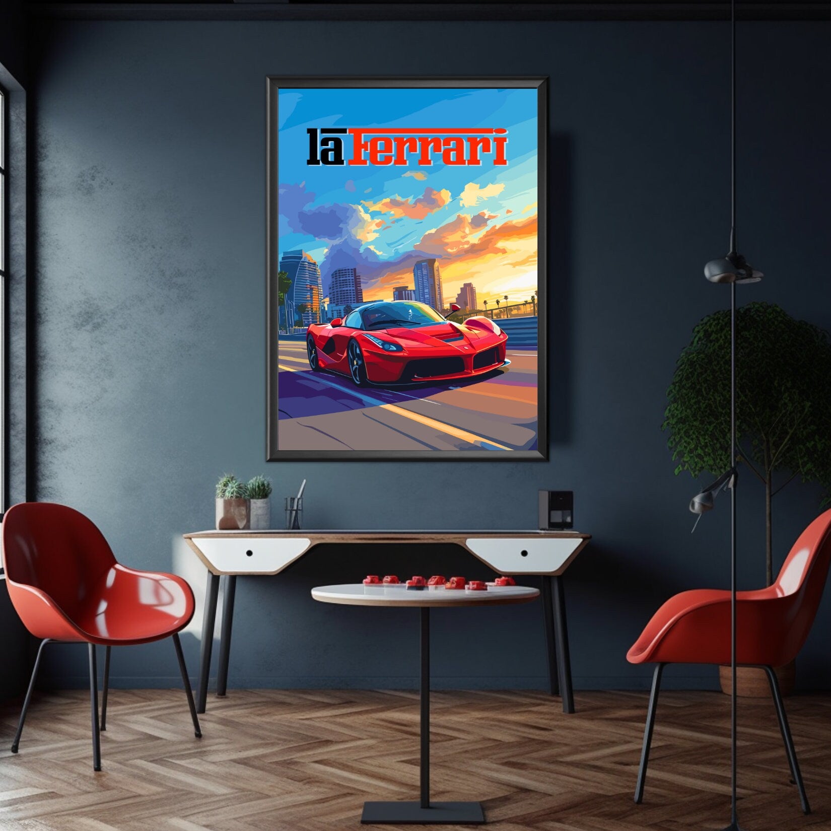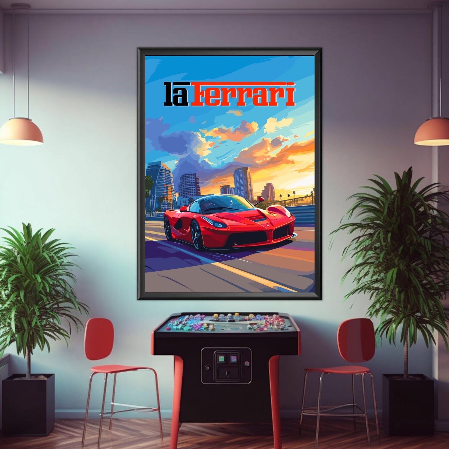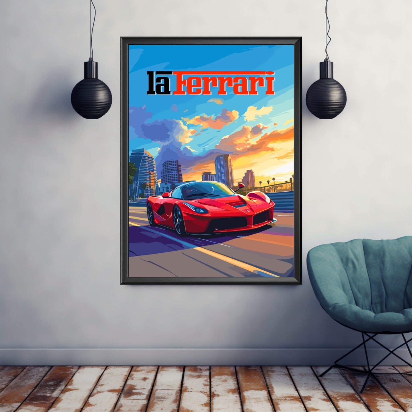 Affiche de voiture laFerrari – Décoration murale représentant une supercar hybride de luxe italienne