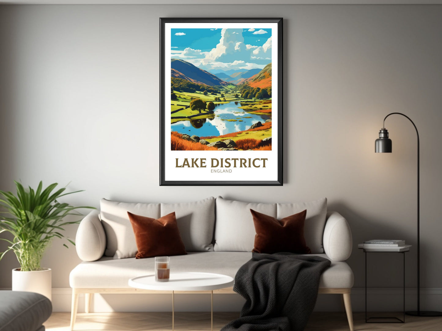 Célébrez la beauté naturelle du Lake District anglais avec cette captivante affiche de voyage , mettant en scène des paysages époustouflants, des lacs paisibles et des collines vallonnées. Cette œuvre d'art exquise capture parfaitement le charme serein et la beauté sauvage de l'un des parcs nationaux les plus appréciés de Grande-Bretagne, idéal pour les amateurs de voyages et d'aventures en plein air en Angleterre .